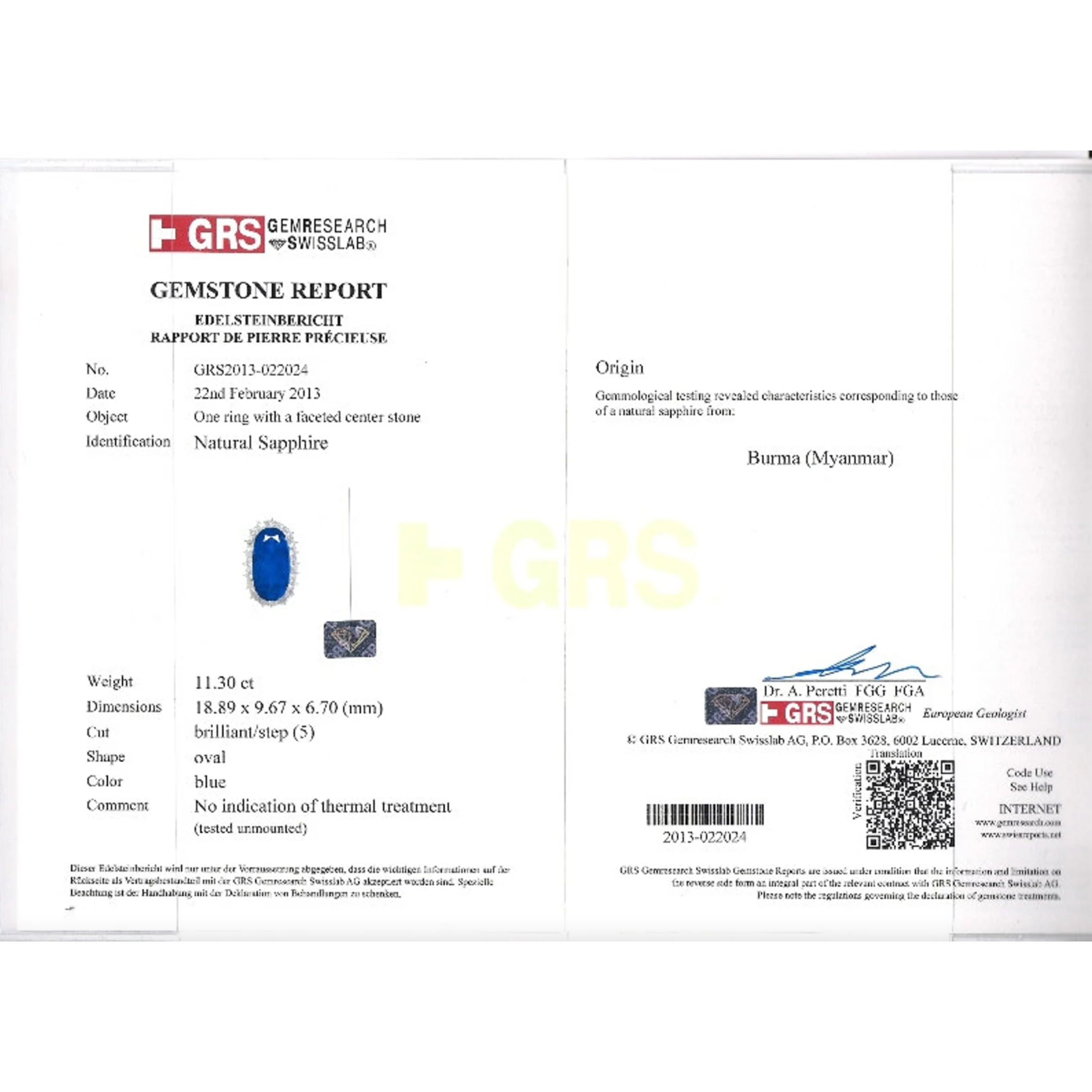 GRS Certificate #: GRS2013-022024
