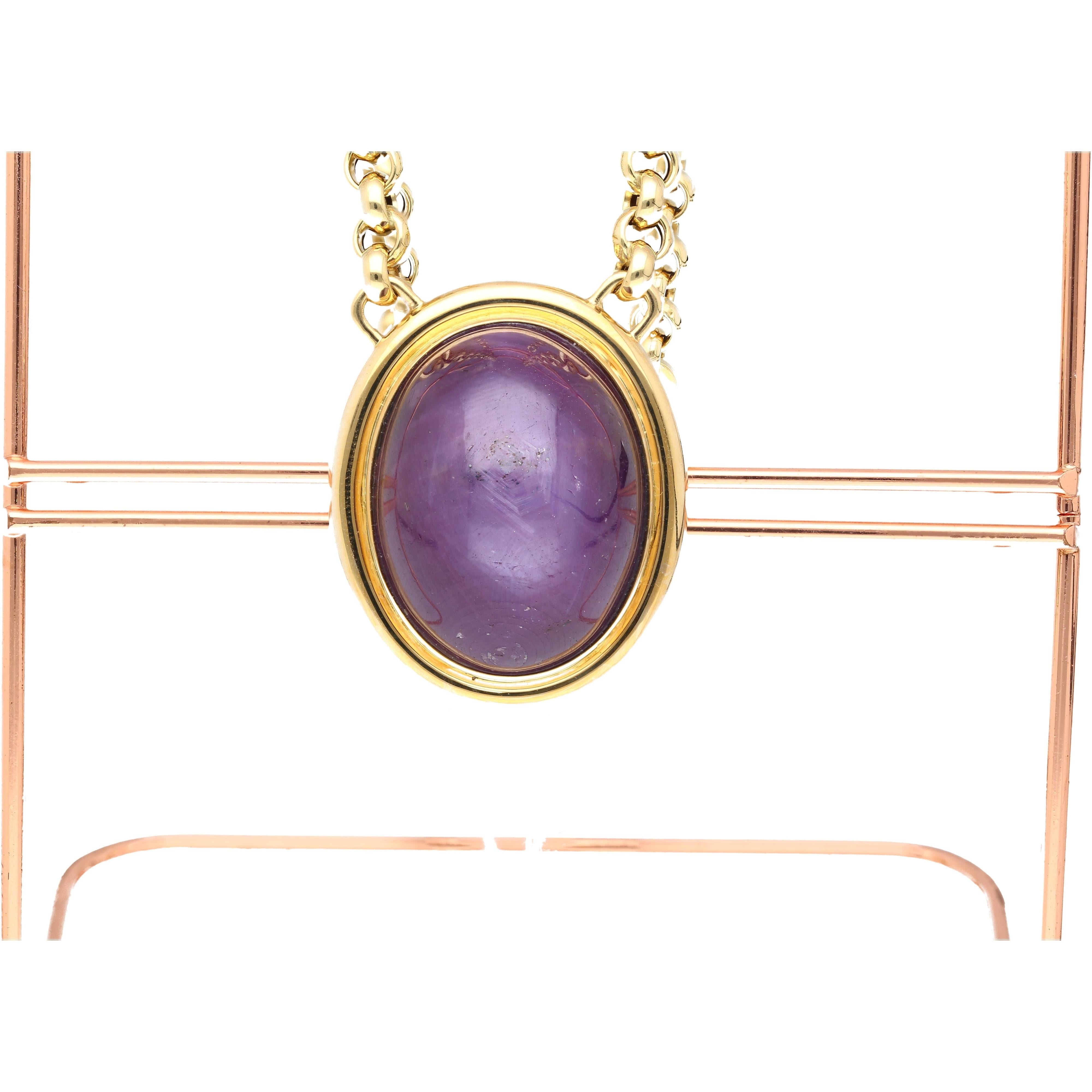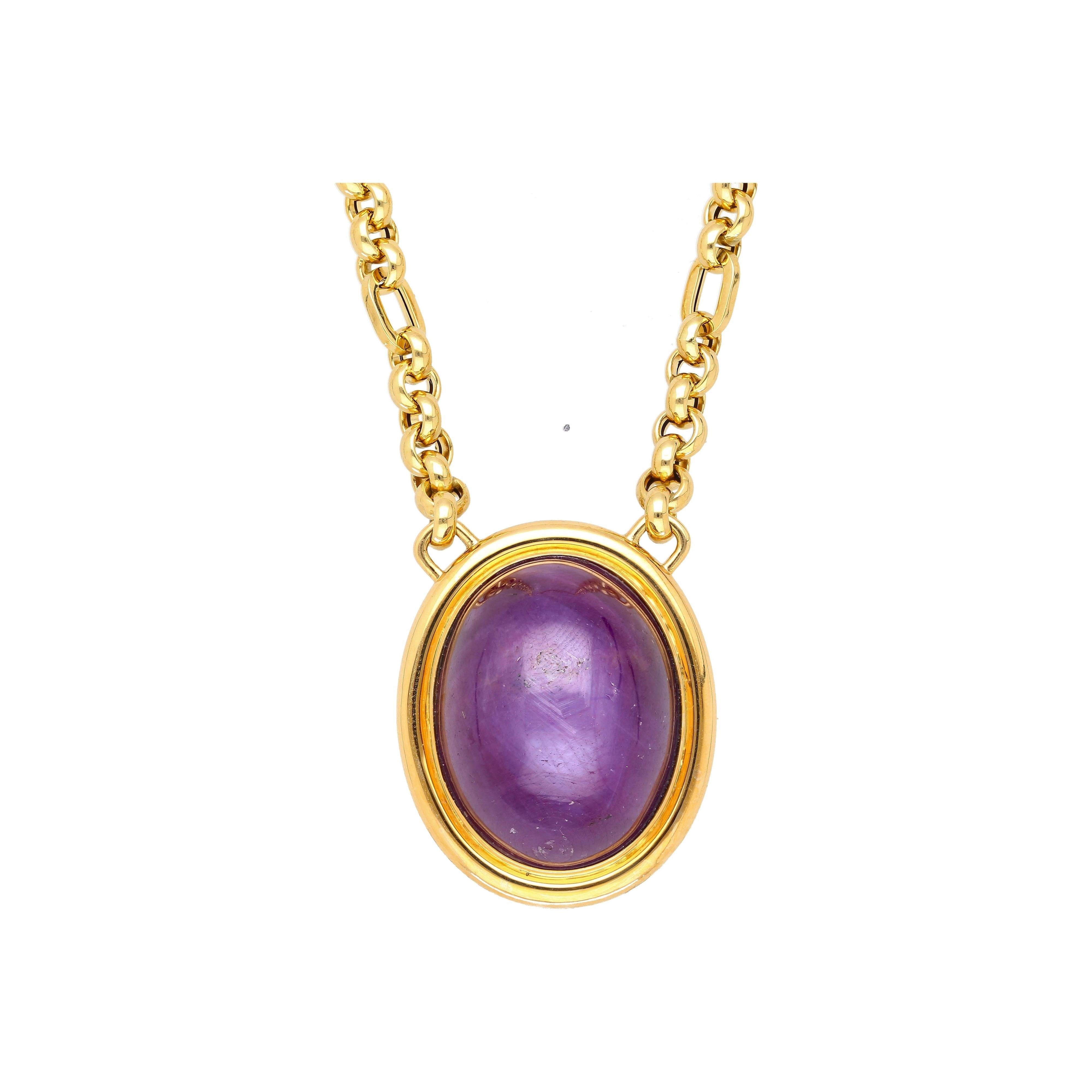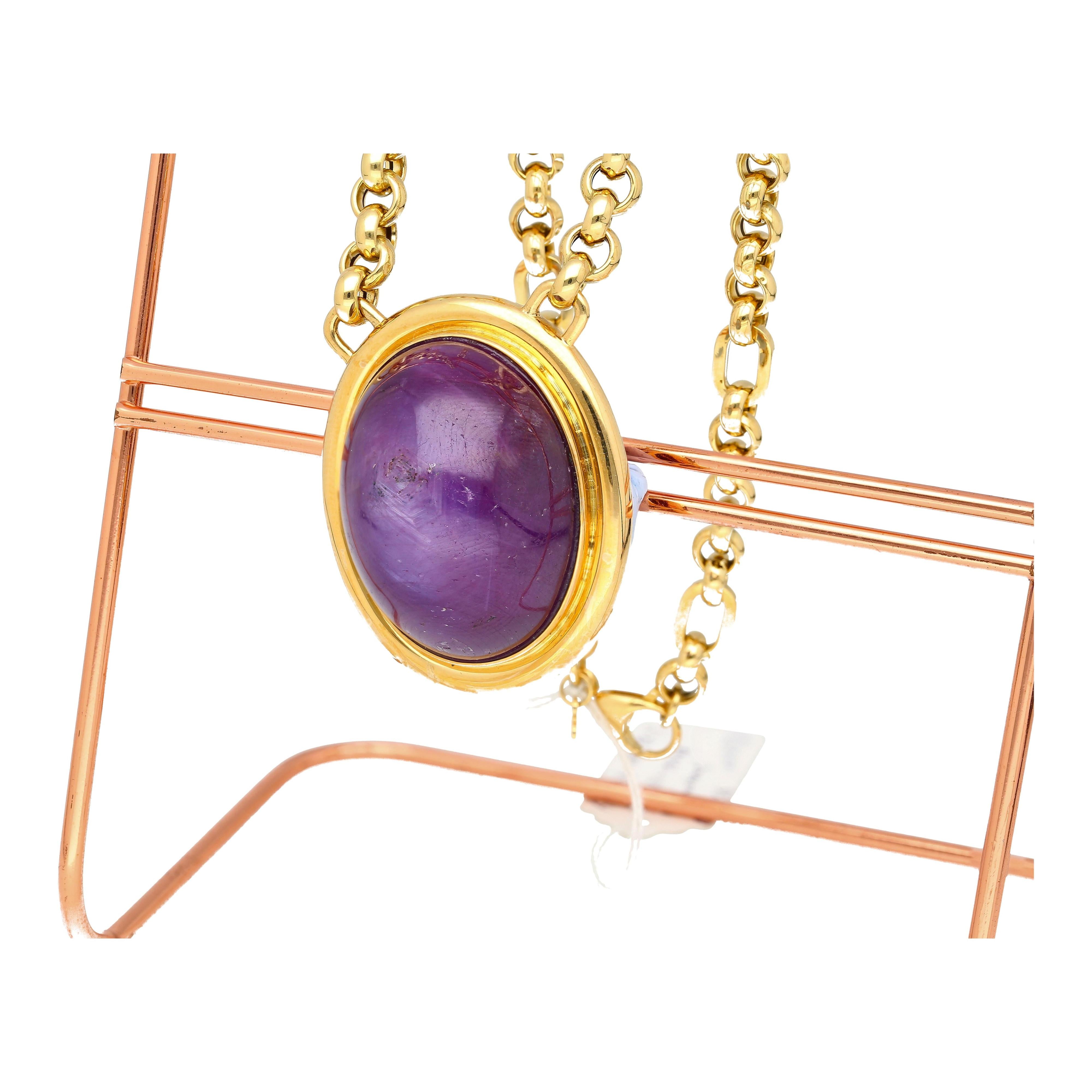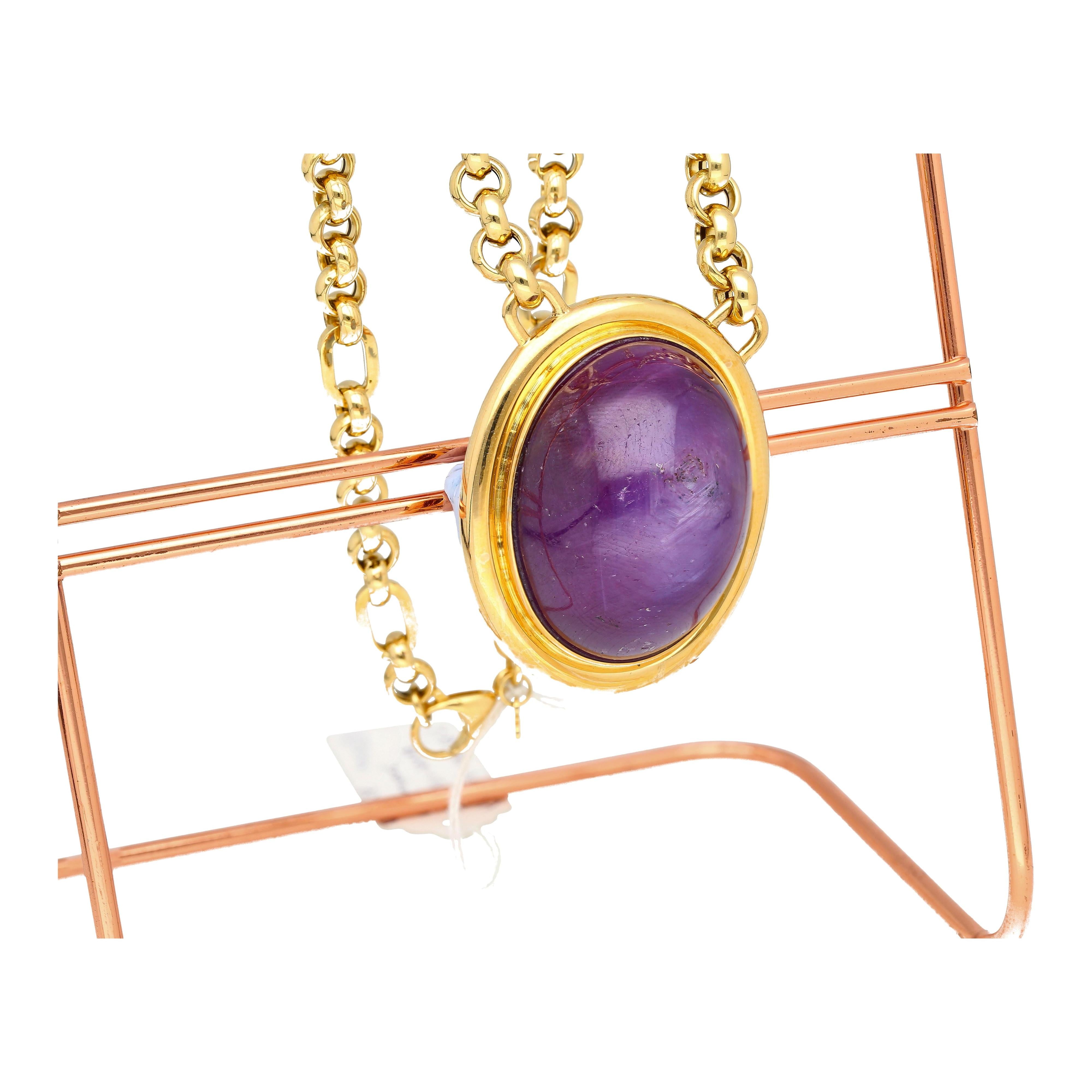 GIA Certified 155.48 Carat Cabochon Cut No-Heat Purple Star Sapphire in 18K Gold Bezel Set Statement Pendant. Fixed on an... Read more