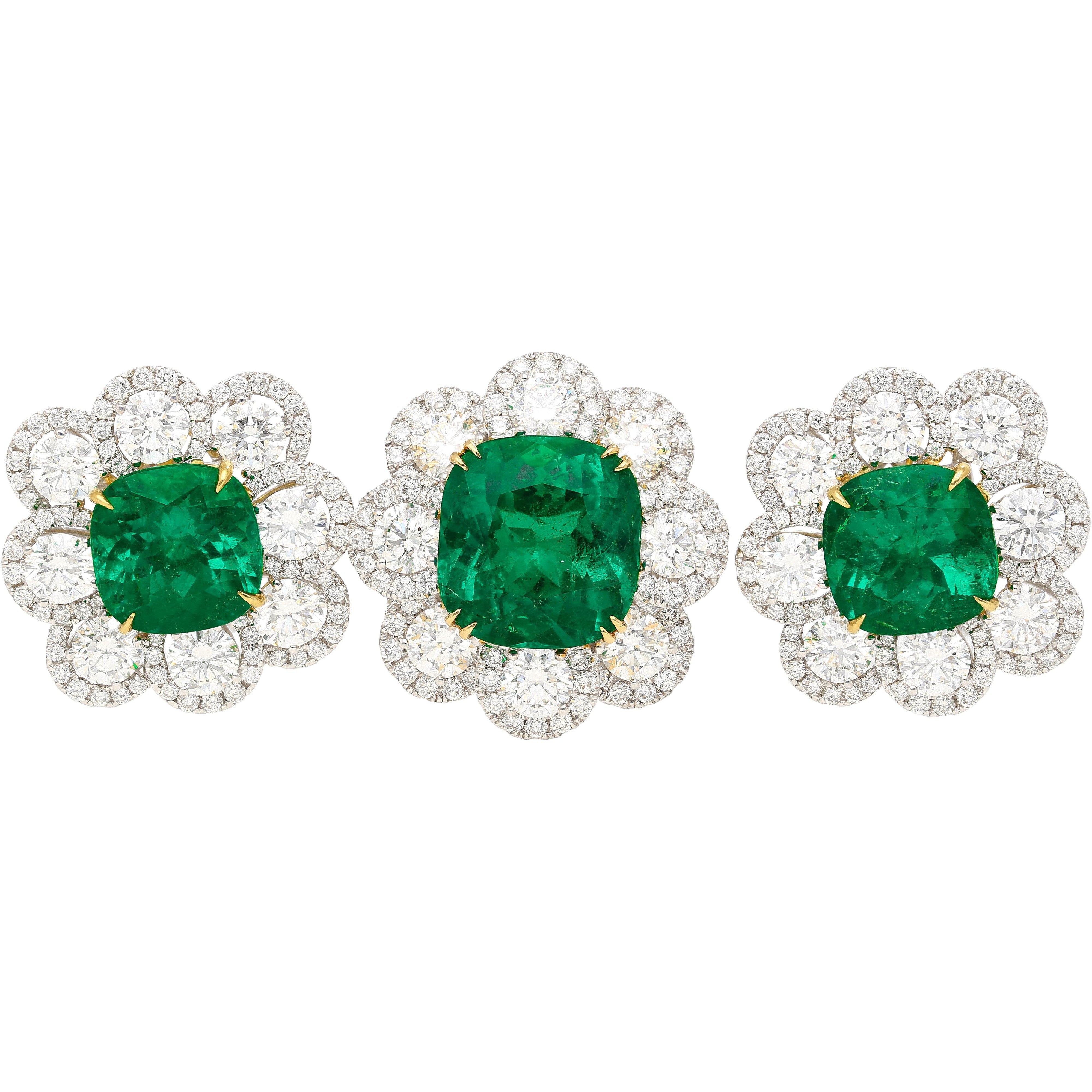 Colombian Emerald Cushion Cut Diamond Ring Drop Earrings Set