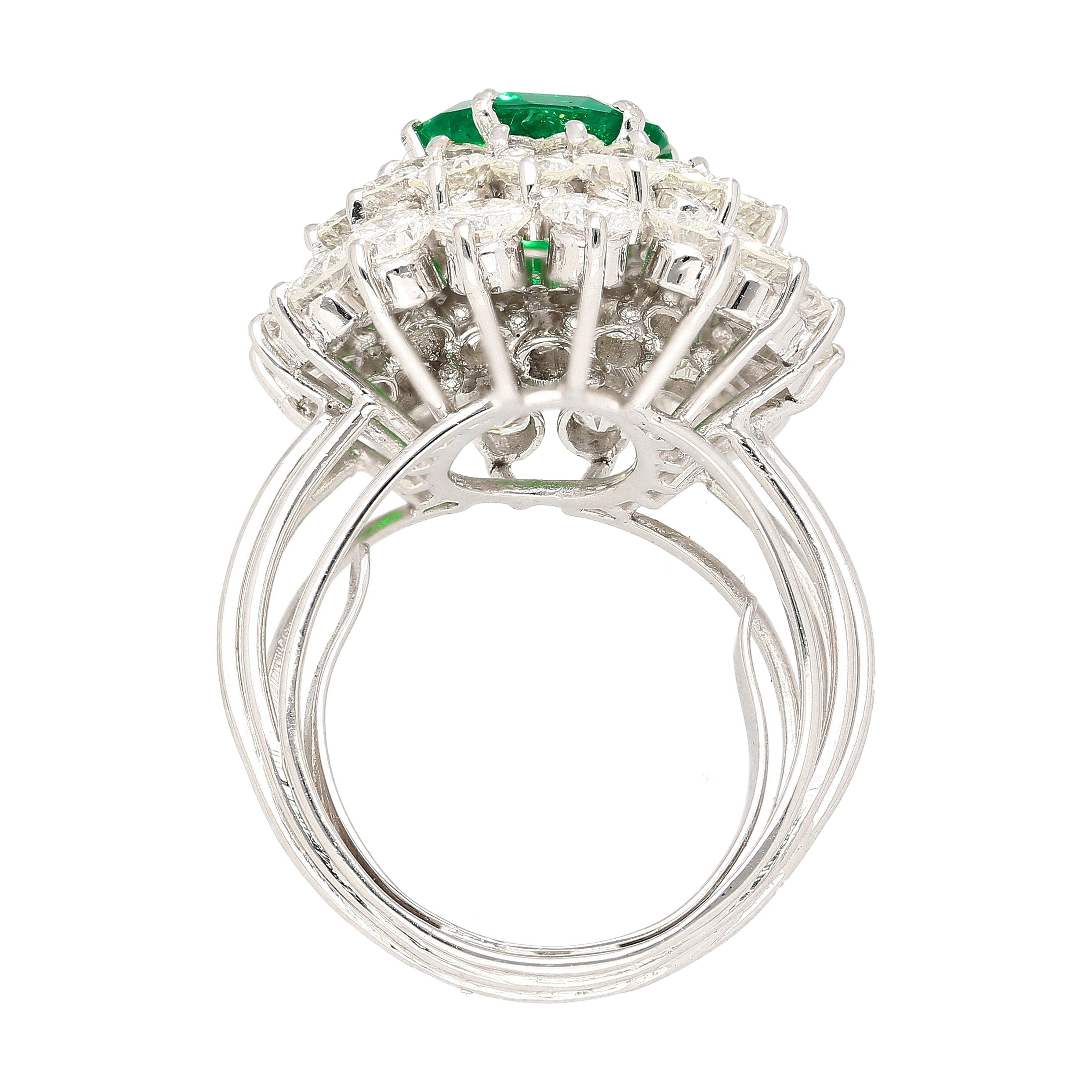 3.19 Carat Oval Cut Colombian Emerald Round Diamond Cluster Vintage Ring