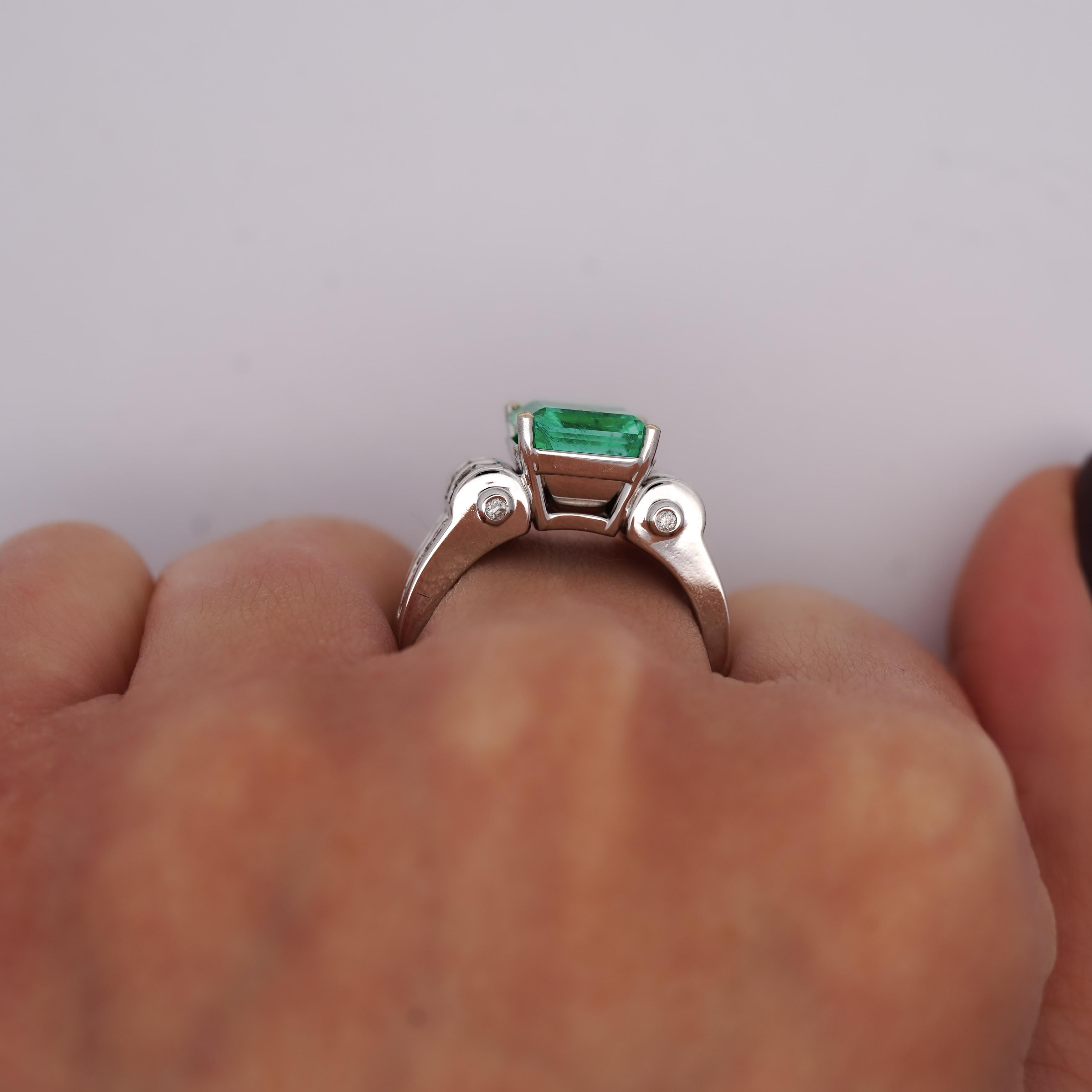 GRS Certified 4.17 Carat Minor Oil Colombian Emerald and 1.60 Carat Diamond Cocktail Ring in 14K White Gold. Unisex.