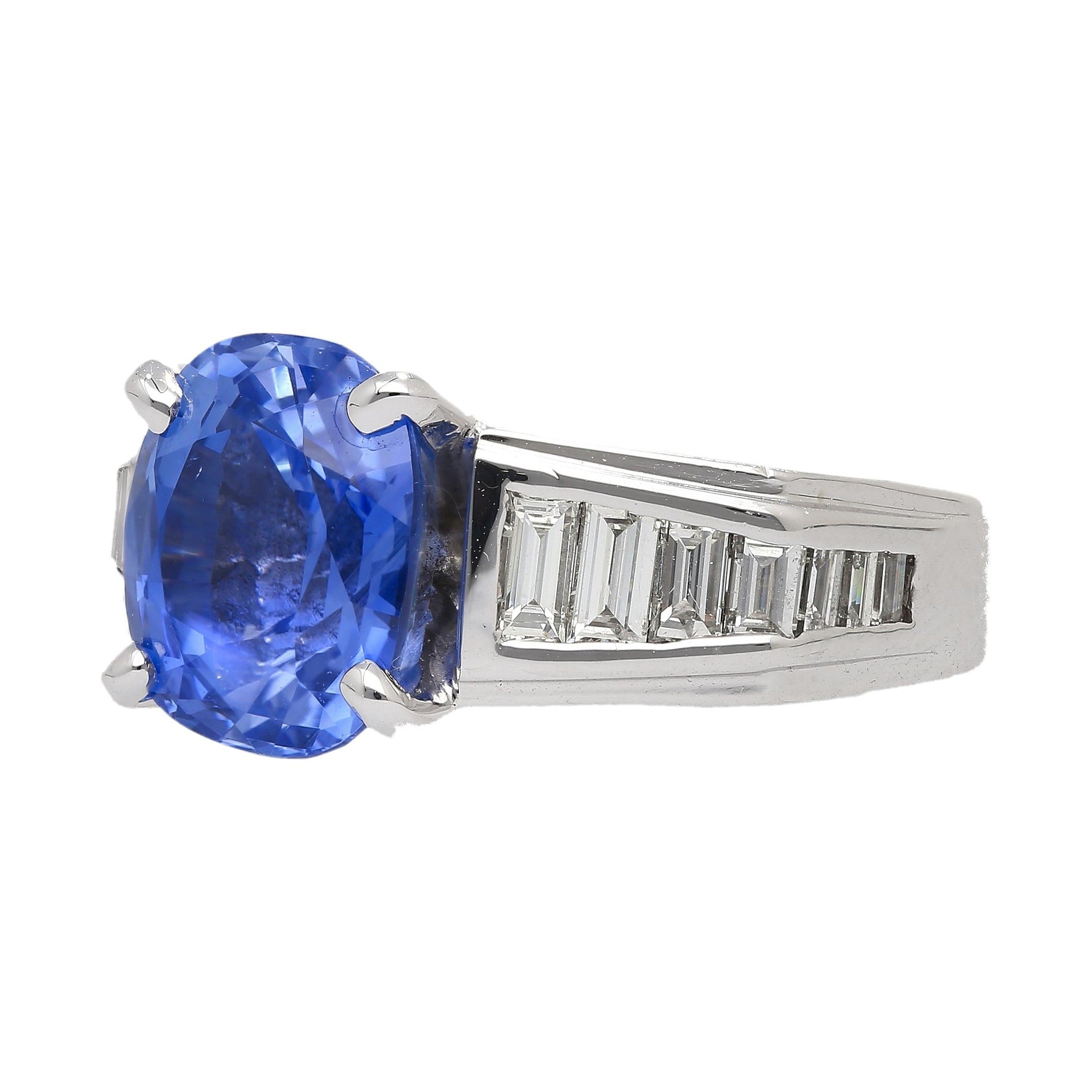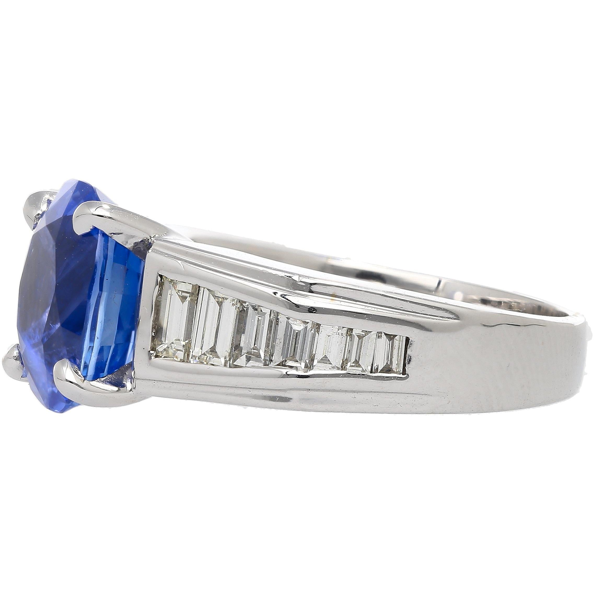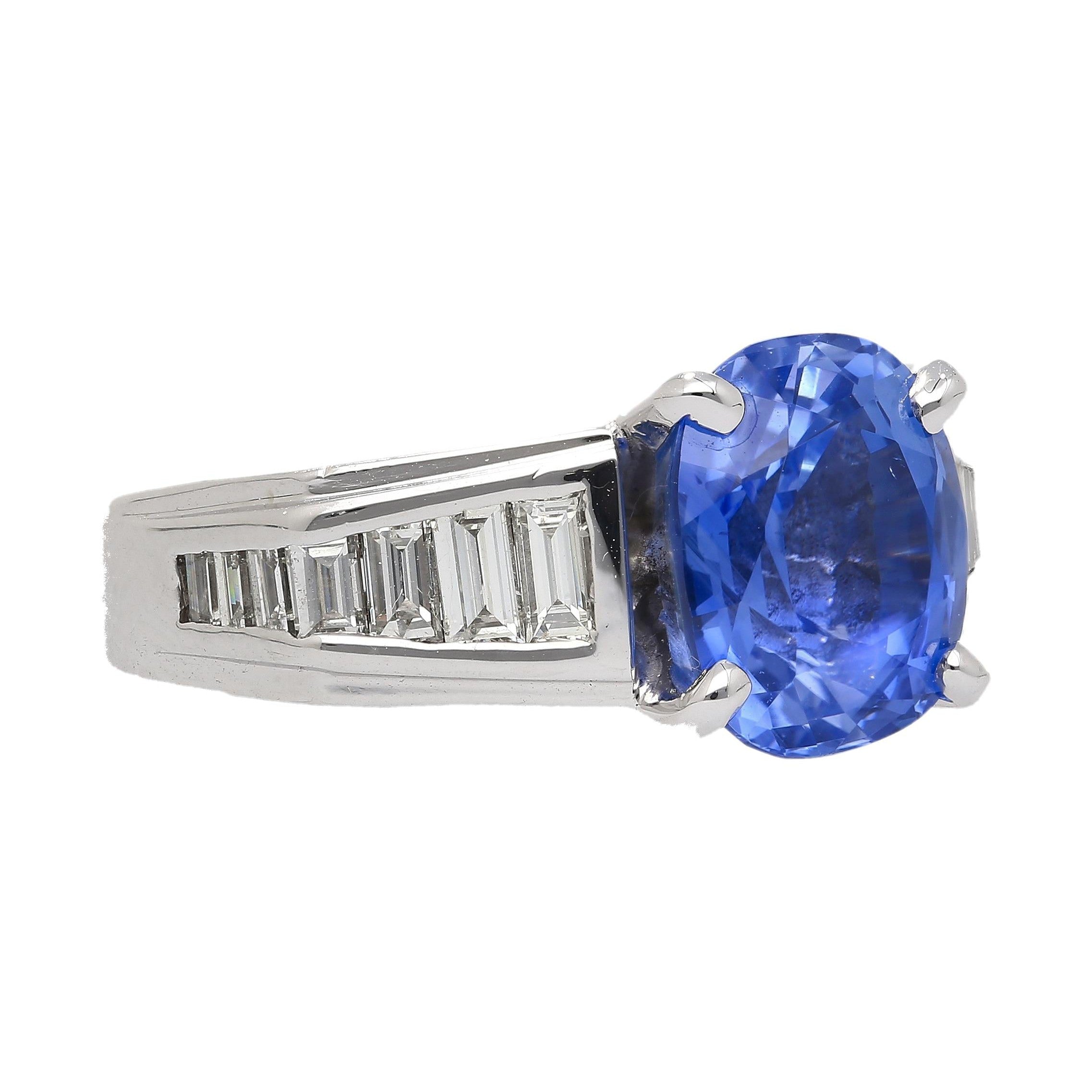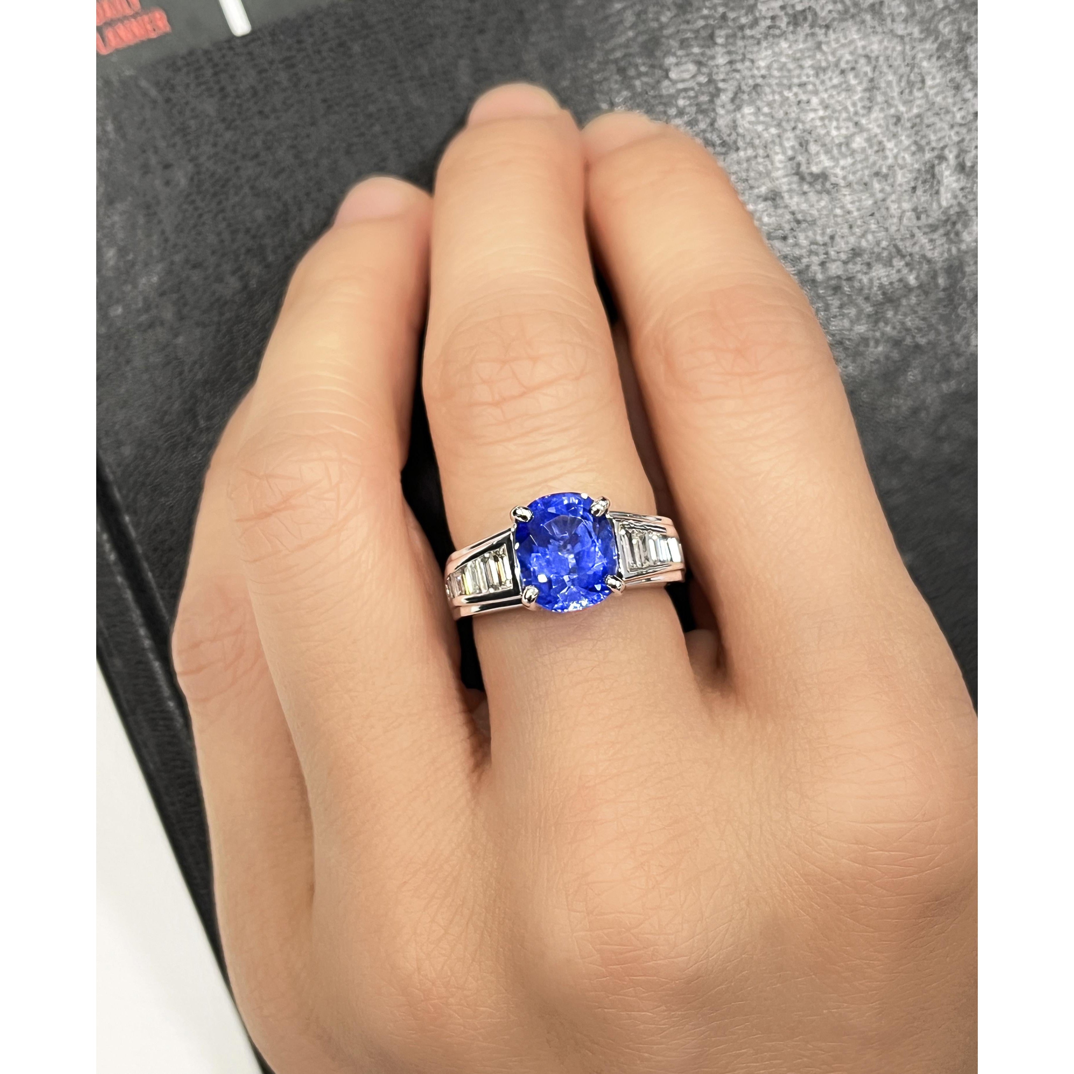 4.71 carats of natural unheated sapphire. Featuring an oval cut, this vivid blue Sri Lankan gemstone showcases an even color... Read more