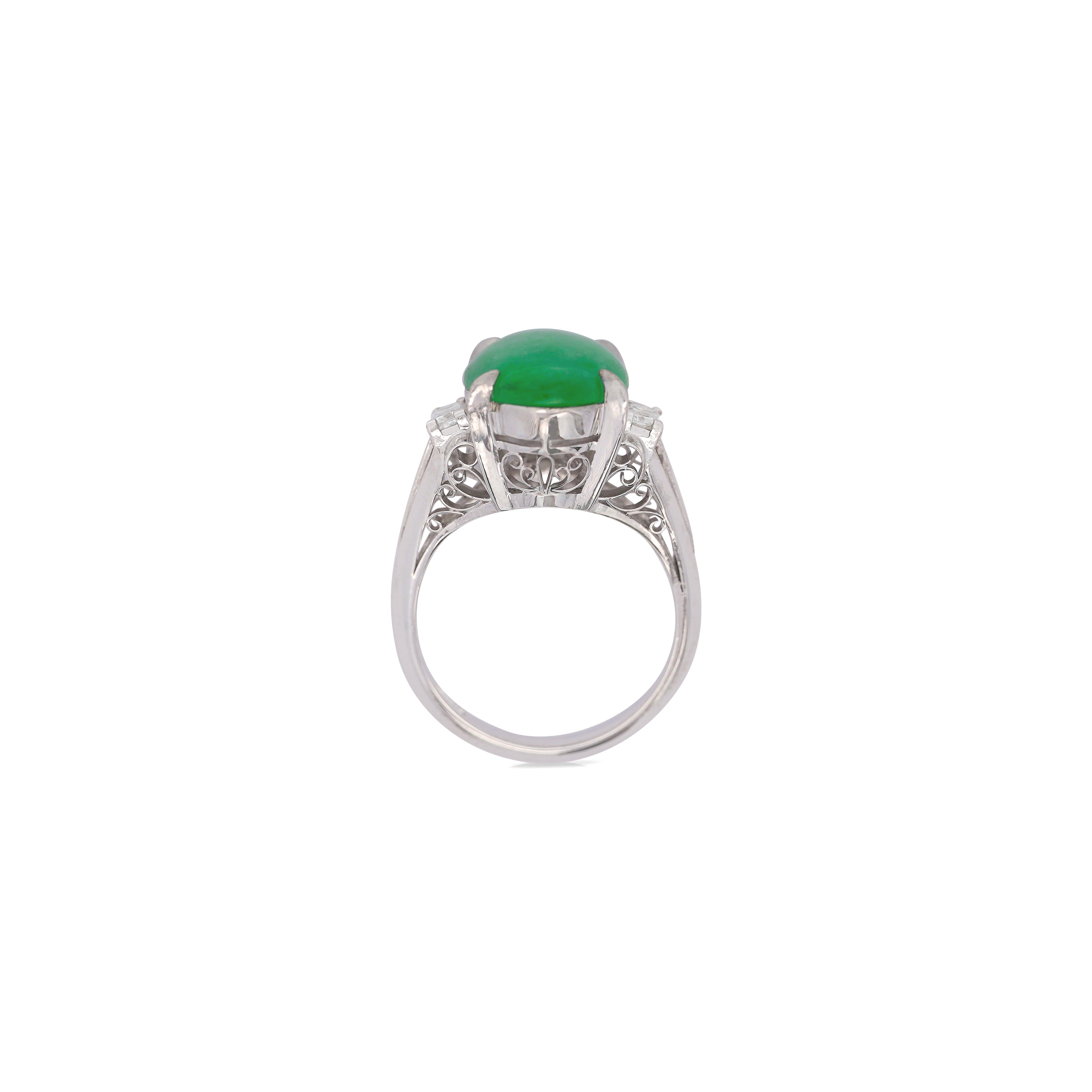 5.03 Carat Natural Jade and diamond Filigree Cathedral Platinum Ring