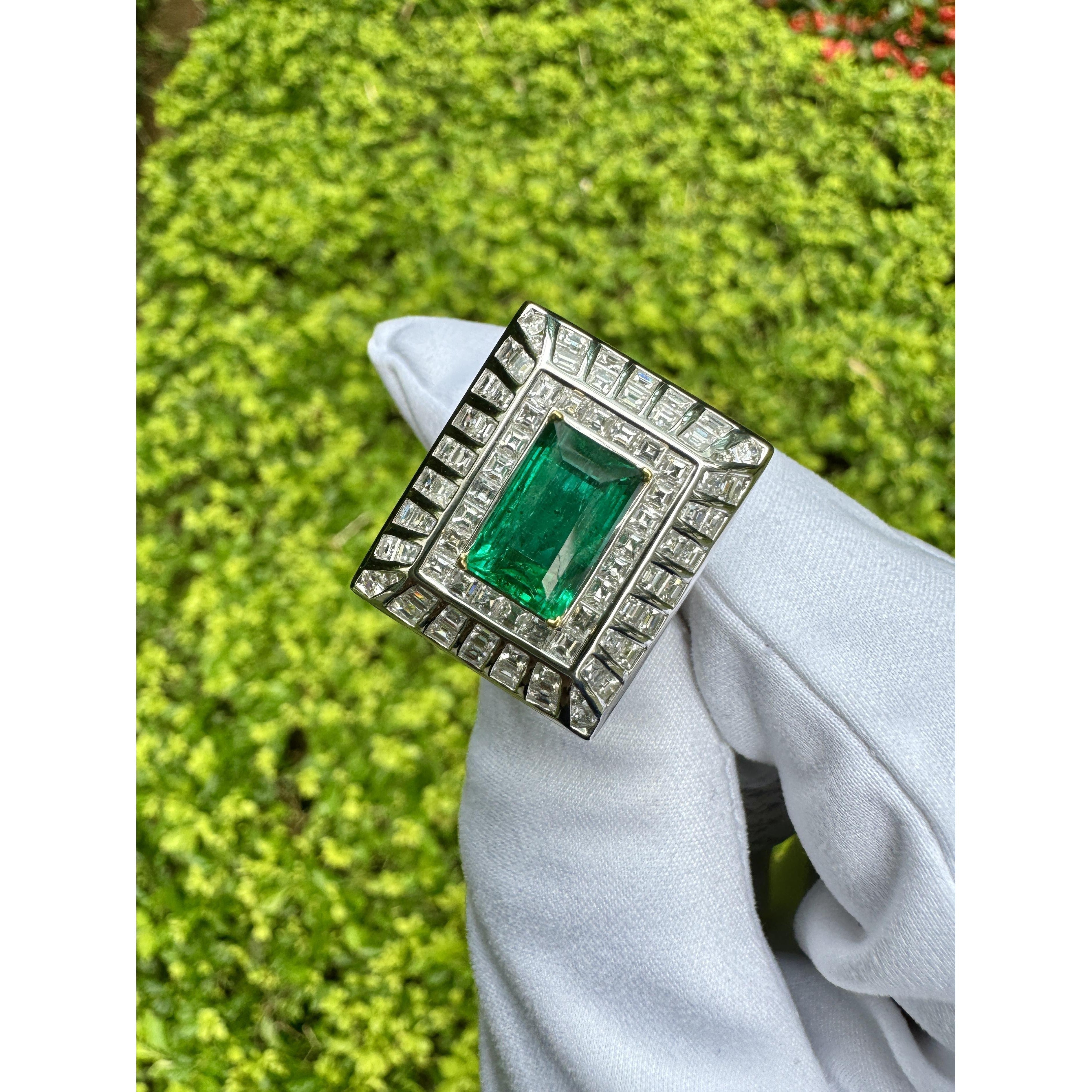 5.17ct Colombian Emerald & Baguette Diamond Art Deco Frame Ring