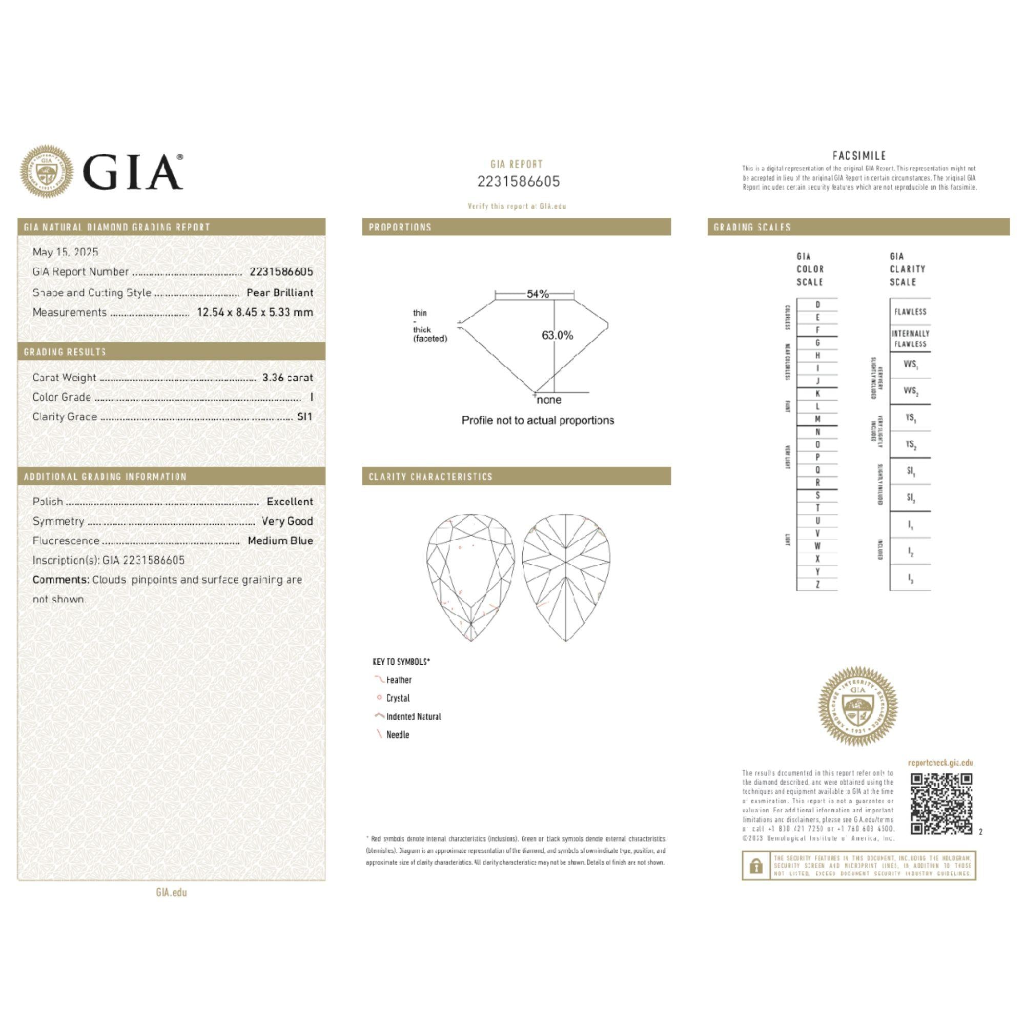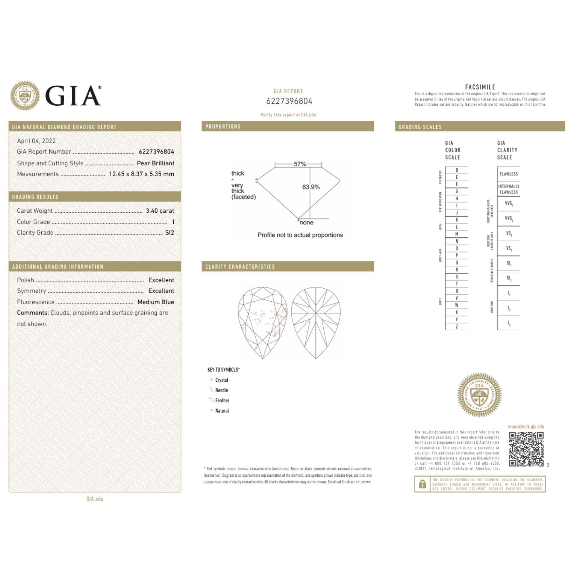 GIA-certified pair of pear-cut natural loose diamonds. Both I color and range from SI1-SI2 in clarity.Diamond Details (1) Item Type:... Read more