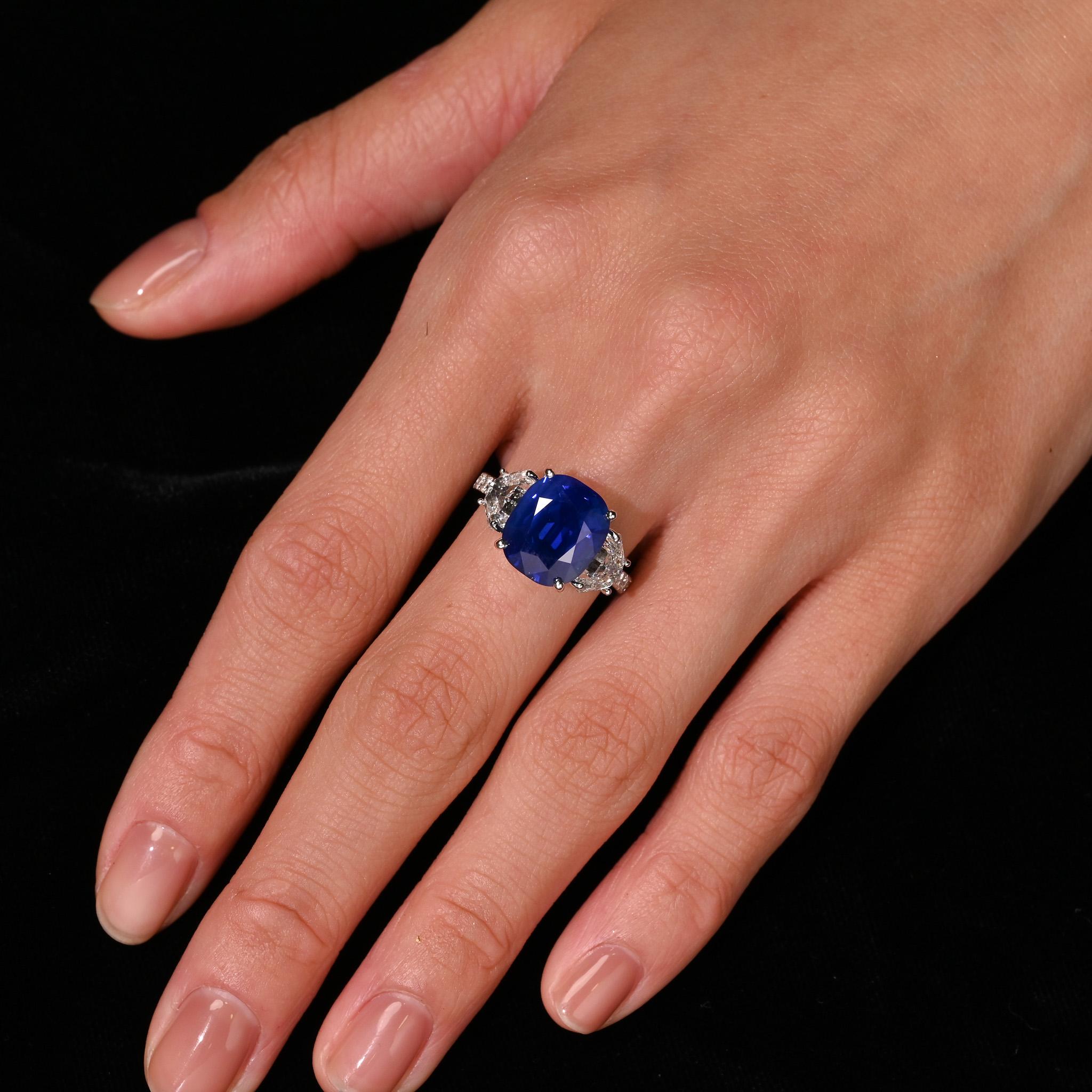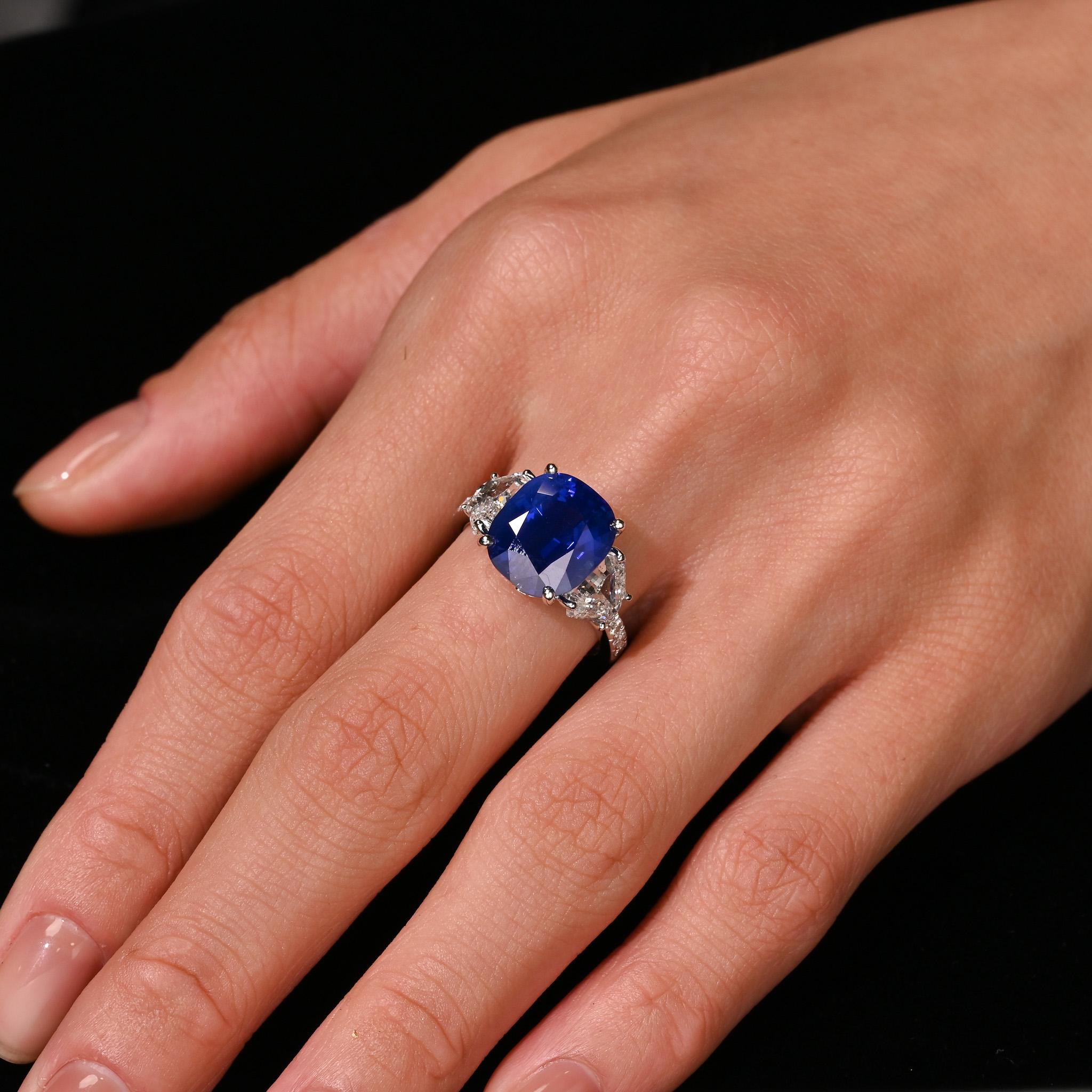 This ring is unmistakably natural and noticeably valuable, featuring a rare unheated Ceylon sapphire with a deep blue hue, unmatched in quality. The D-F colorless diamonds enhance its brilliance, making this an extraordinary, one-of-a-kind heirloom piece that no one else will have.