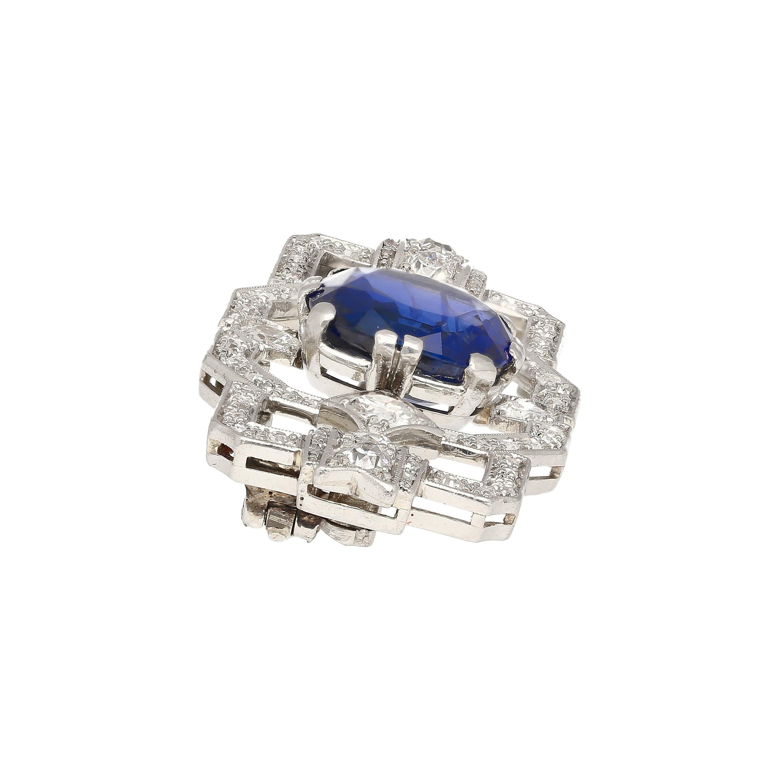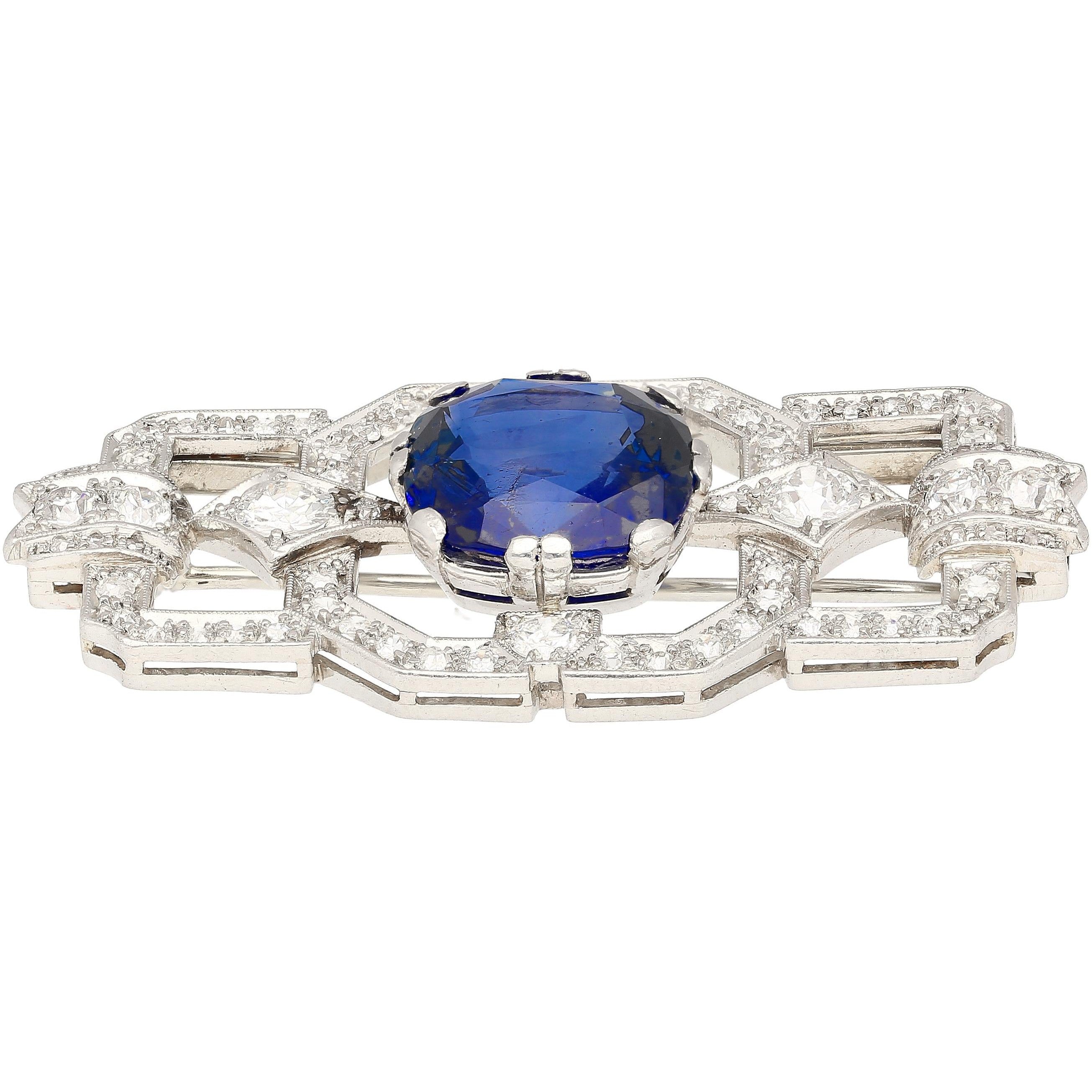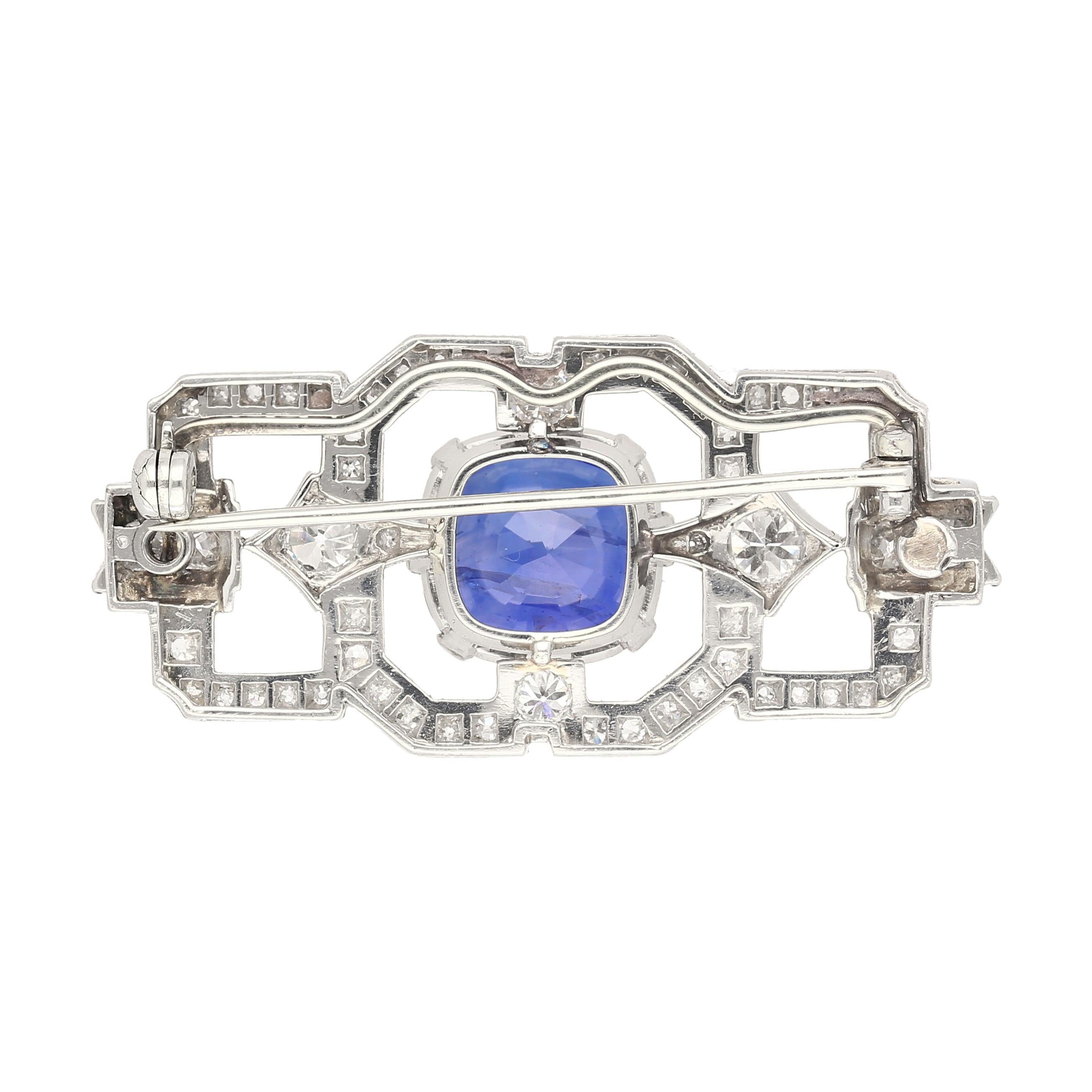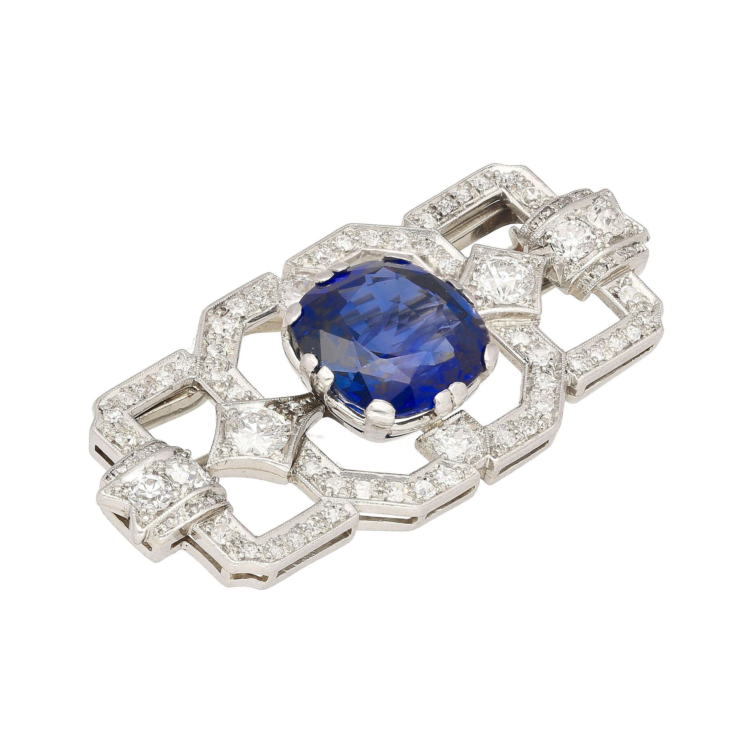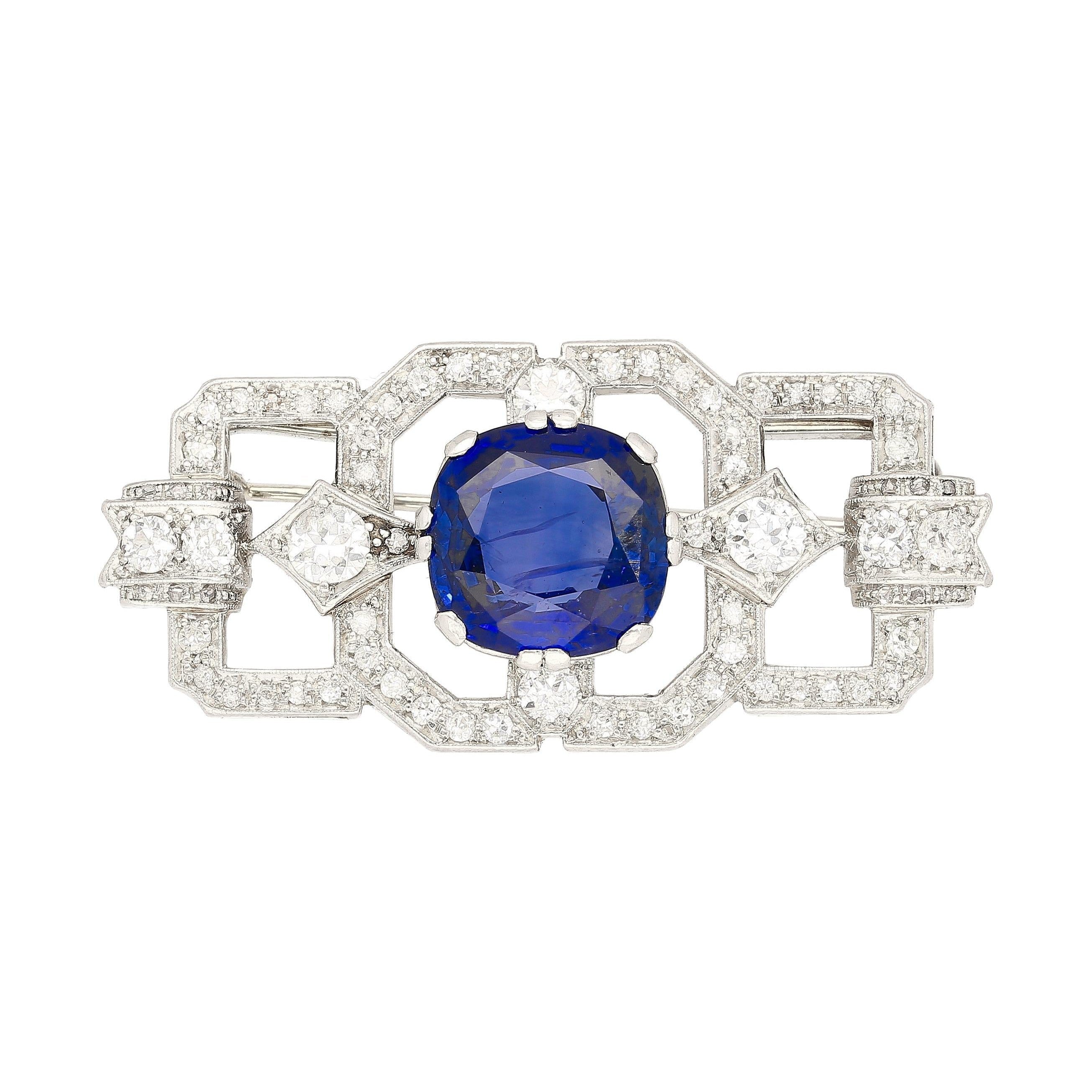 This Art Deco Era Brooch Pin is a captivating blend of unheated Ceylon sapphires, Old European Cut Diamonds, and timeless design, weighing 12.45 grams in luxurious platinum.