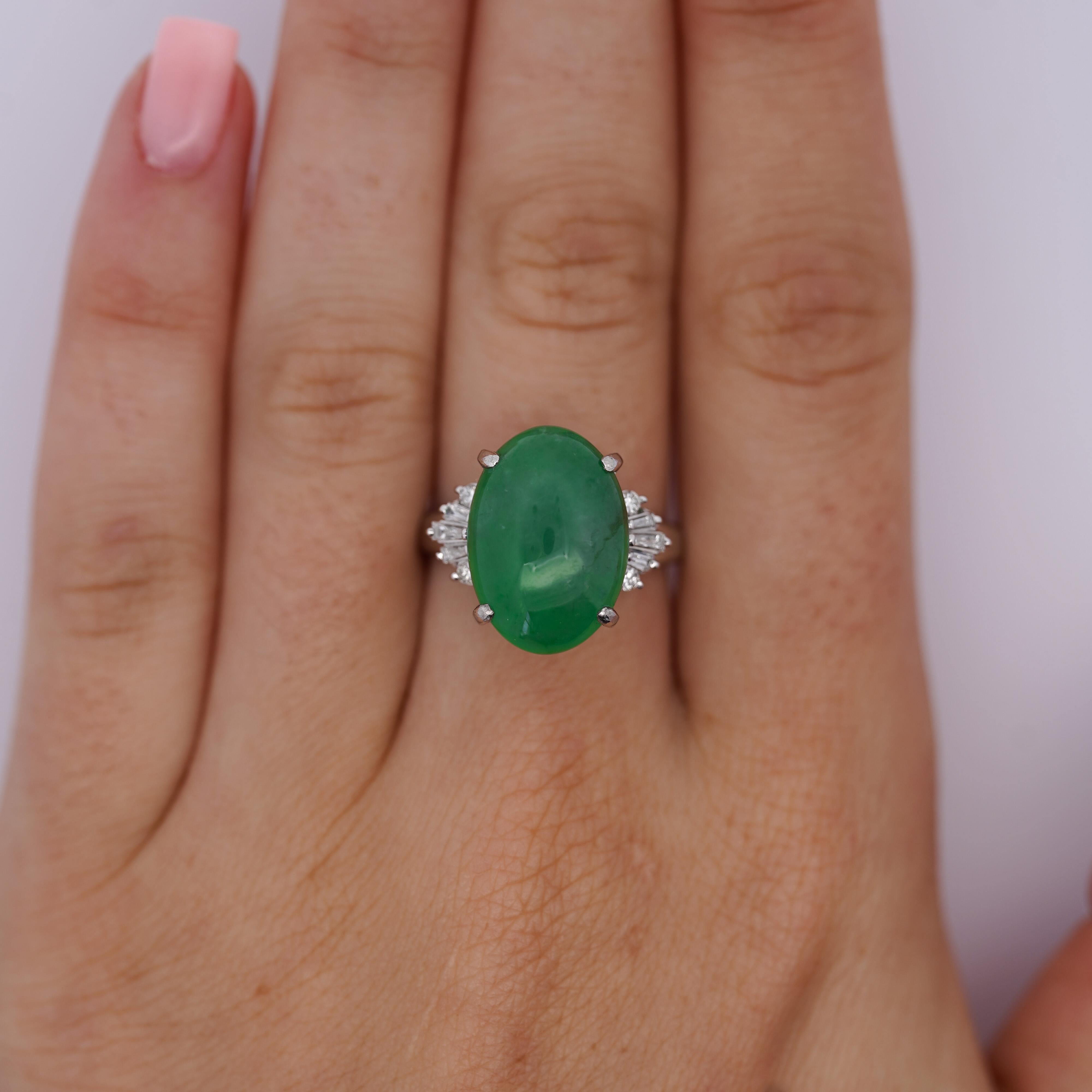9 Carat Untreated Jadeite Jade Fei Cui and Diamond Platinum Ring HK Certified