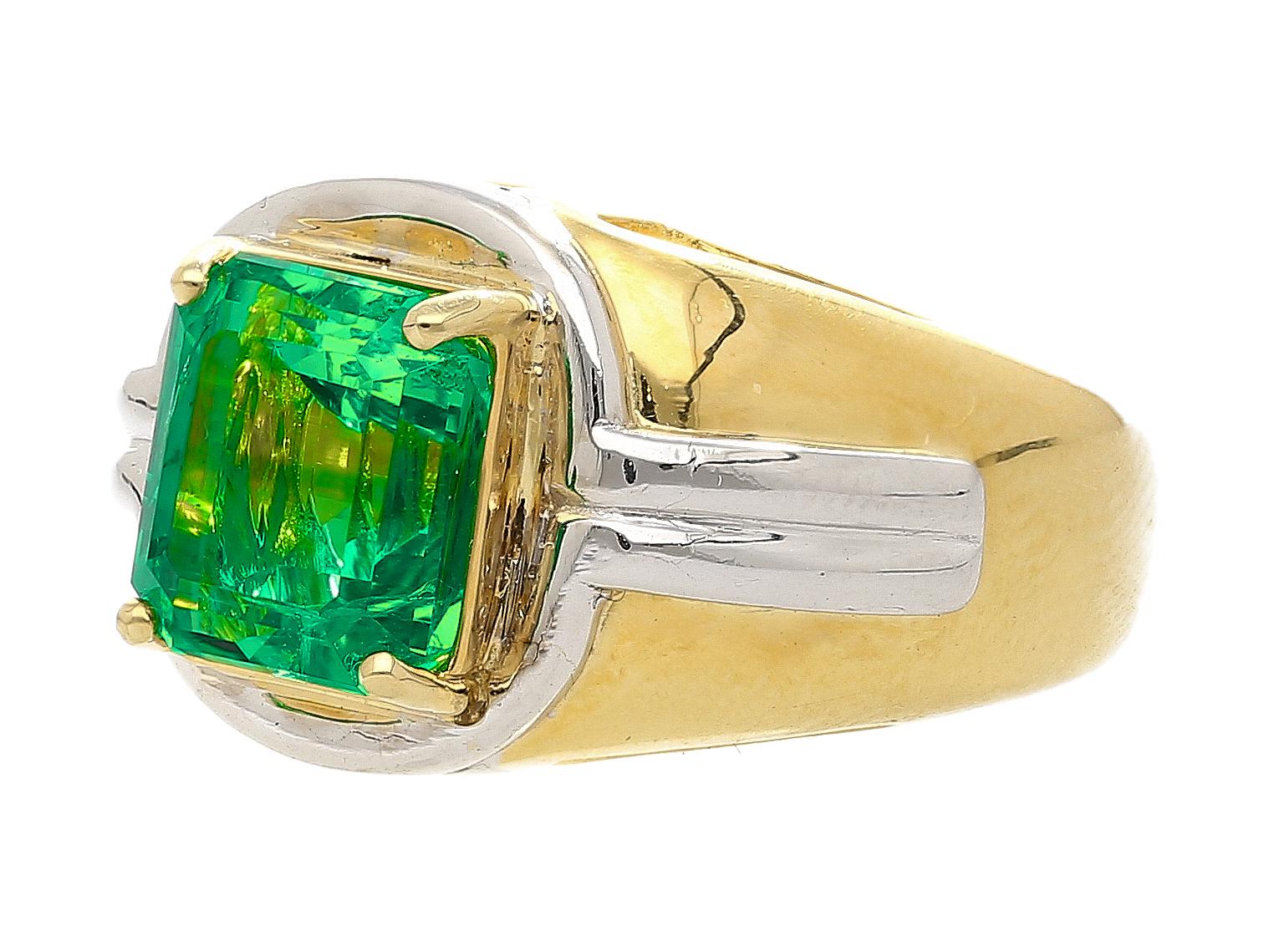 3.98 Carat Emerald Cut Colombian Emerald Men's Ring Platinum 18K Yellow Gold Two-Tone Minor Oil