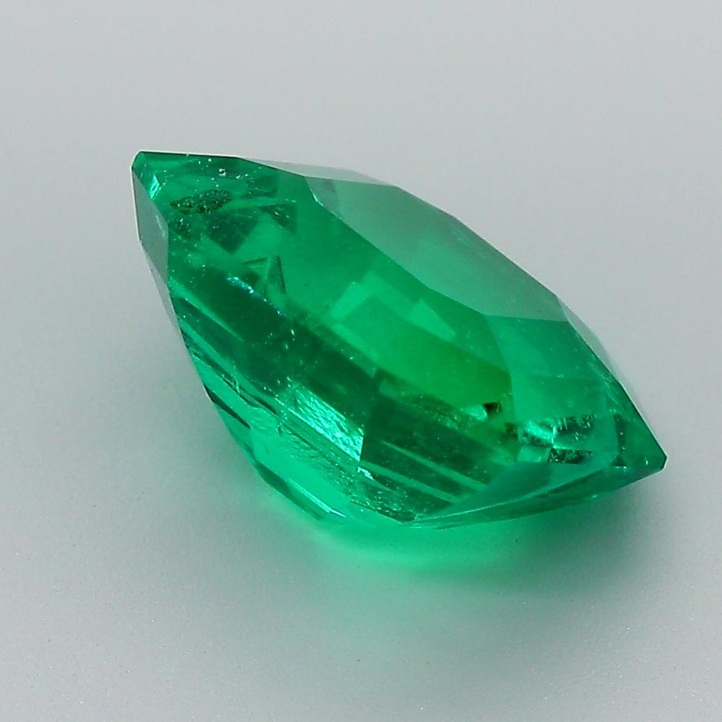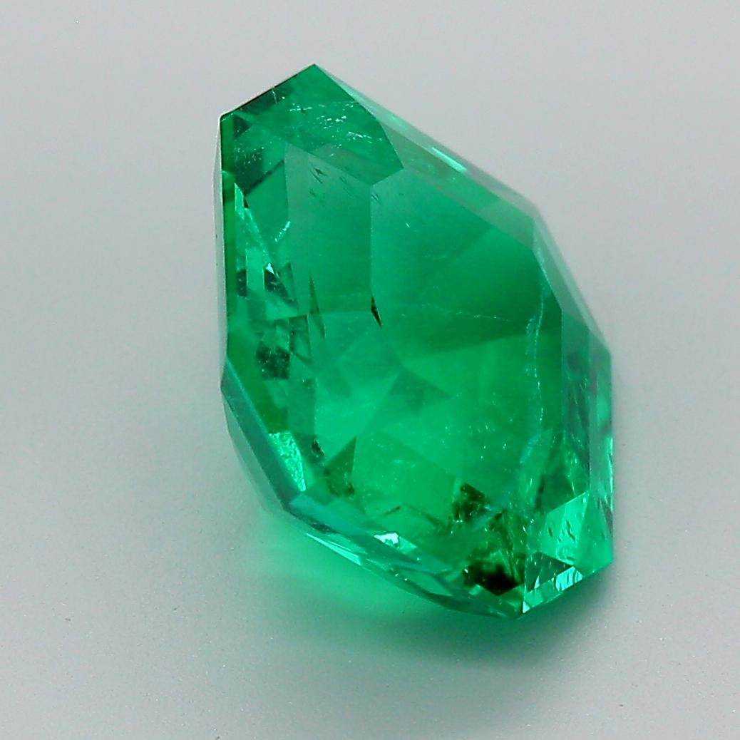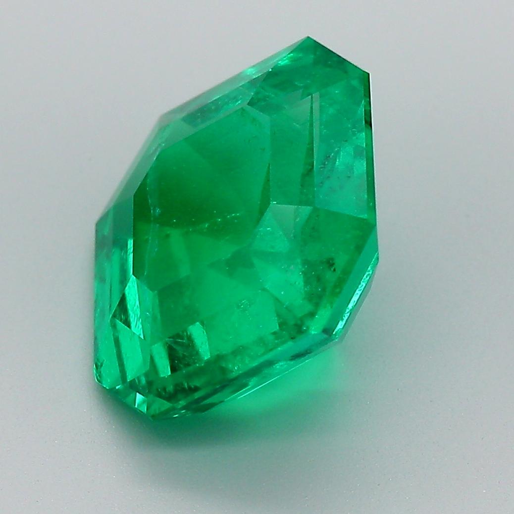 A vivid green Colombian emerald weighing 4.20 carats, cut in a classic rectangular shape. Its color and clarity are largely natural, with only minor traditional oiling — a centuries-old method that gently enhances brilliance without changing the stone’s true appearance.