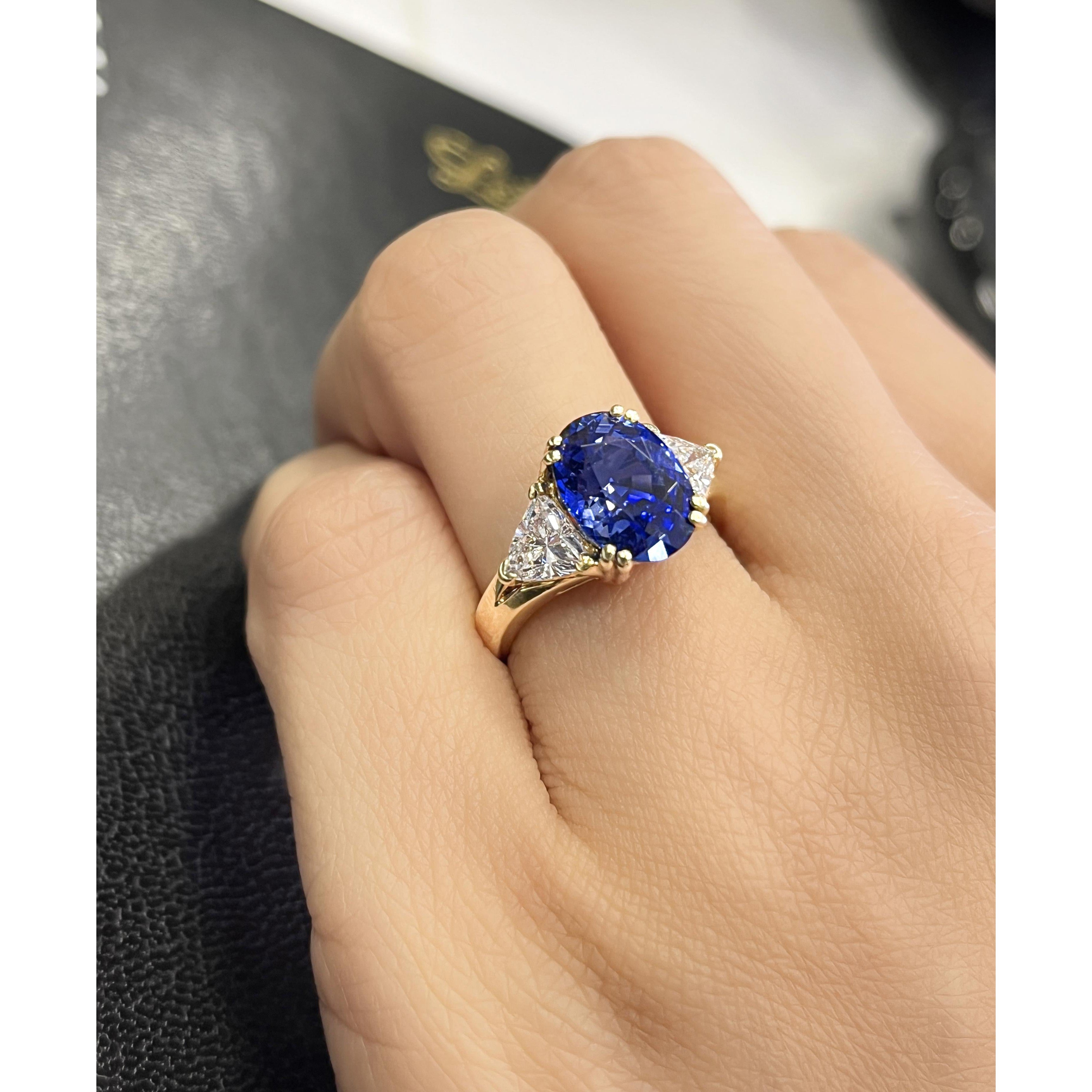 AGL Certified 4.49ct Burma Blue Sapphire Diamond 3-Stone Ring