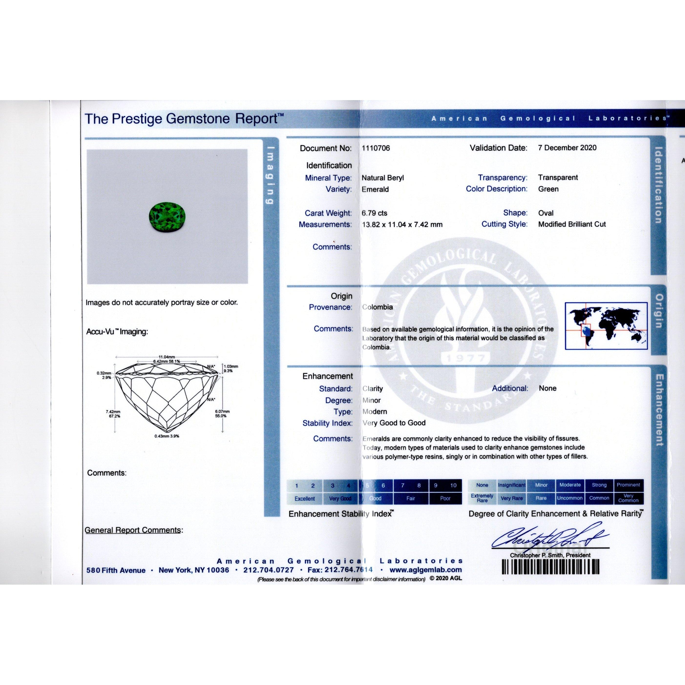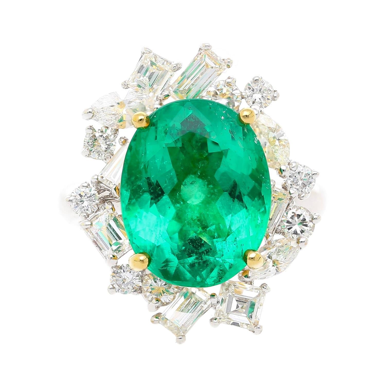 6.79 Carat Oval Cut Colombian Emerald Diamond Cluster Ring