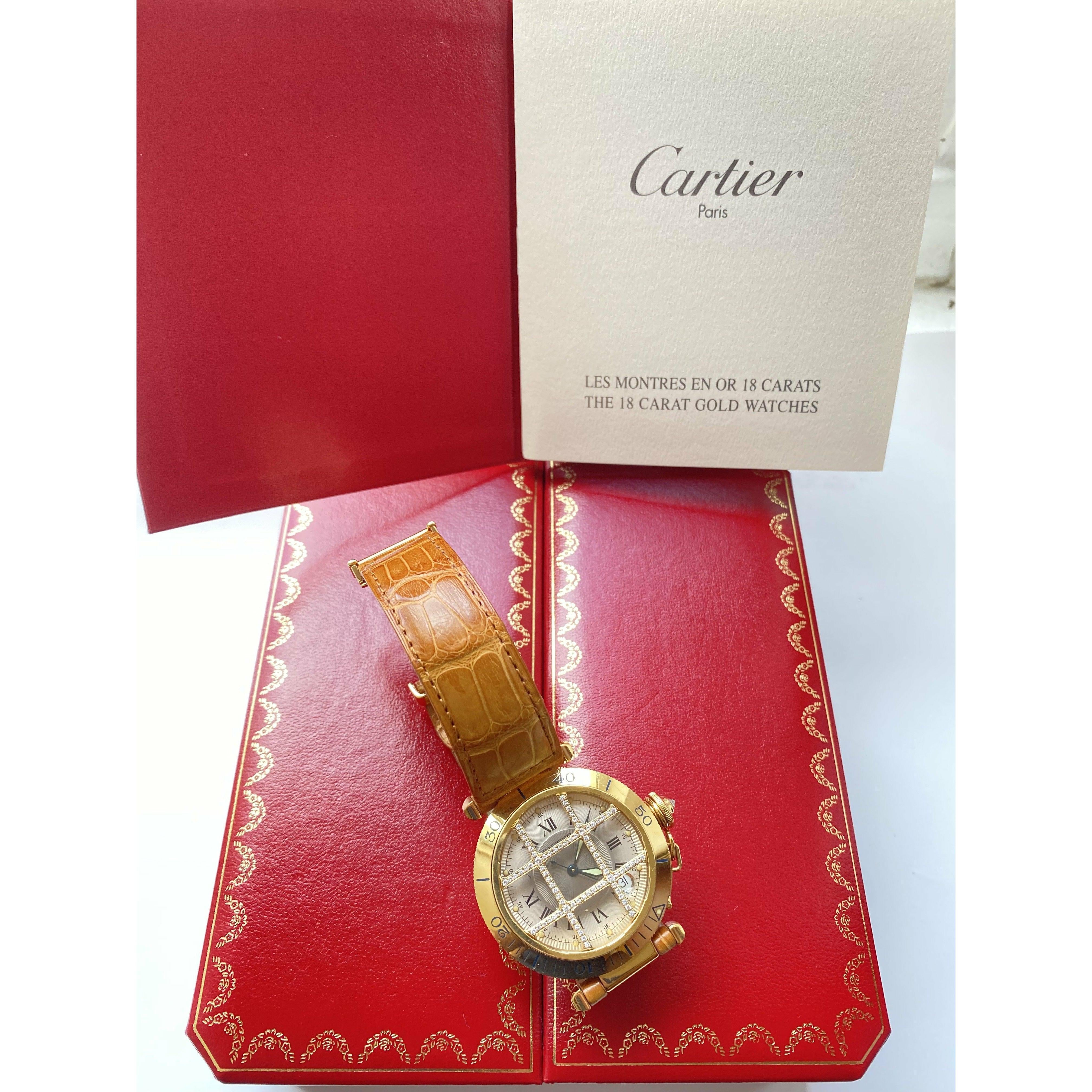Authentic Cartier Pasha men's watch with all original parts. Complete with original Cartier box and papers.