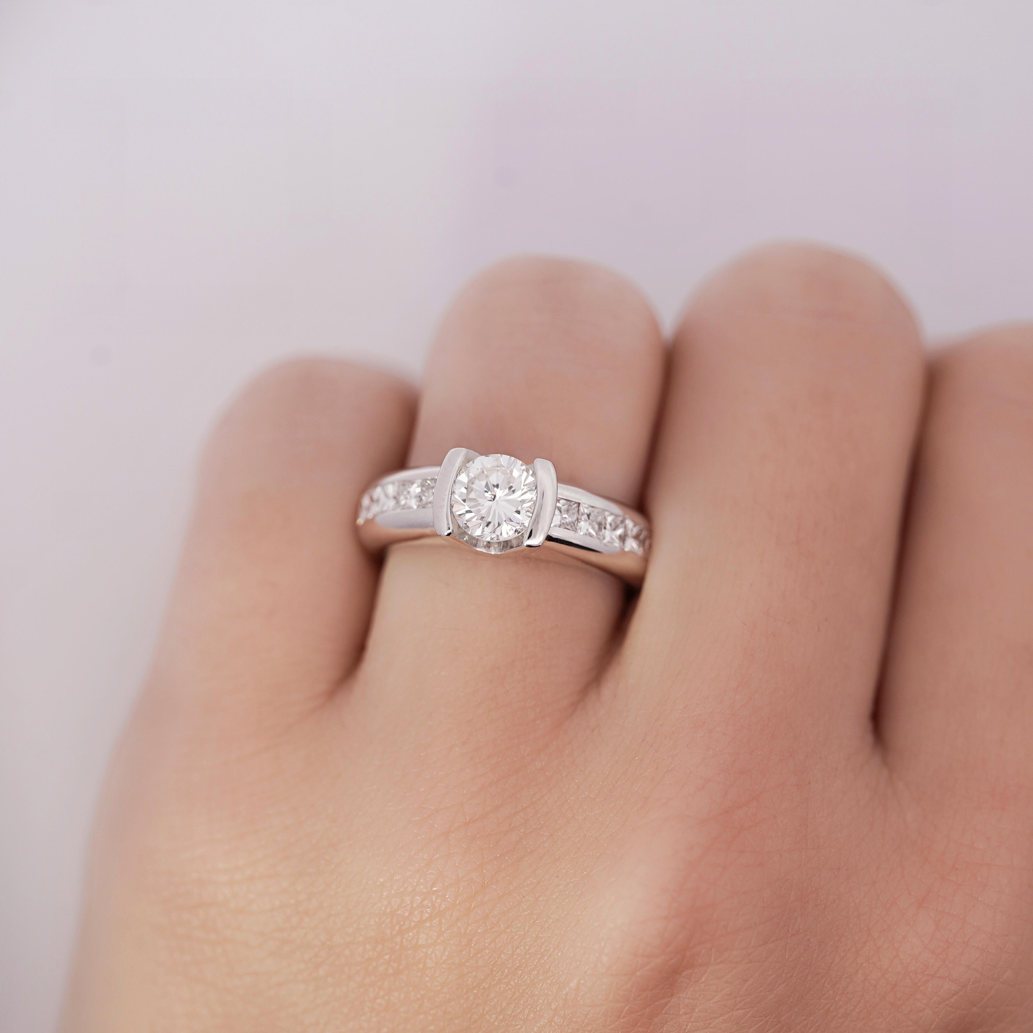 EGL Certified 1.65 Carat Round & Princess Cut G-H Color SI2 Clarity Natural Diamond Platinum Channel and Half Bezel Set Engagement Ring.