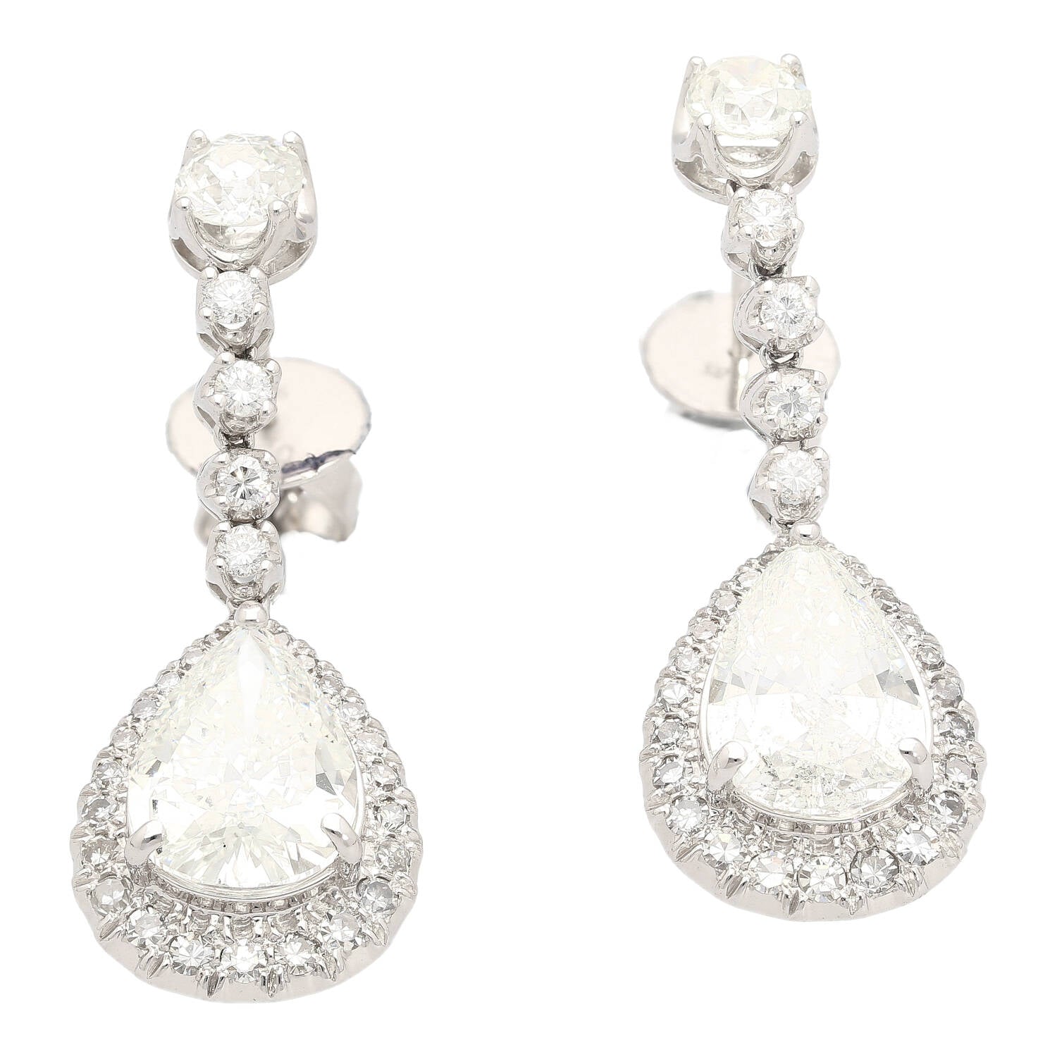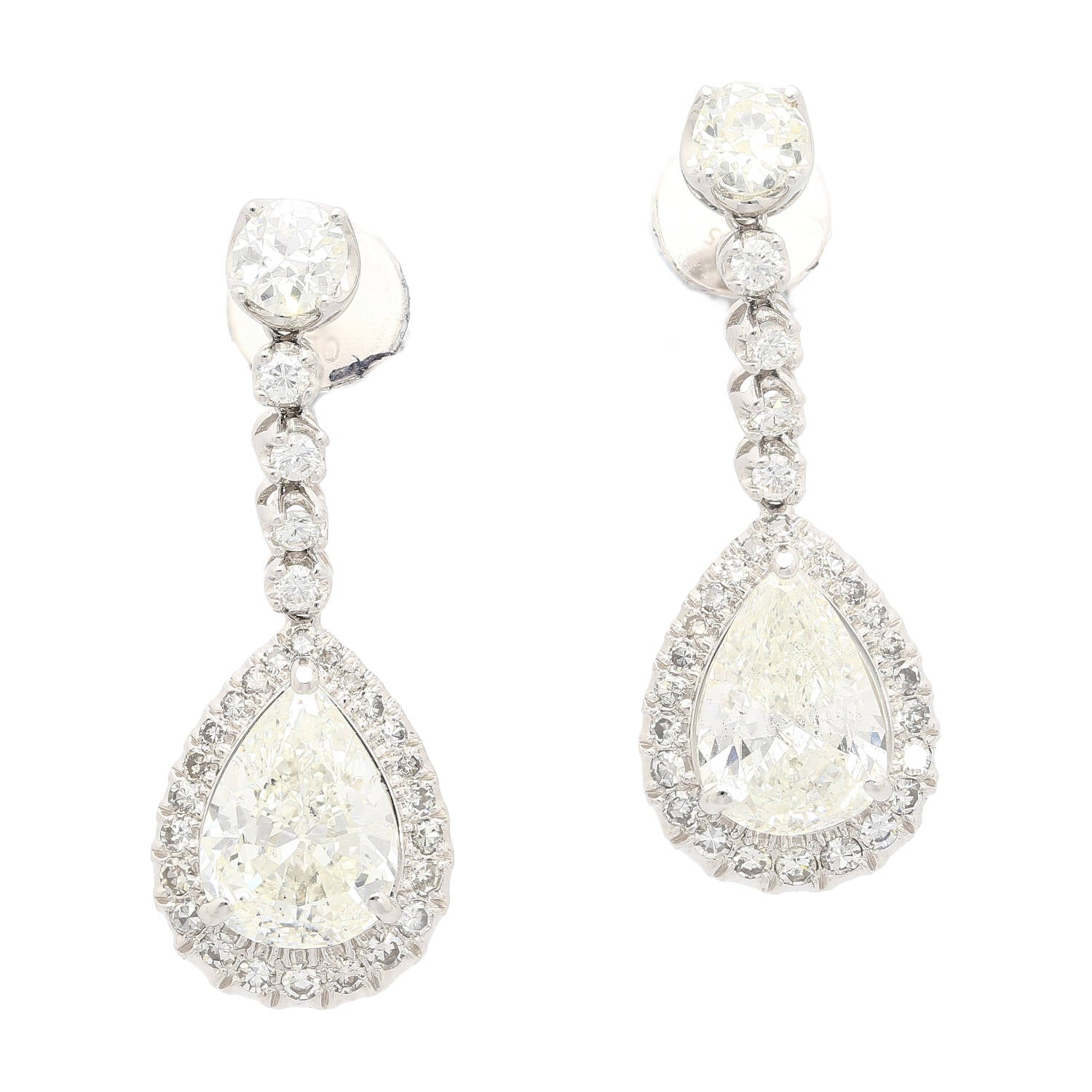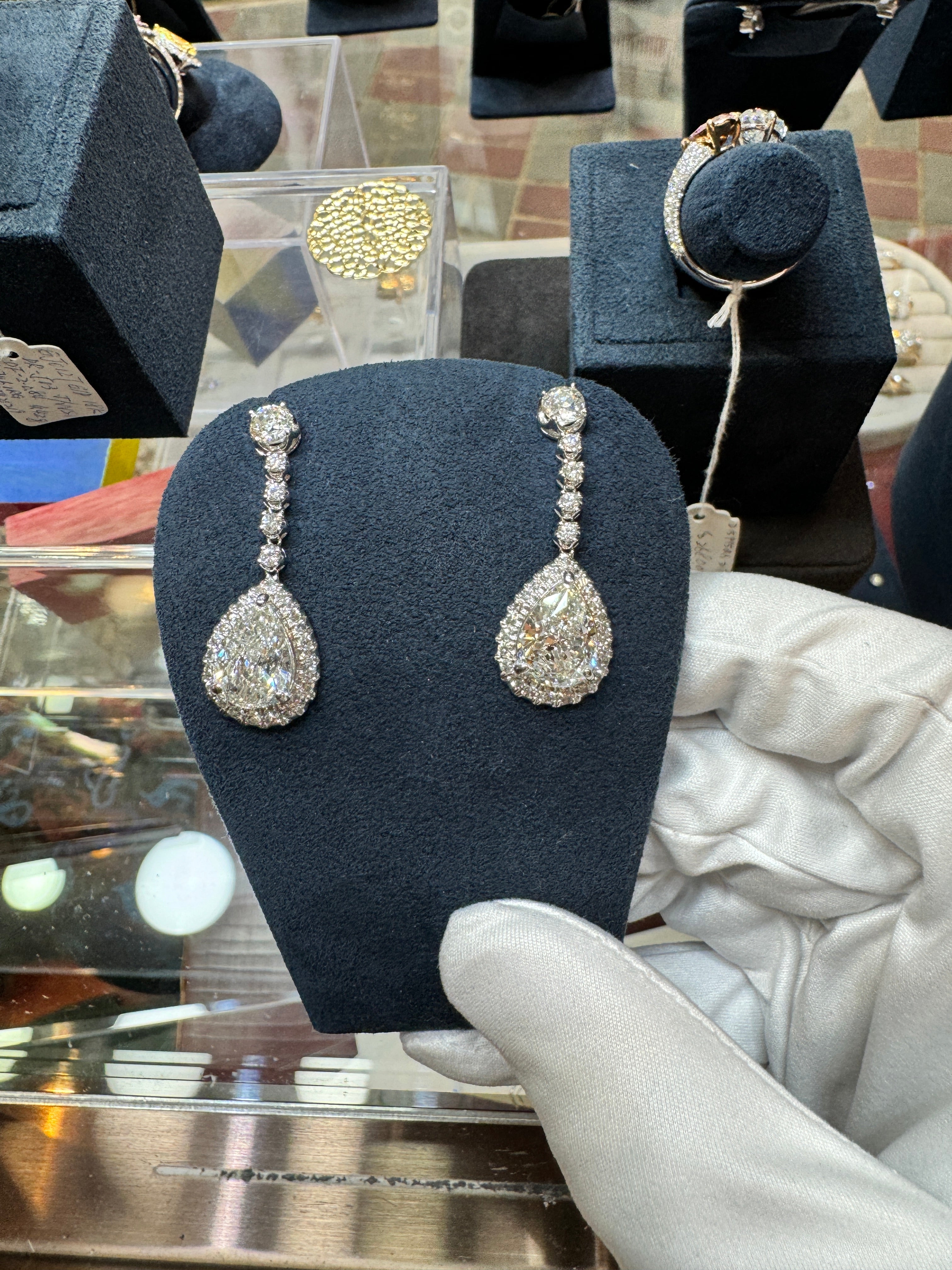 7.51 Carat Pear Cut Diamond Drop Earrings Round Brilliant Halo Old European Cut 18K White Gold