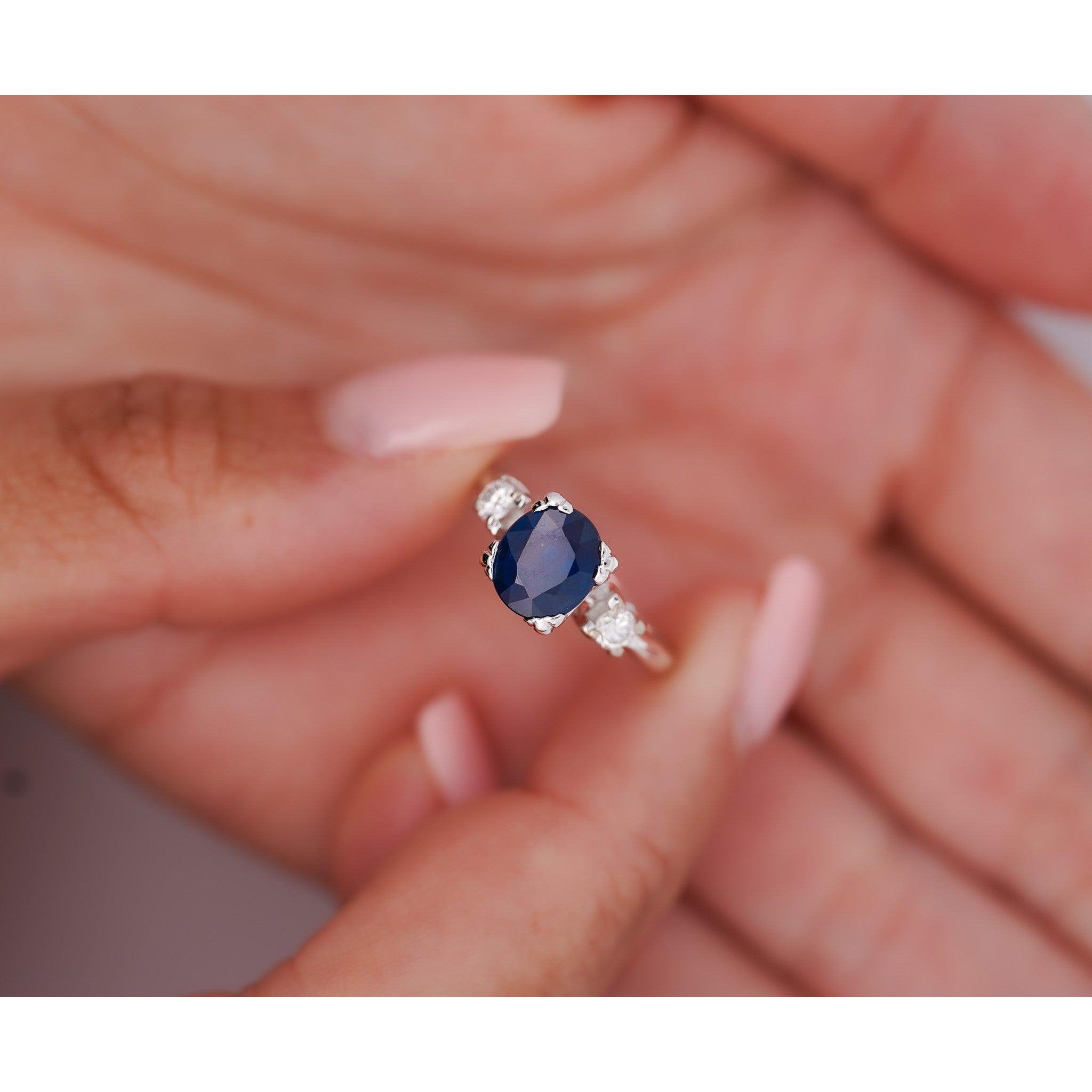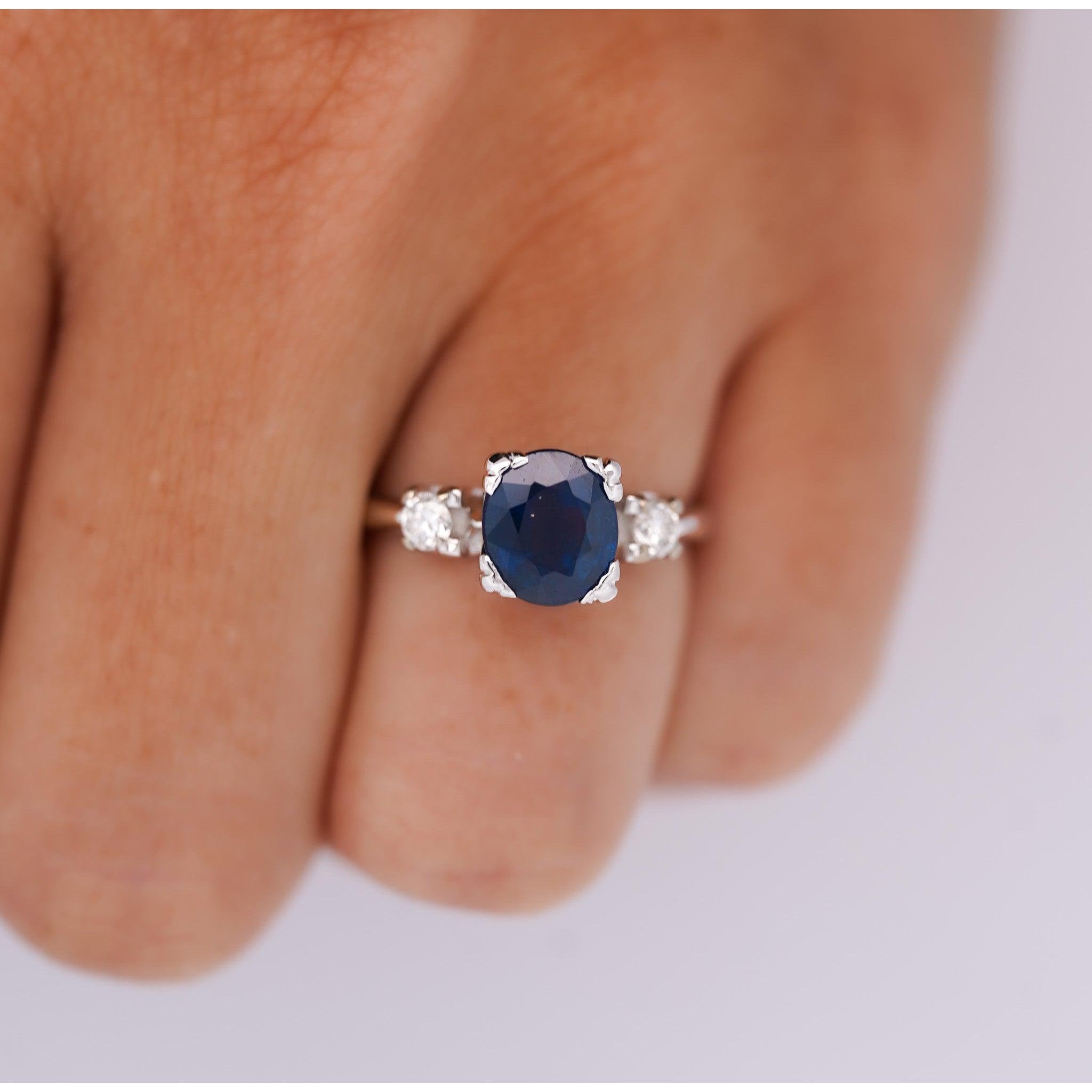 Presented here is a GIA certified 1.85-carat oval-cut sapphire and round diamond 3-stone ring. On its shoulders rest two round-cut,... Read more