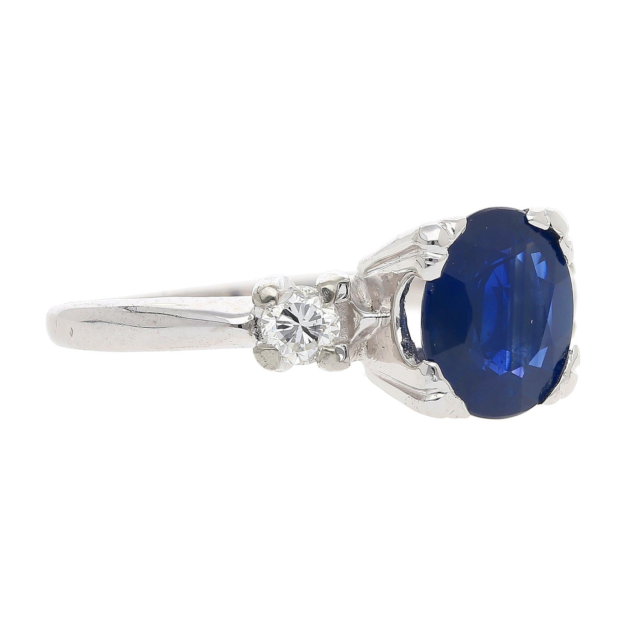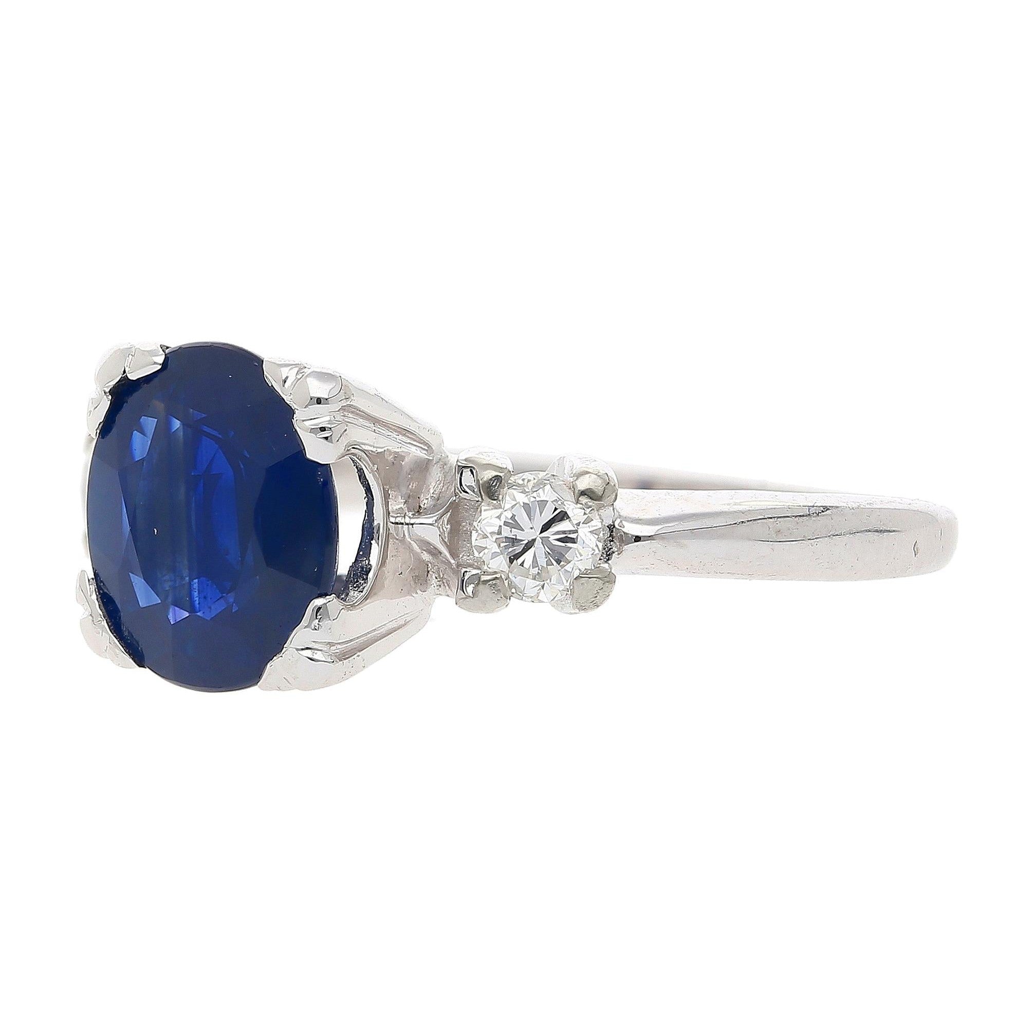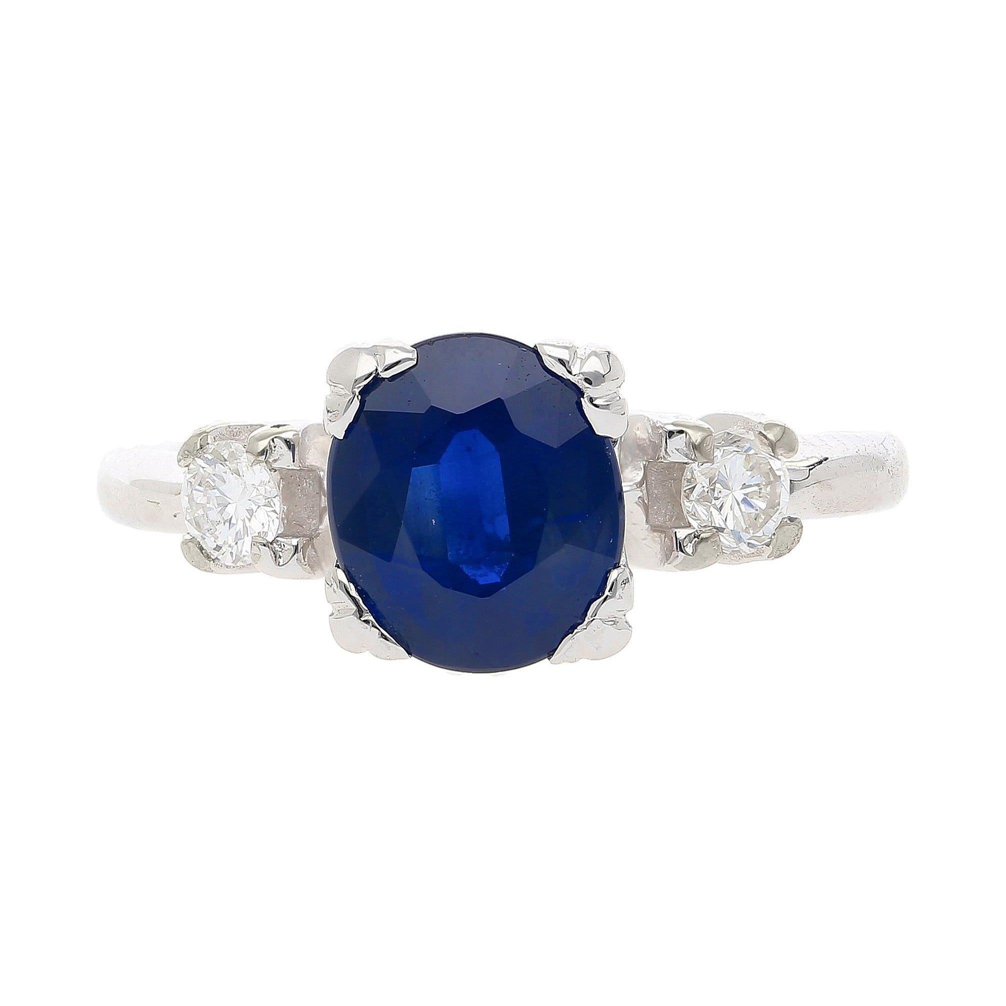 GIA Cert. 1.85 Carat Oval Blue Sapphire & Diamond 14K White Gold 3 Stone Ring