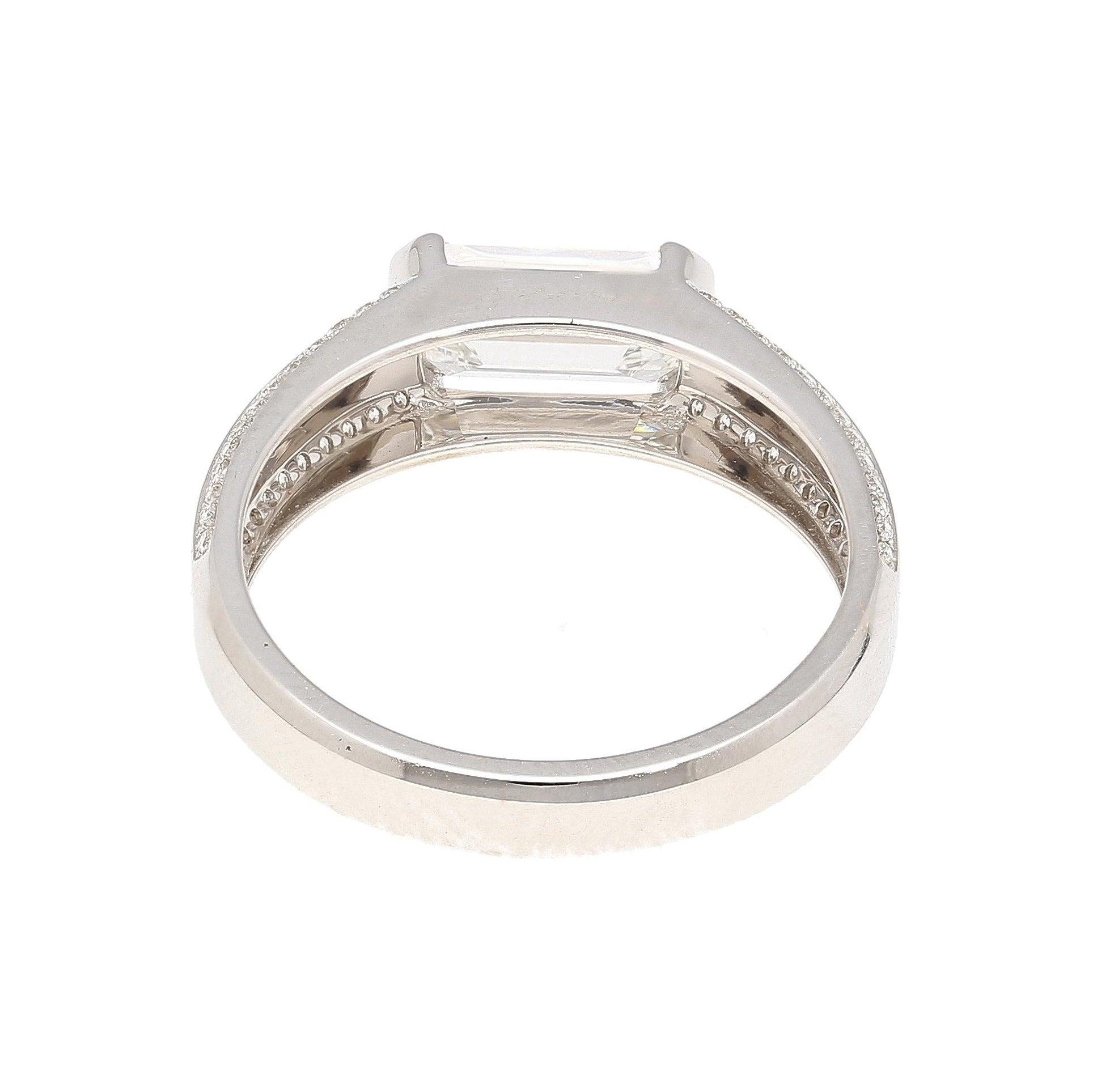 1.33 Carat Emerald Cut D Color VVS2 Diamond East West Band Ring 18K White Gold