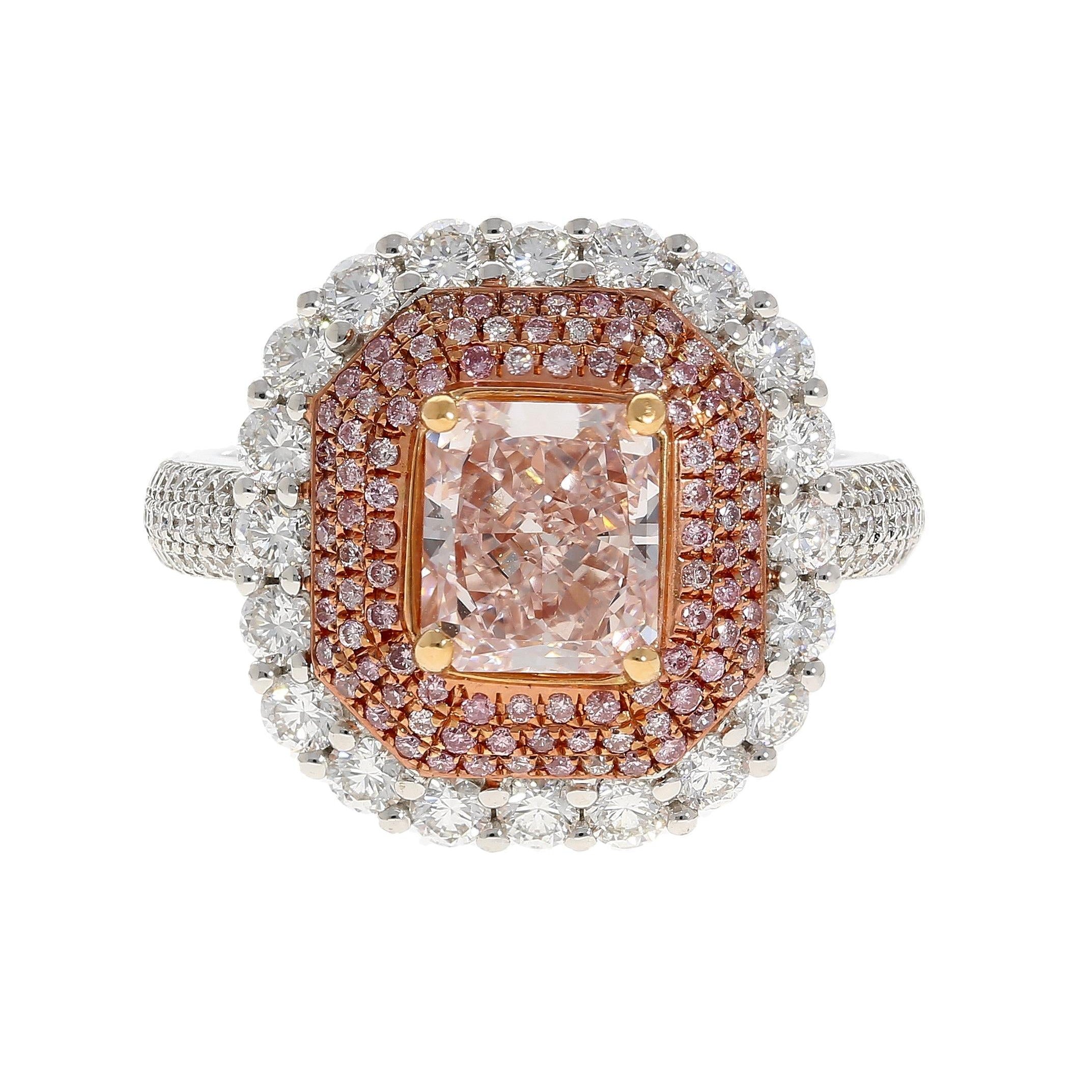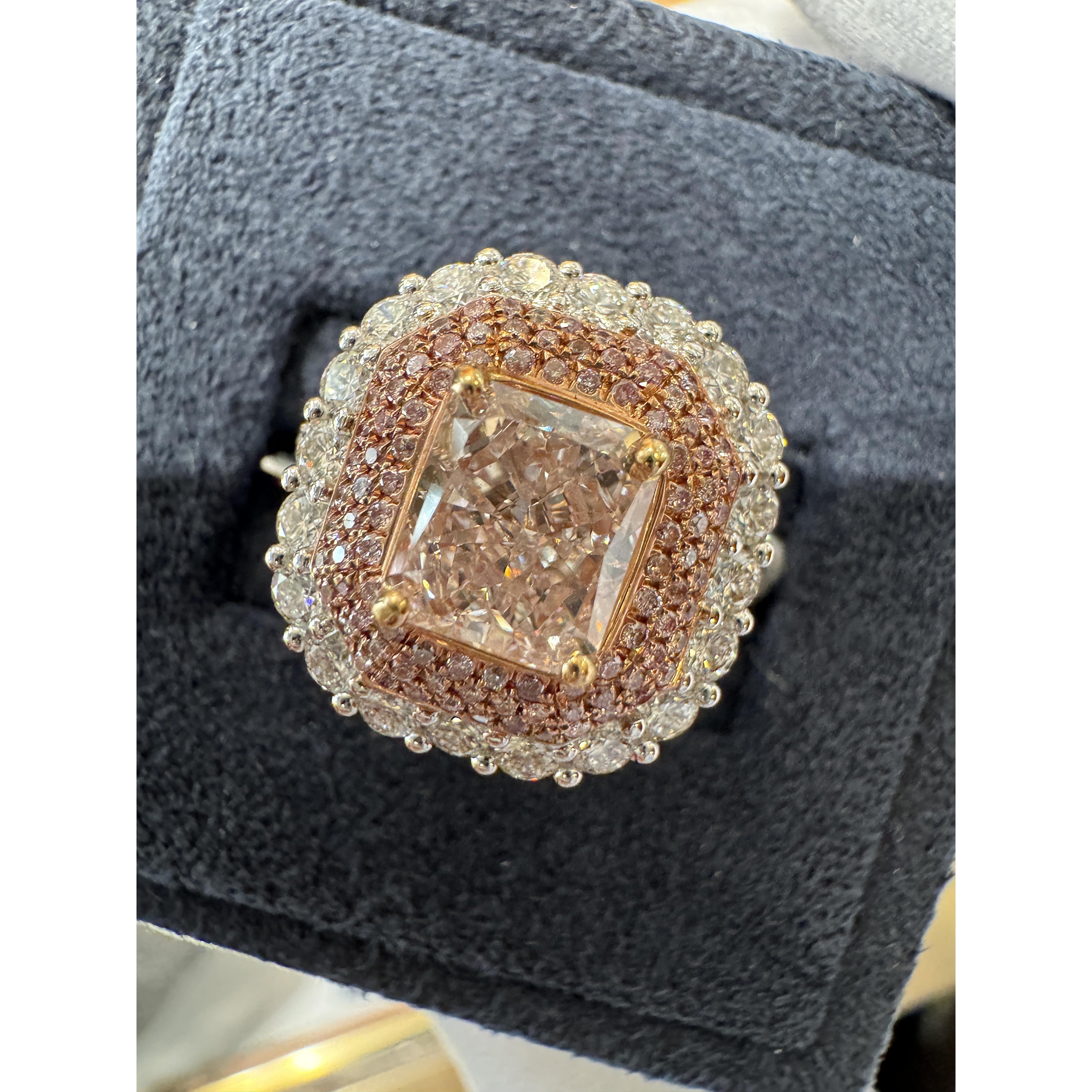 GIA Certified 2.69ct Fancy Orangy Pink Diamond Halo Ring