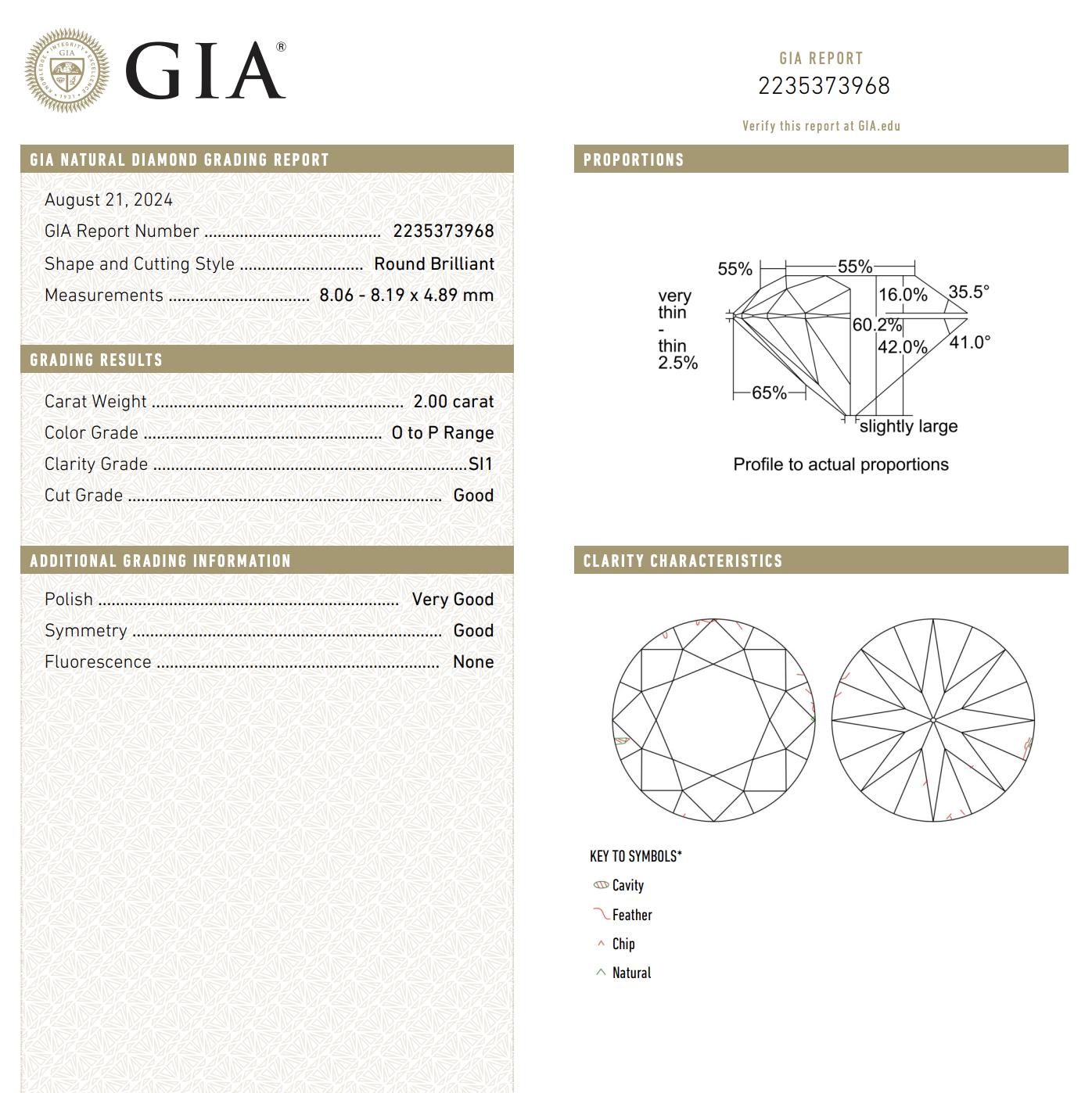 This diamond is the ideal balance of budget friendly and appearance to the naked eye. It's a GIA certified O-P color with SI1 clarity, and in person the ring faces up much whiter and is eye clean. It's blend of slightly warm color and eye clean but not "perfect" clarity make is an unmistakable natural diamond that is noticeably natural.