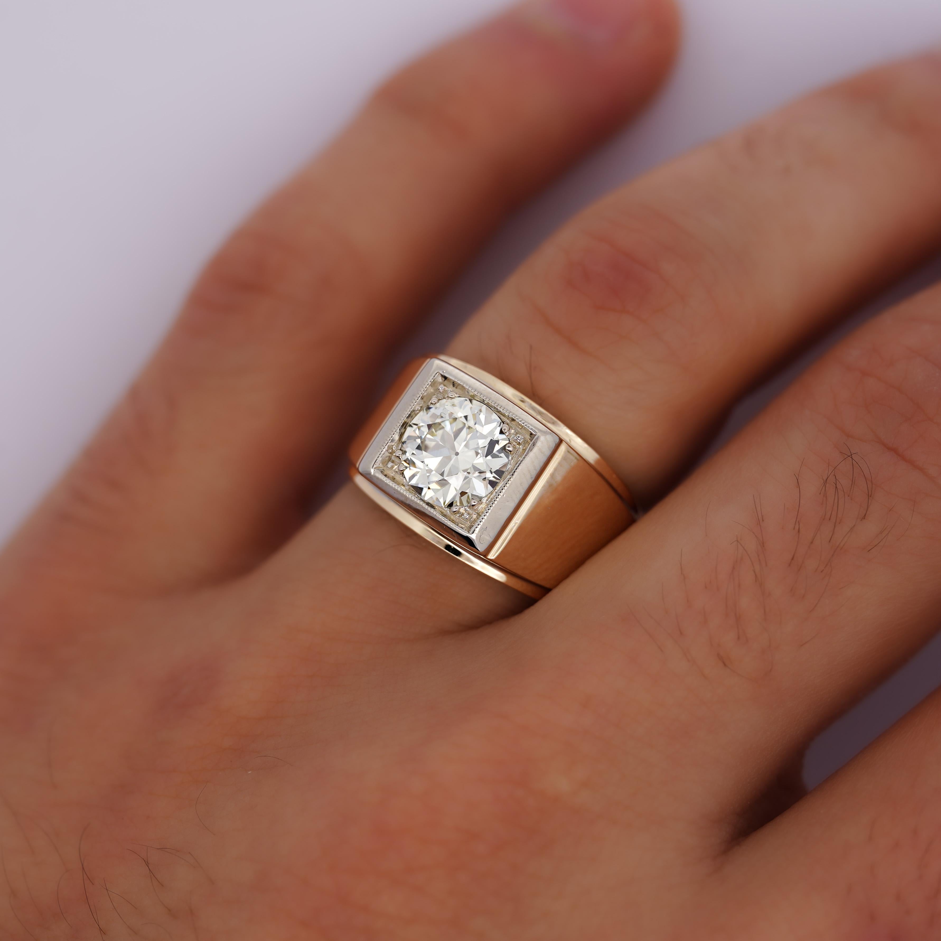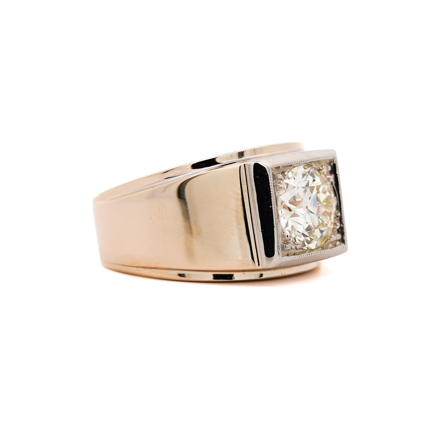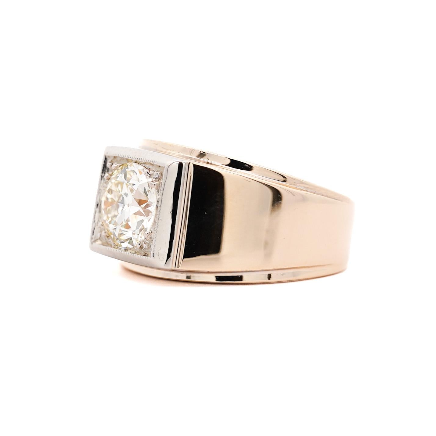 GIA Certified 2 Carat O-P/SI1 Diamond in 14K Yellow Gold Solitaire Men's Ring in Size 8.75. Polished finish.