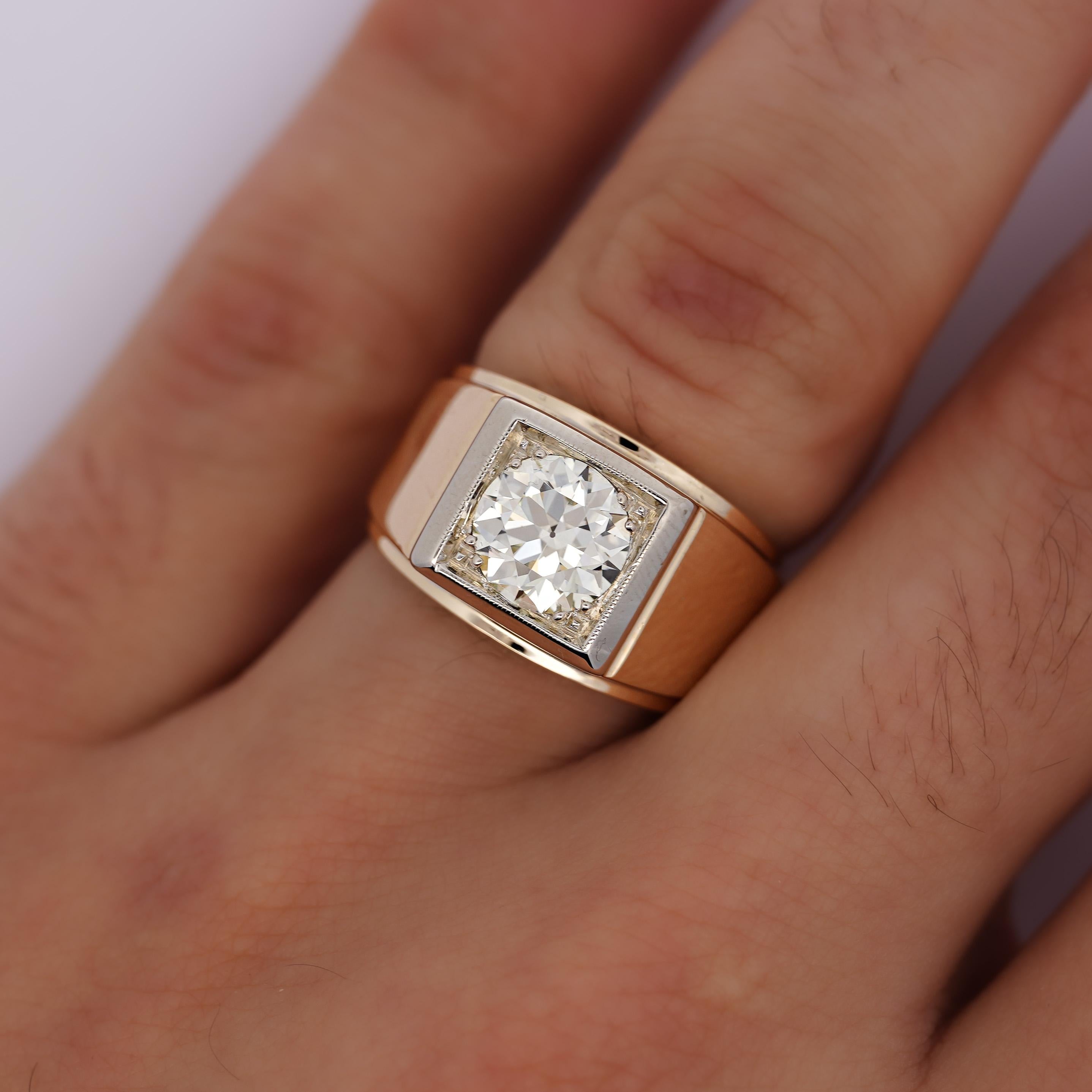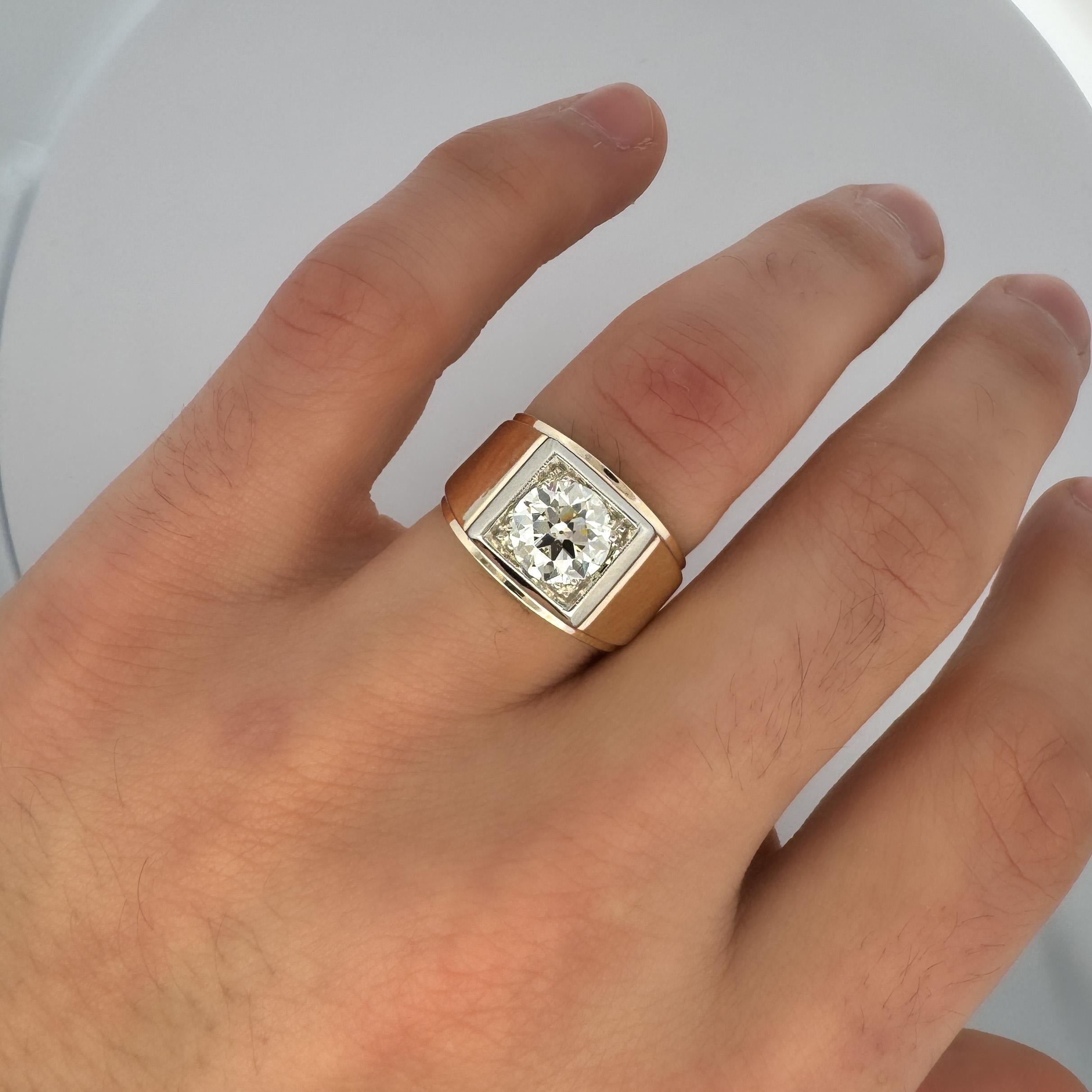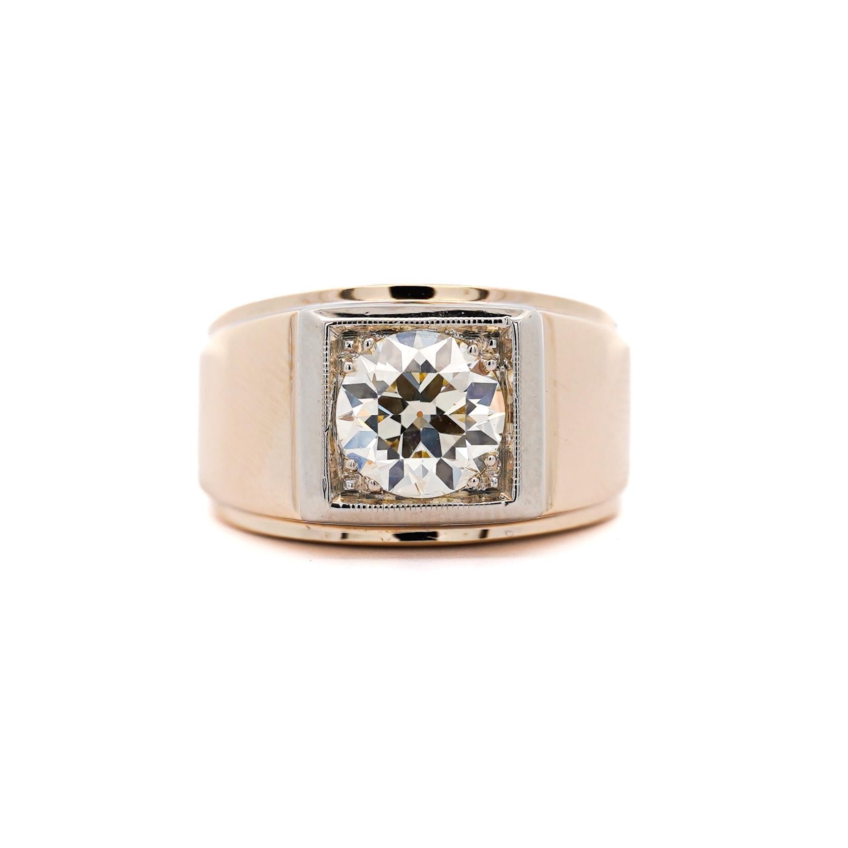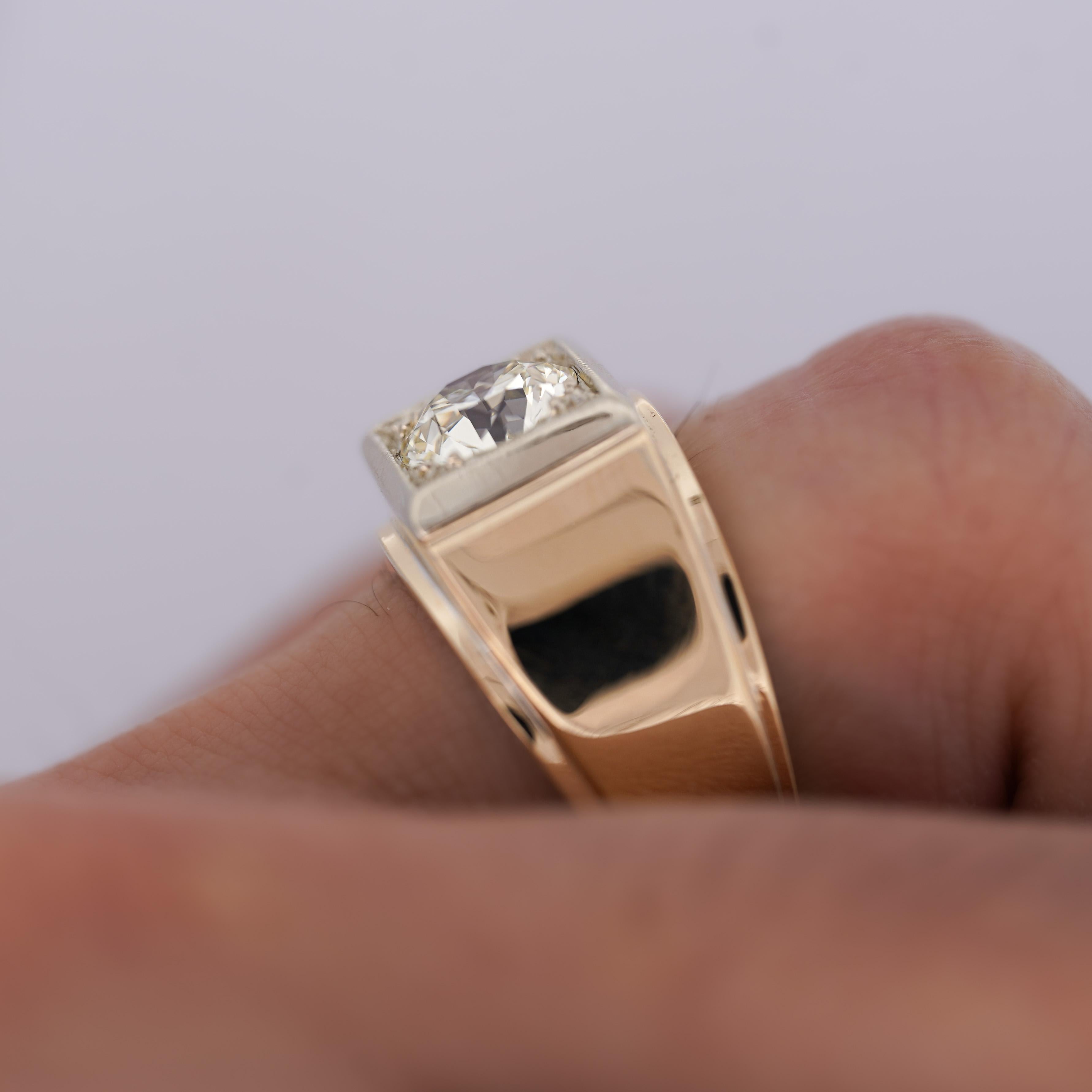 GIA Certified 2 Carat O-P/SI1 Diamond in 14K Yellow Gold Solitaire Men's Ring in Size 8.75. Polished finish.