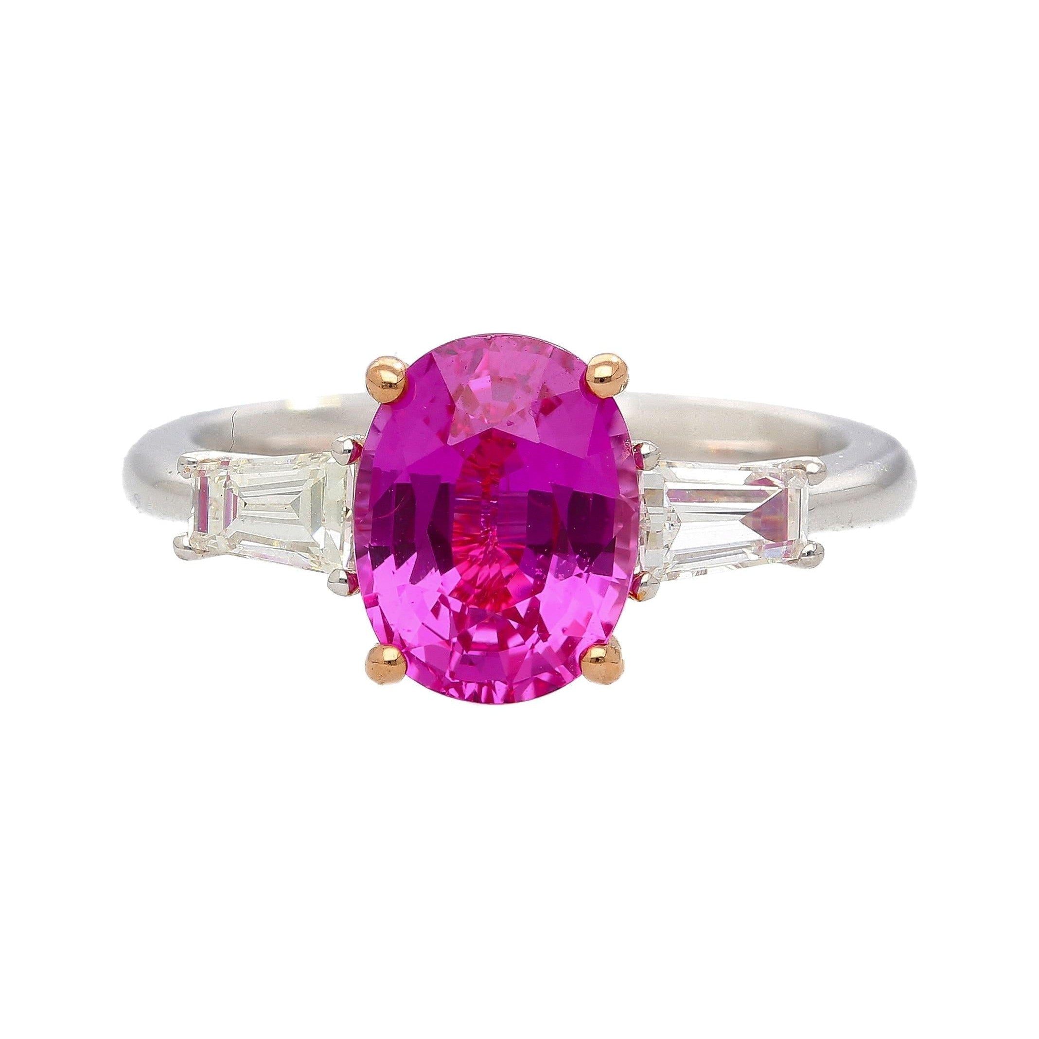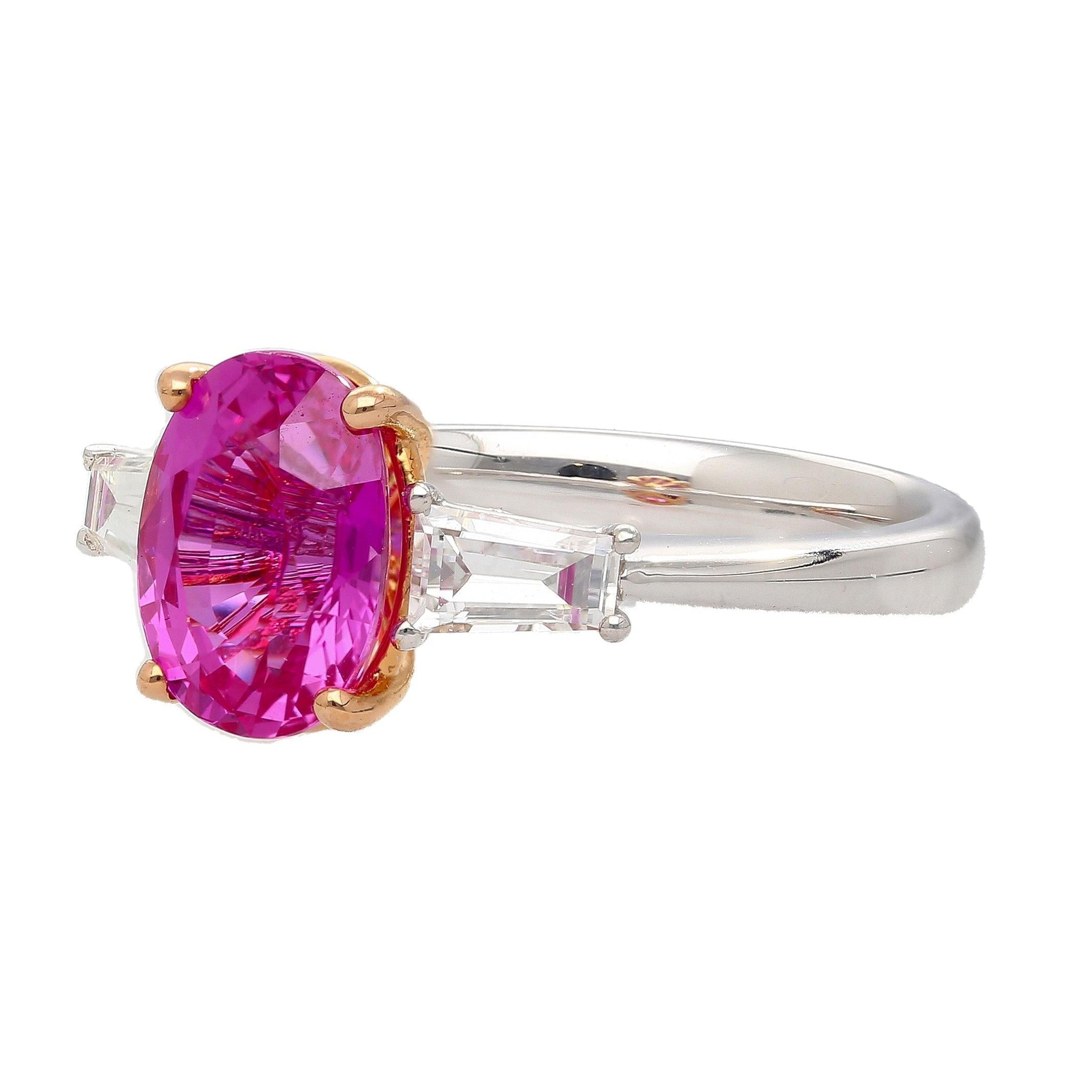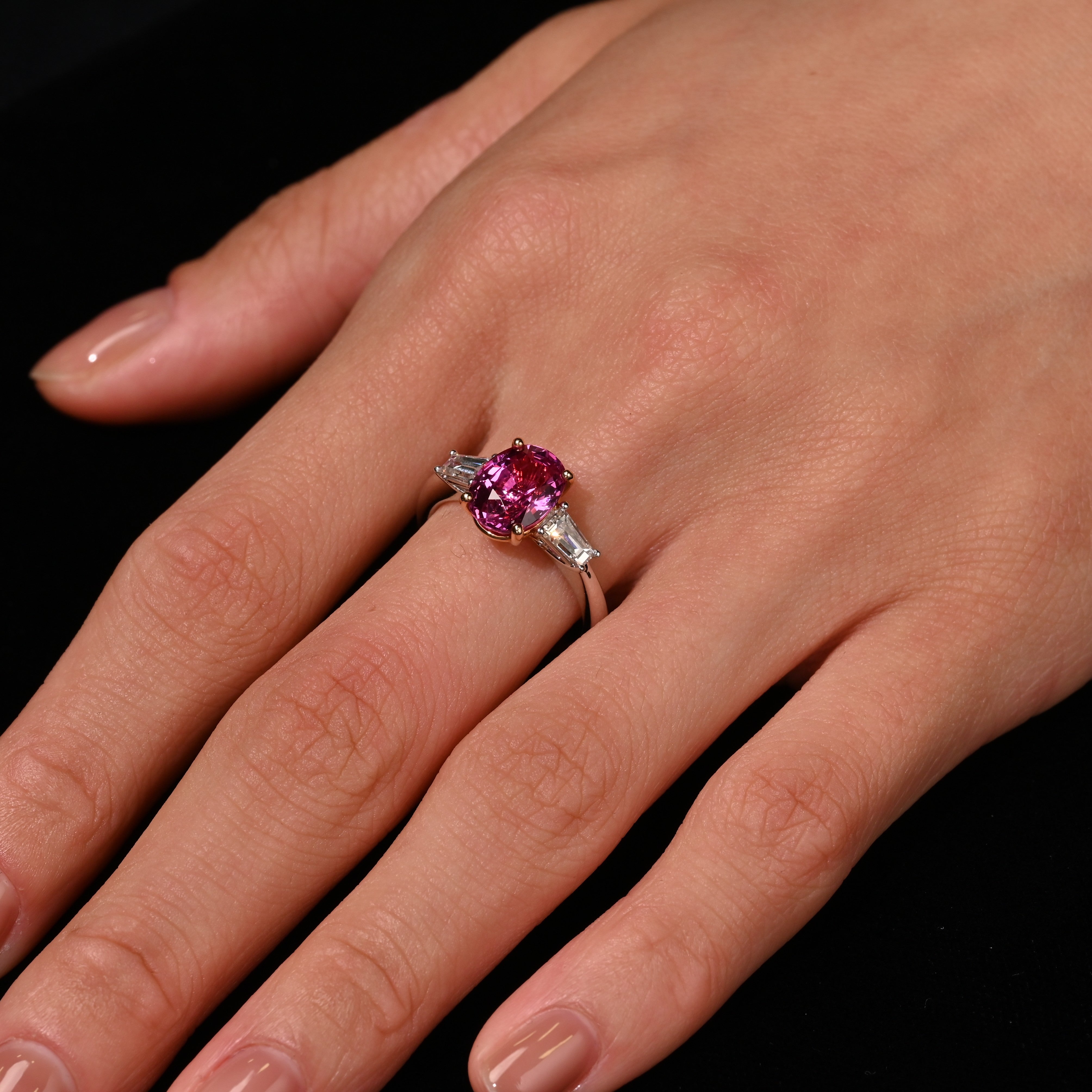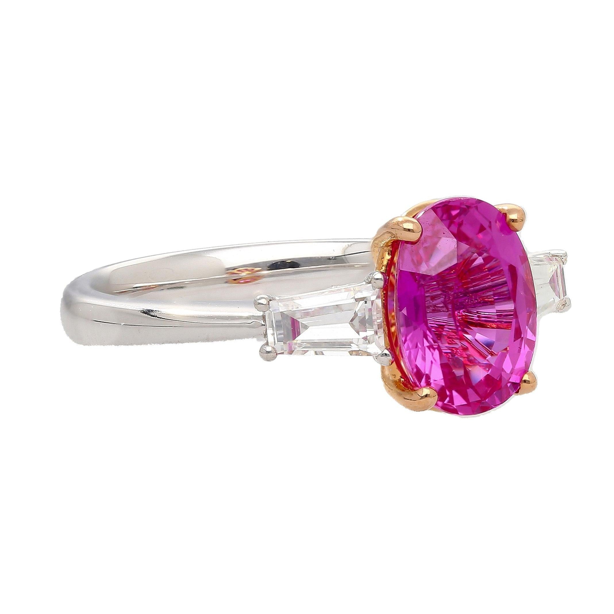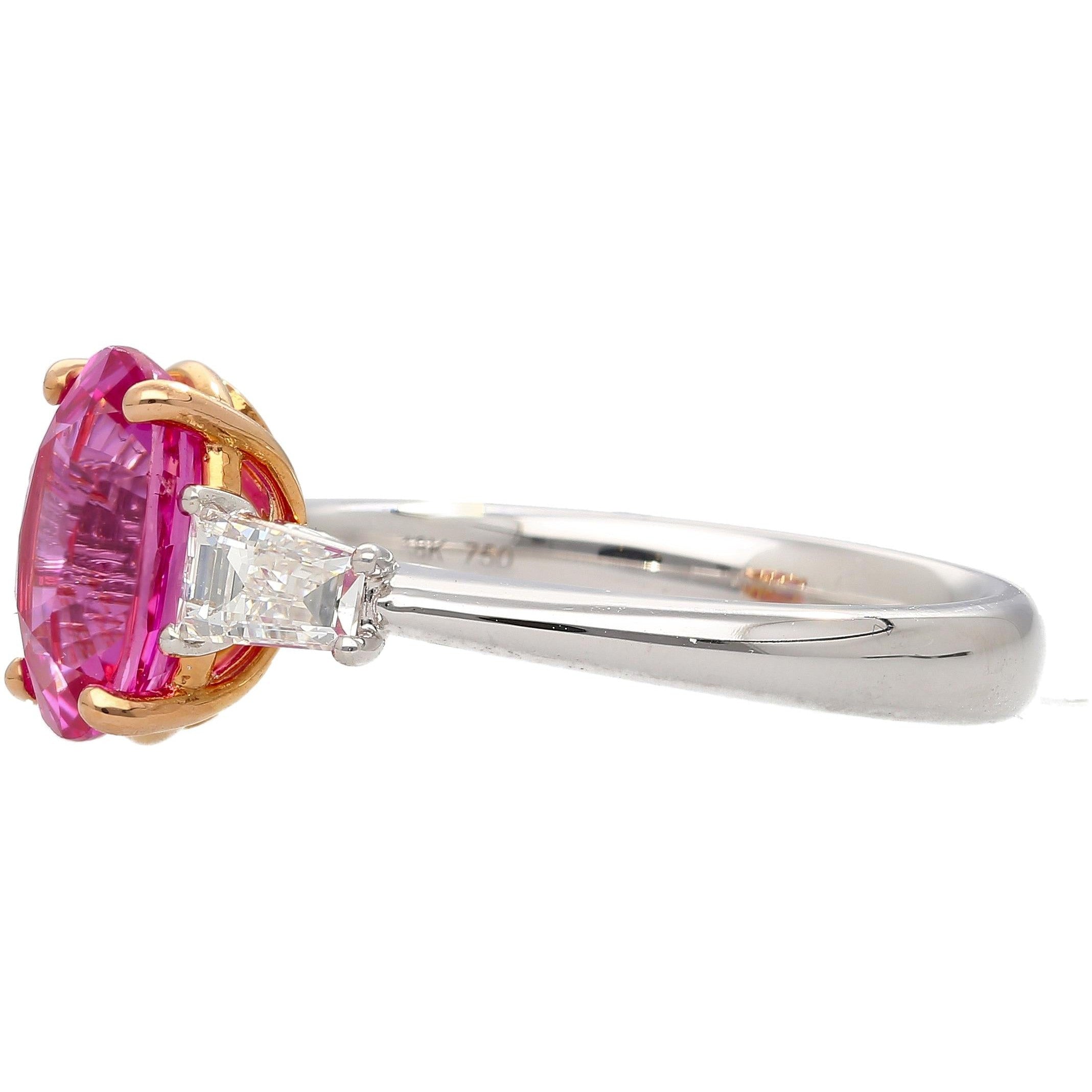 GIA Certified 3.2 Carat No Heat Pink Sapphire Oval and Diamond 3 Stone Ring