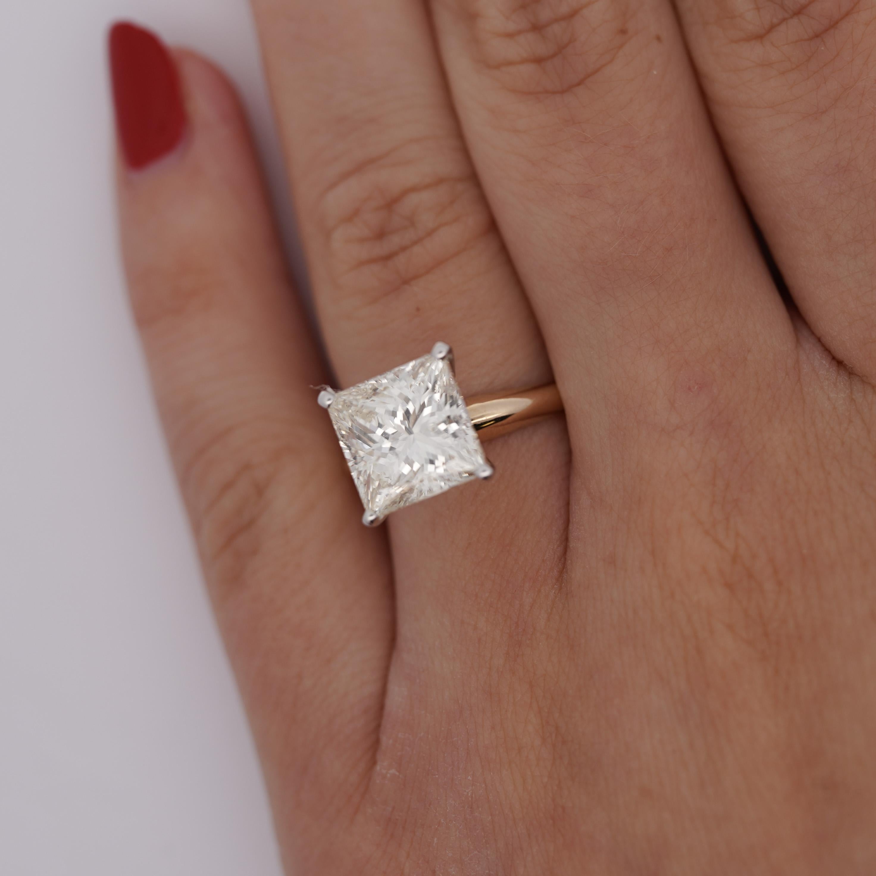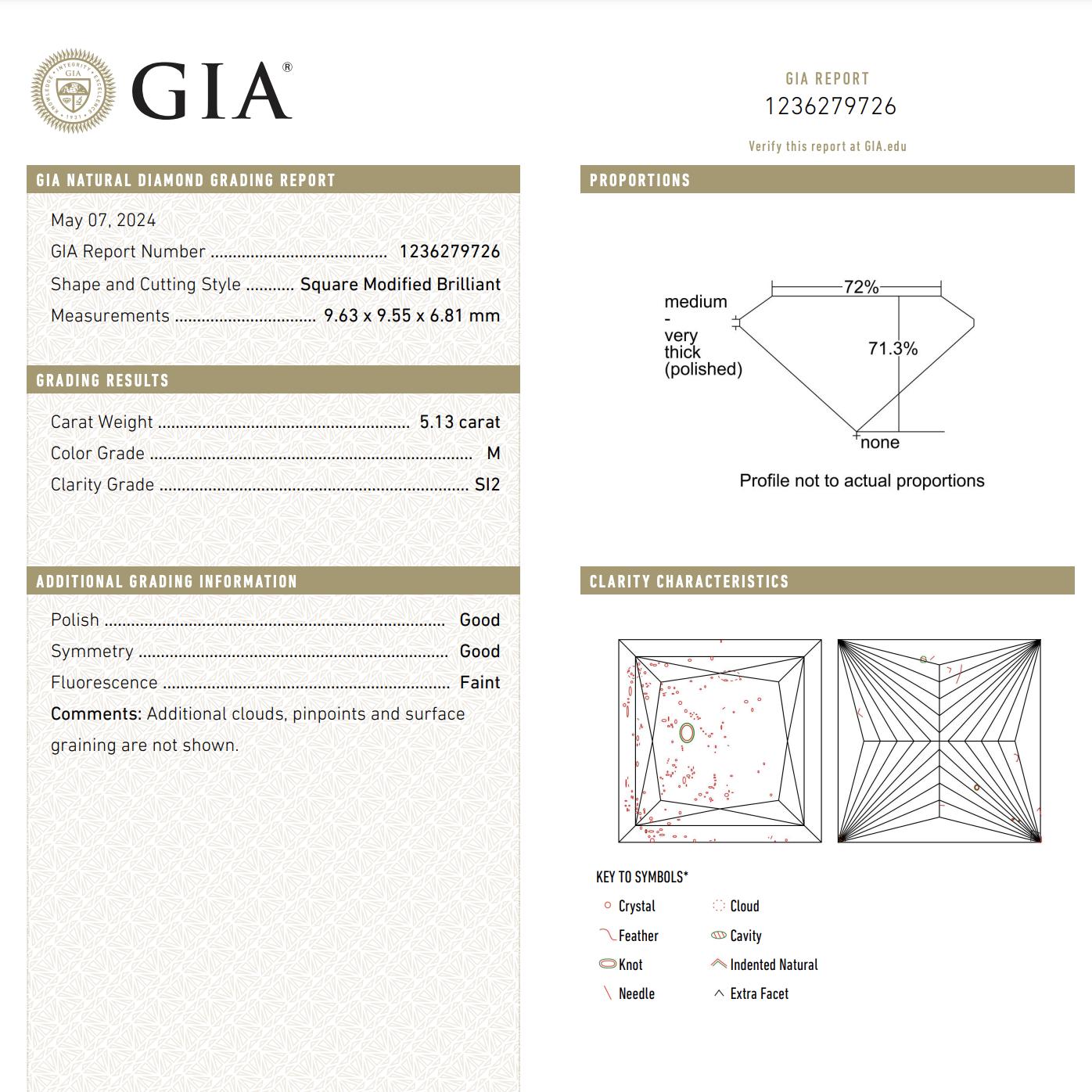 GIA Certified 5.13 Carat Princess Cut M/SI2 Natural Diamond Two Tone 4-Prong Solitaire Engagement Ring. Details: Item Type: Engagement Ring... Read more