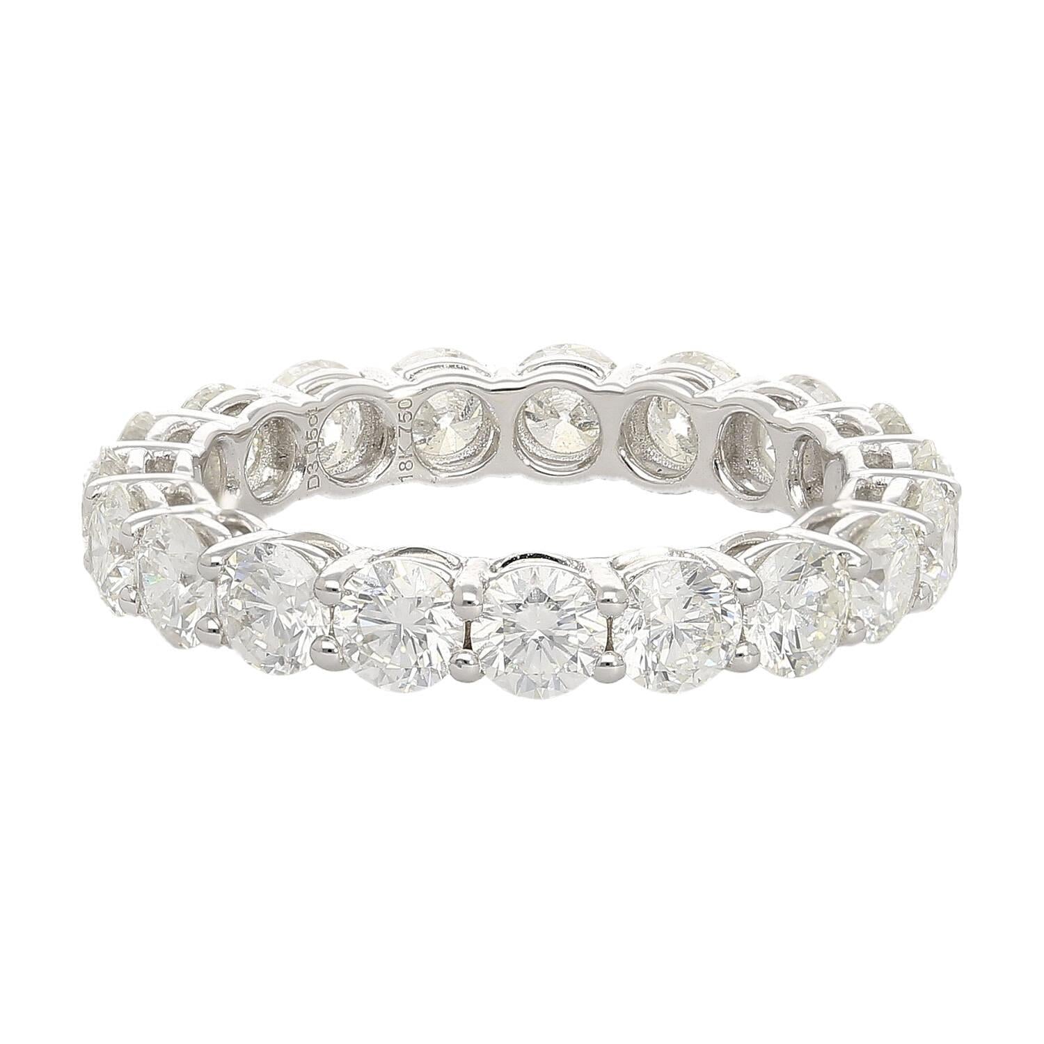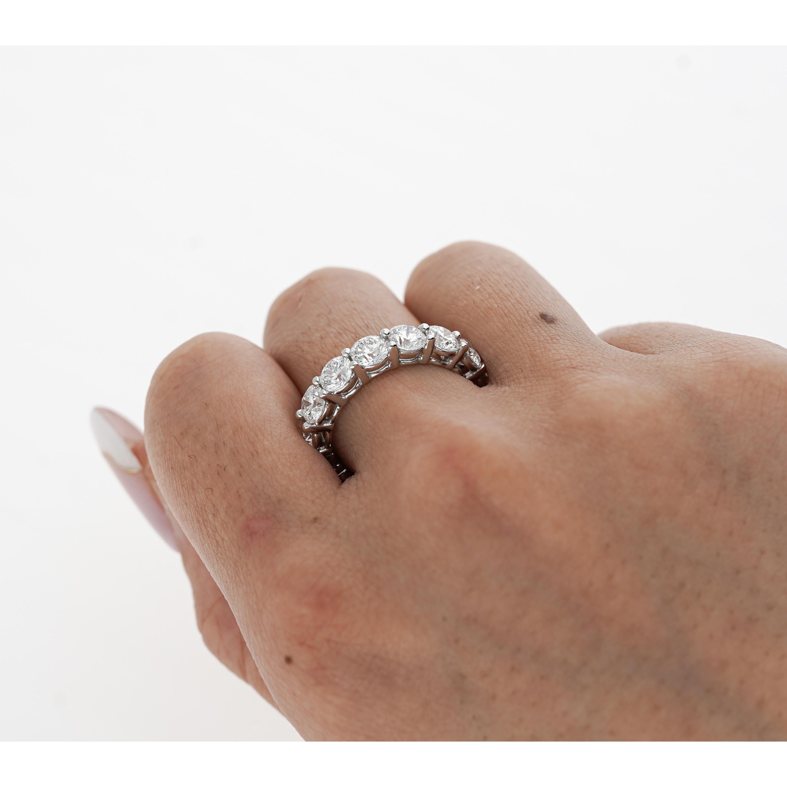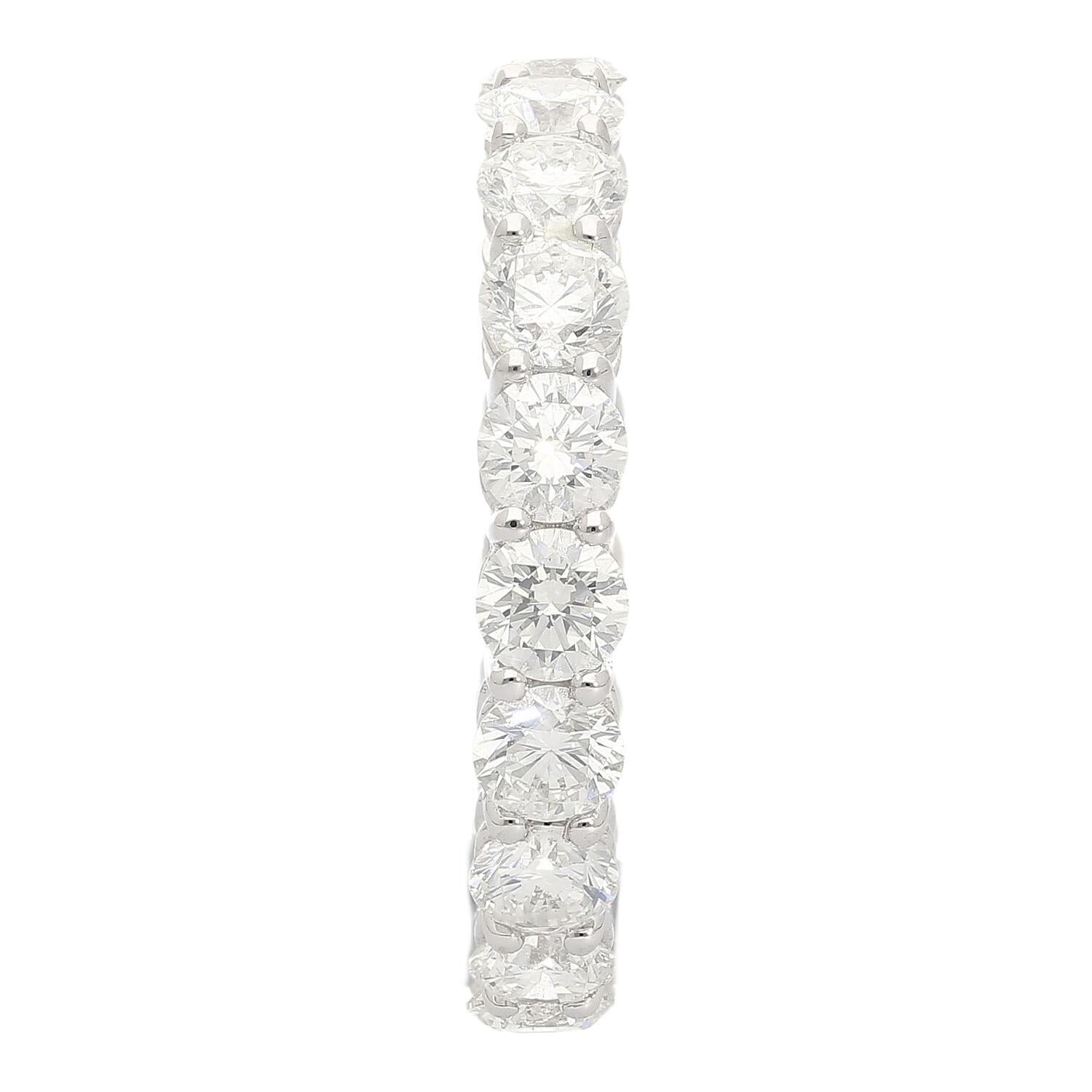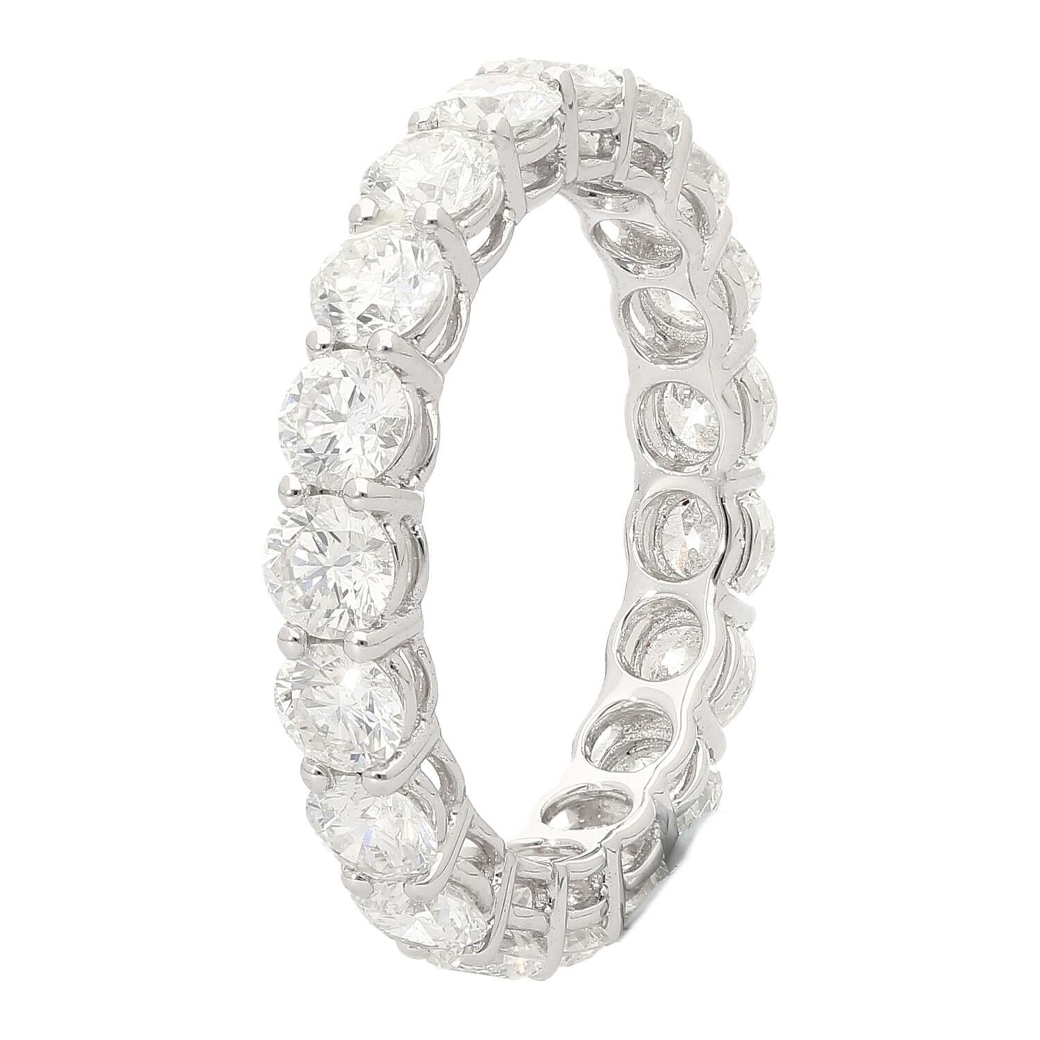 GIA certified round diamond wedding band ring set in 18K white gold with fifteen individually certified stones. Each diamond features D color, VS1 clarity, excellent cut, polish, and symmetry with no fluorescence in 4-prong setting.