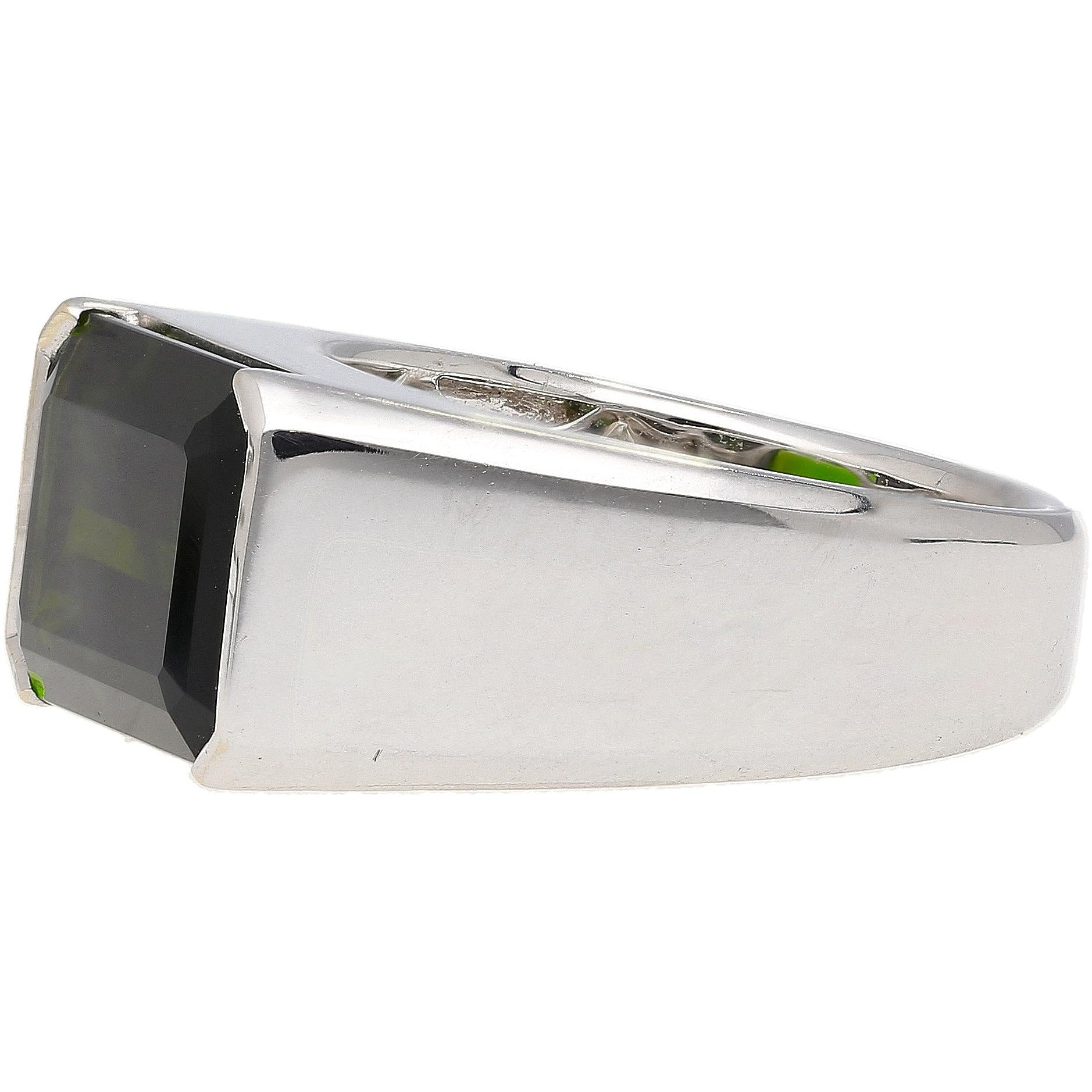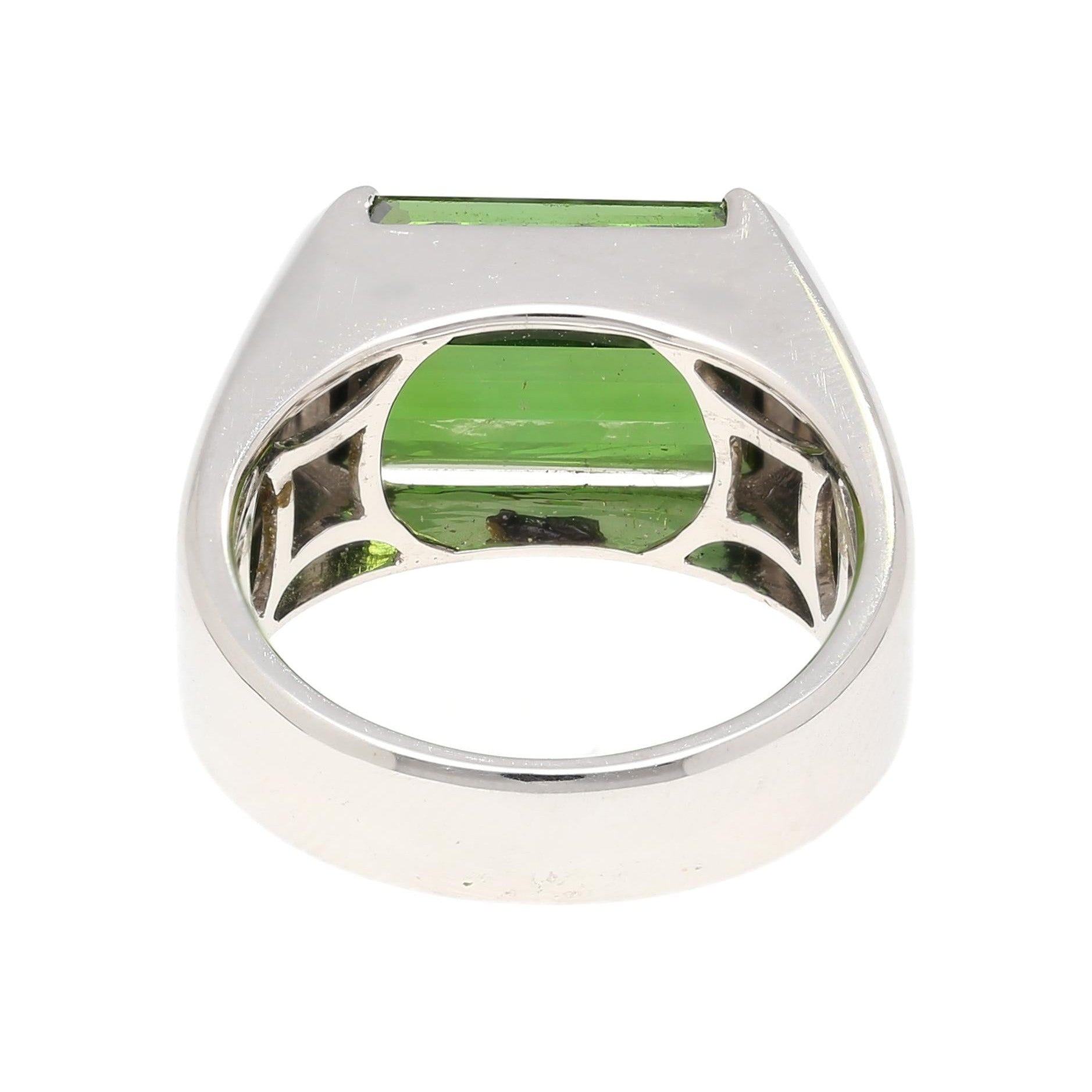 6.47 Carat Octagonal Cut Green Tourmaline Bezel Set 18K White Gold Ring
