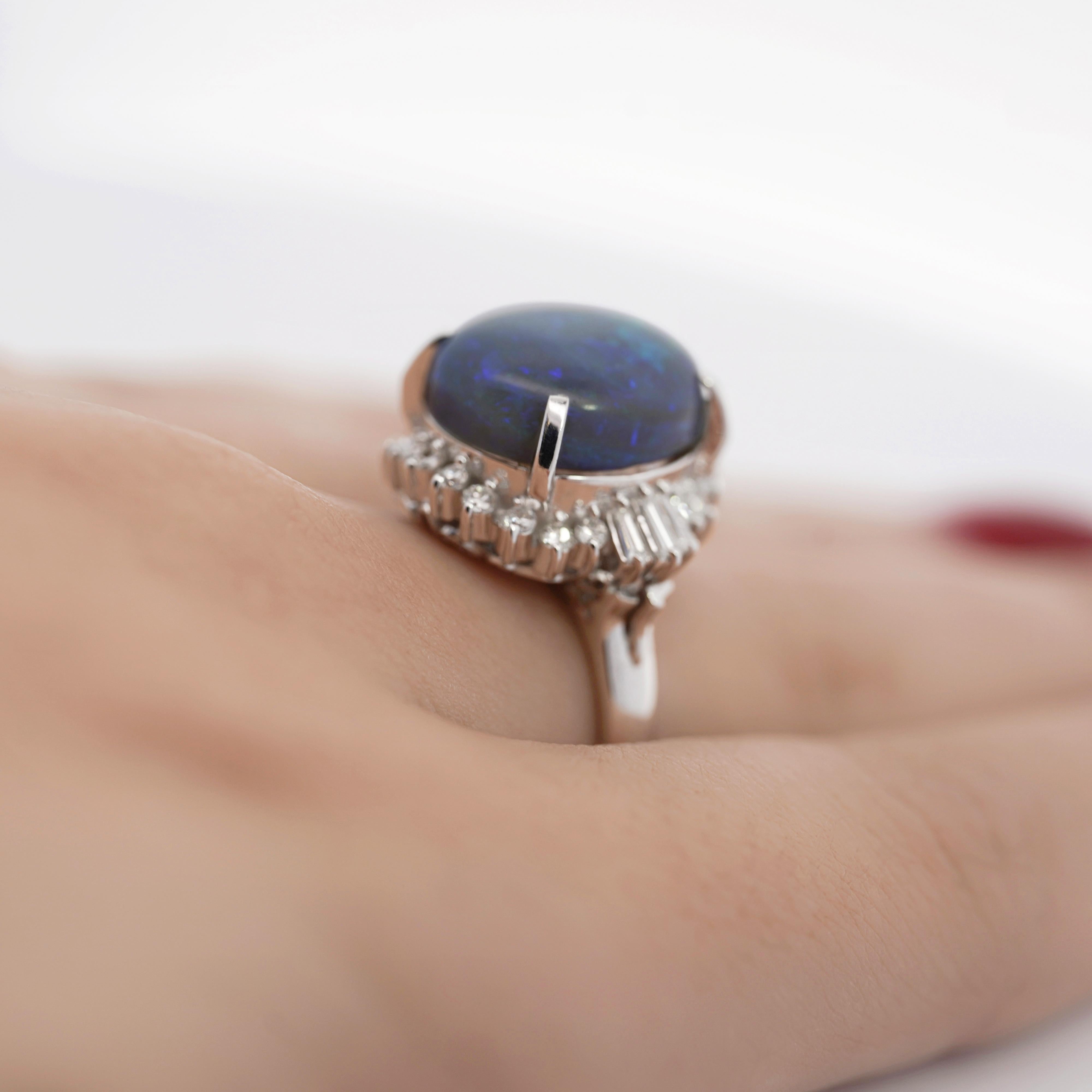 GIA Certified Vintage 8.45 Carat Natural Black Opal & 0.70 Carat Diamond Halo in Platinum 900 Halo Set Cocktail Ring,... Read more