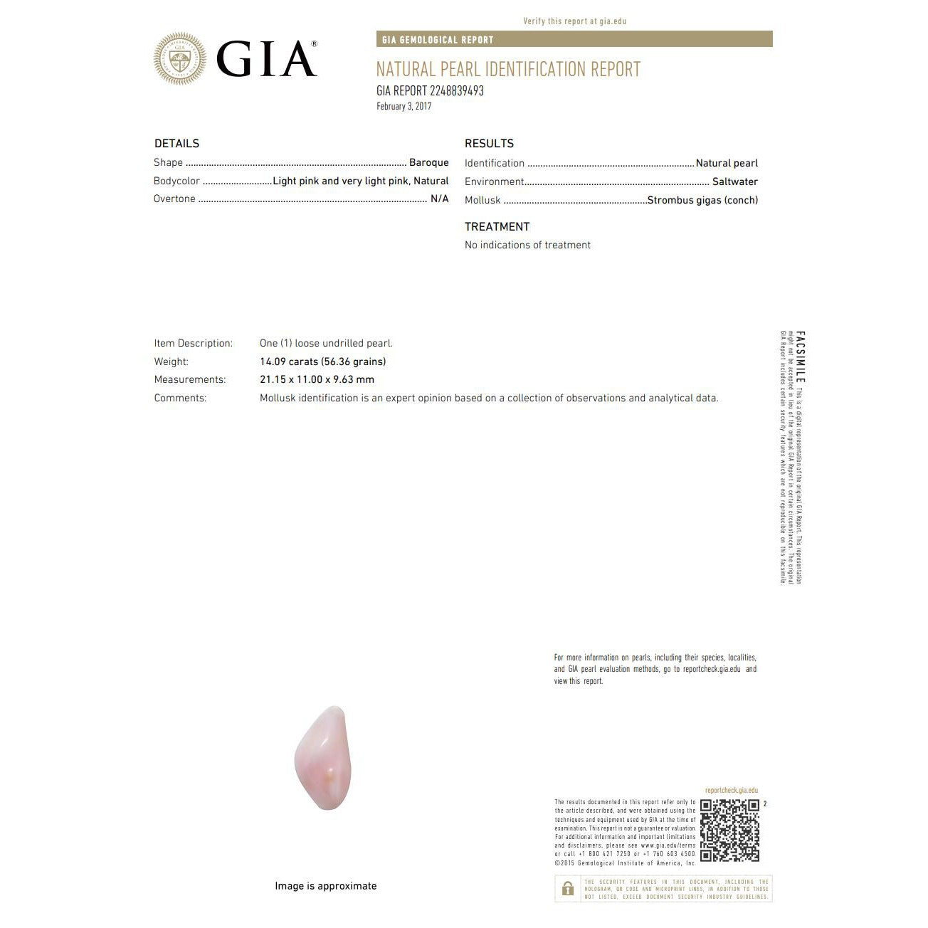 GIA Certified Natural Pink Saltwater Conch Pearl Vintage Necklace