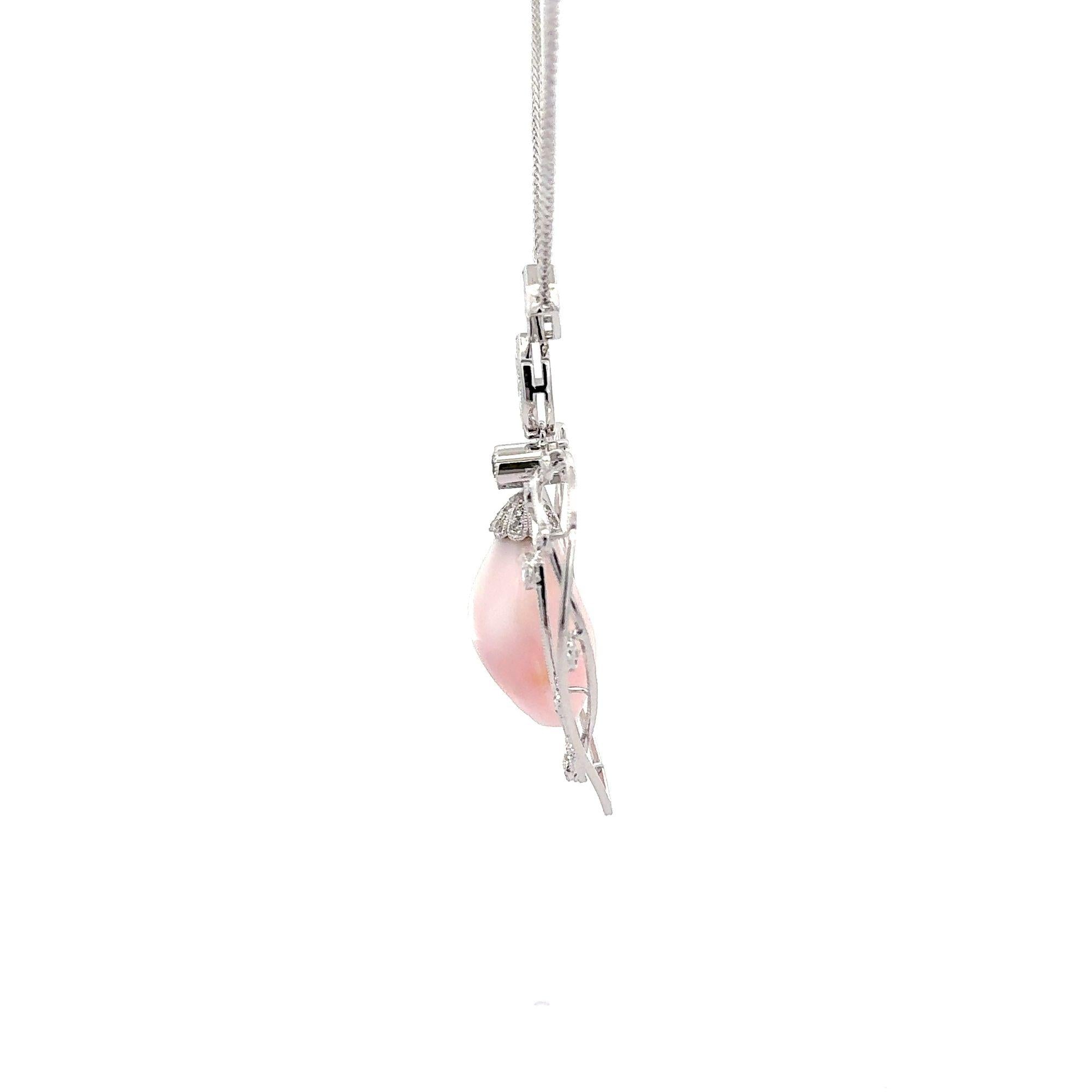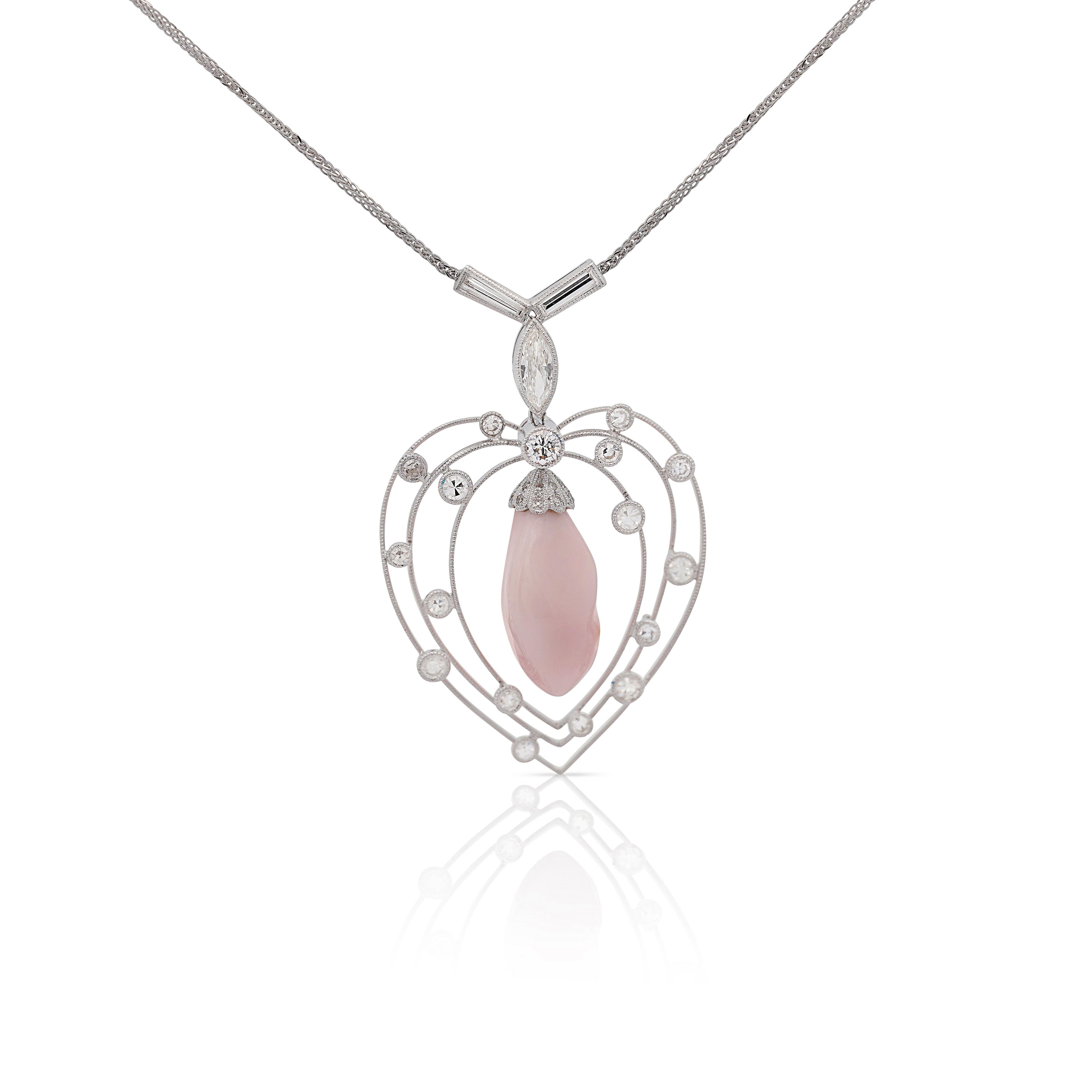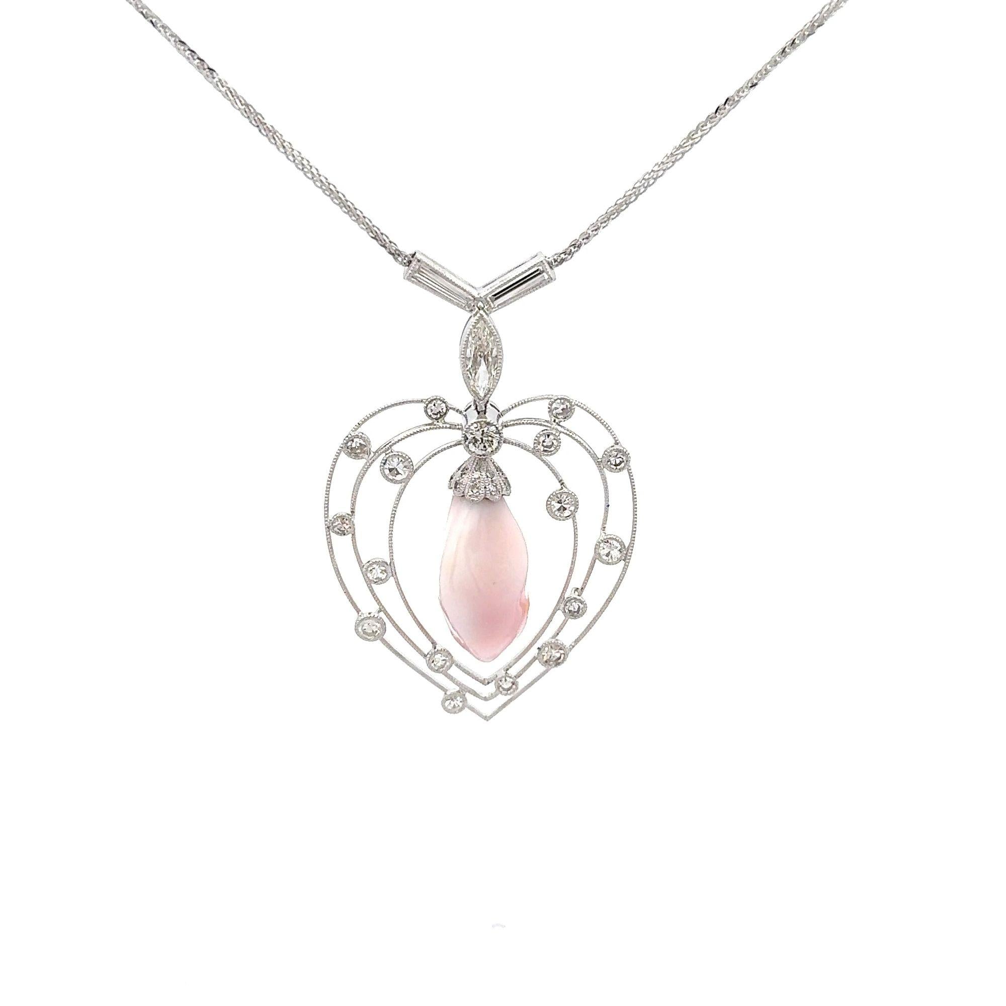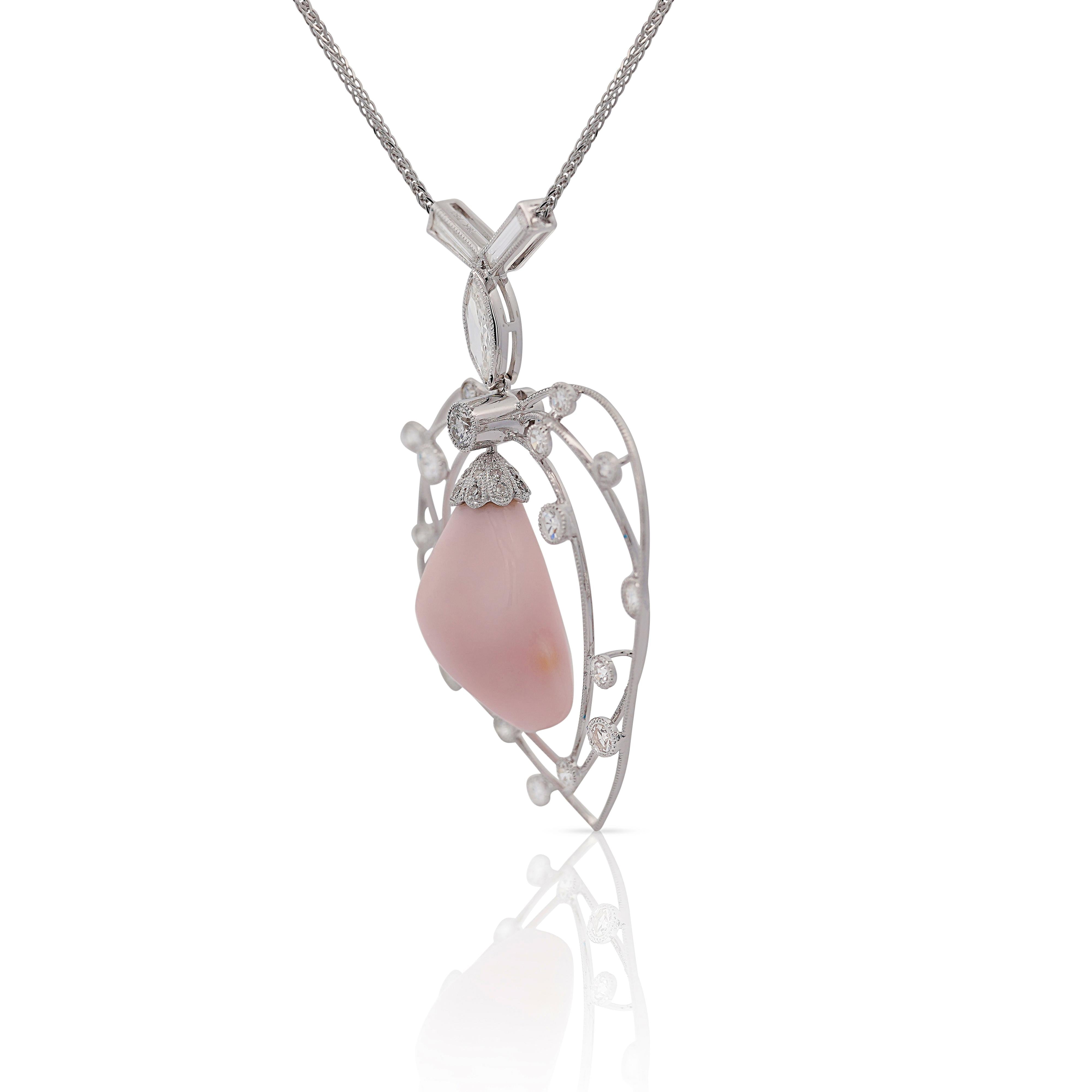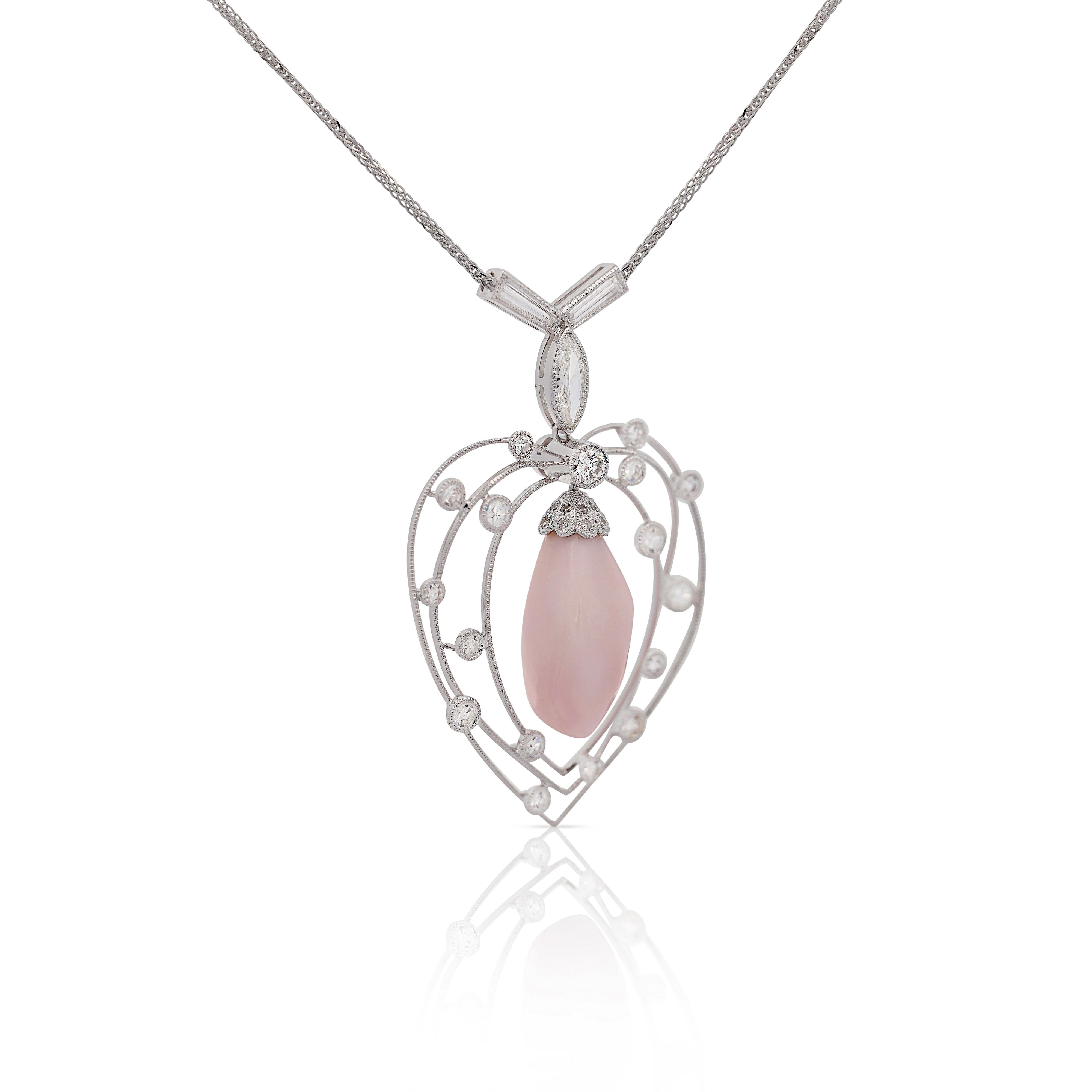 GIA certified natural pink baroque shaped saltwater conch pearl necklace. Set in platinum with stunning wire mounting and milgrain finish... Read more