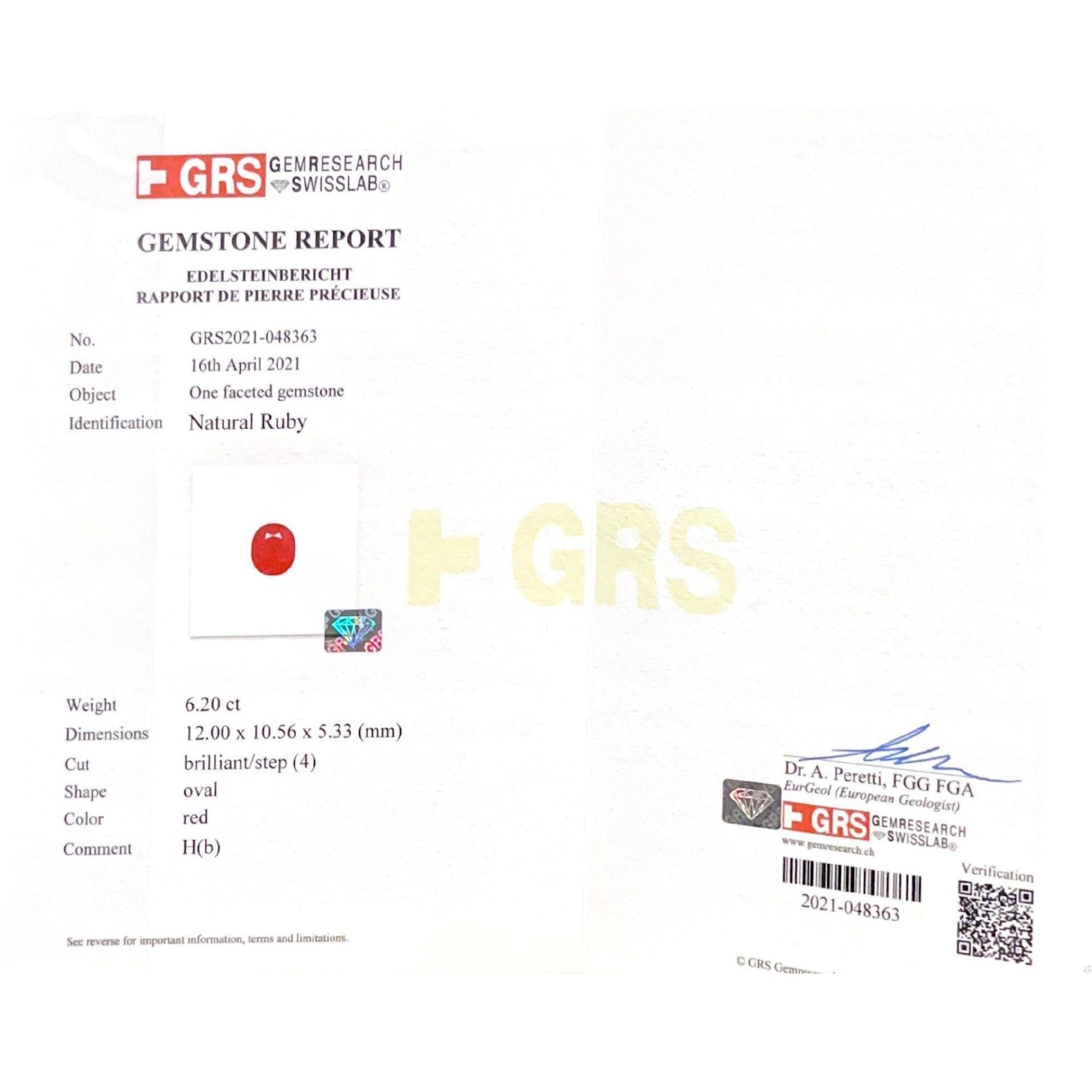 The GRS Certified Ruby has been tested for authenticity and comes with the GRS certification number: GRS2021-048363, ensuring that you are investing in a genuine, high-quality gemstone. This ring combines vintage charm with modern craftsmanship, making it a perfect addition to any jewelry collection.