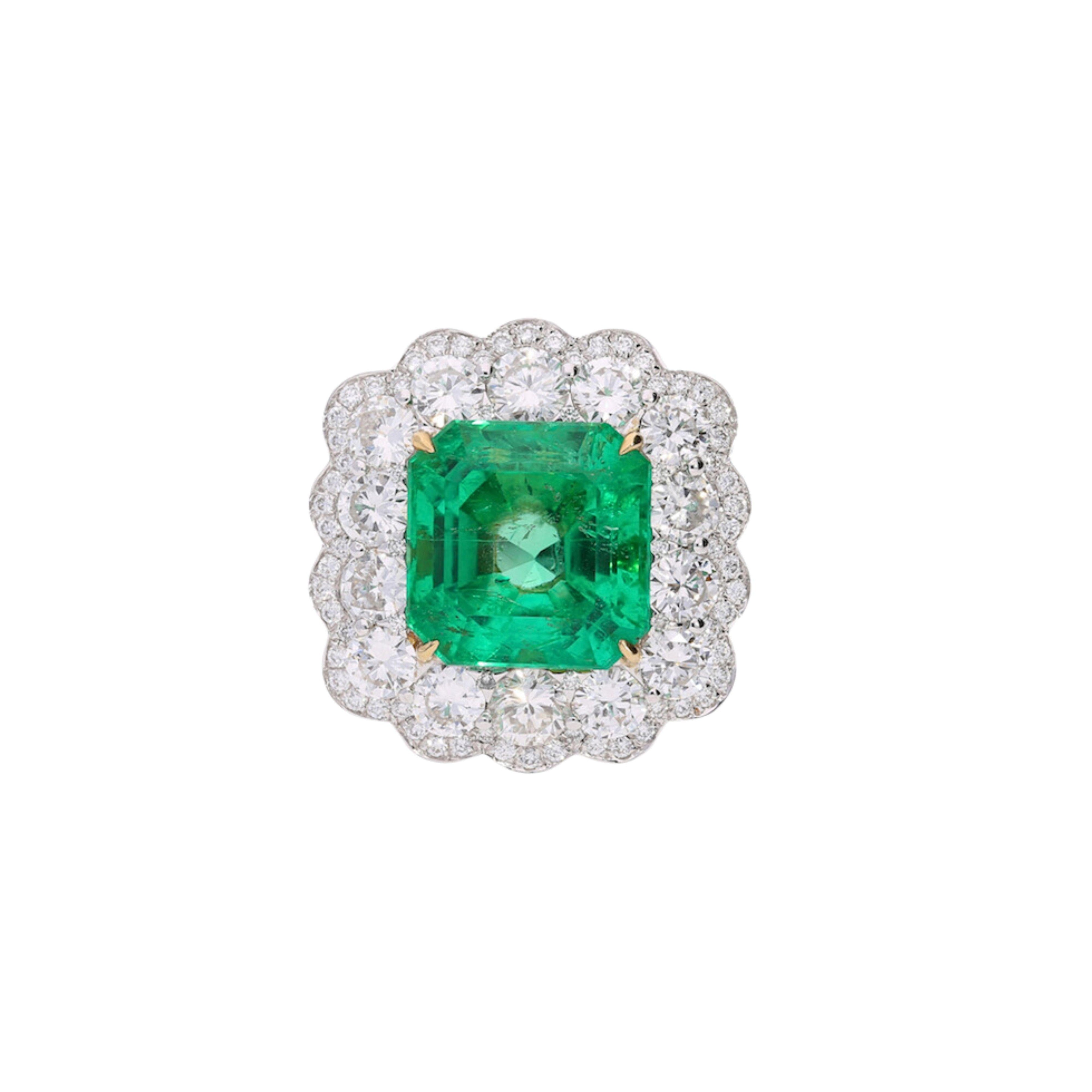 8.04 Carat Octagonal Emerald Cut Colombian Emerald Diamond Halo Ring