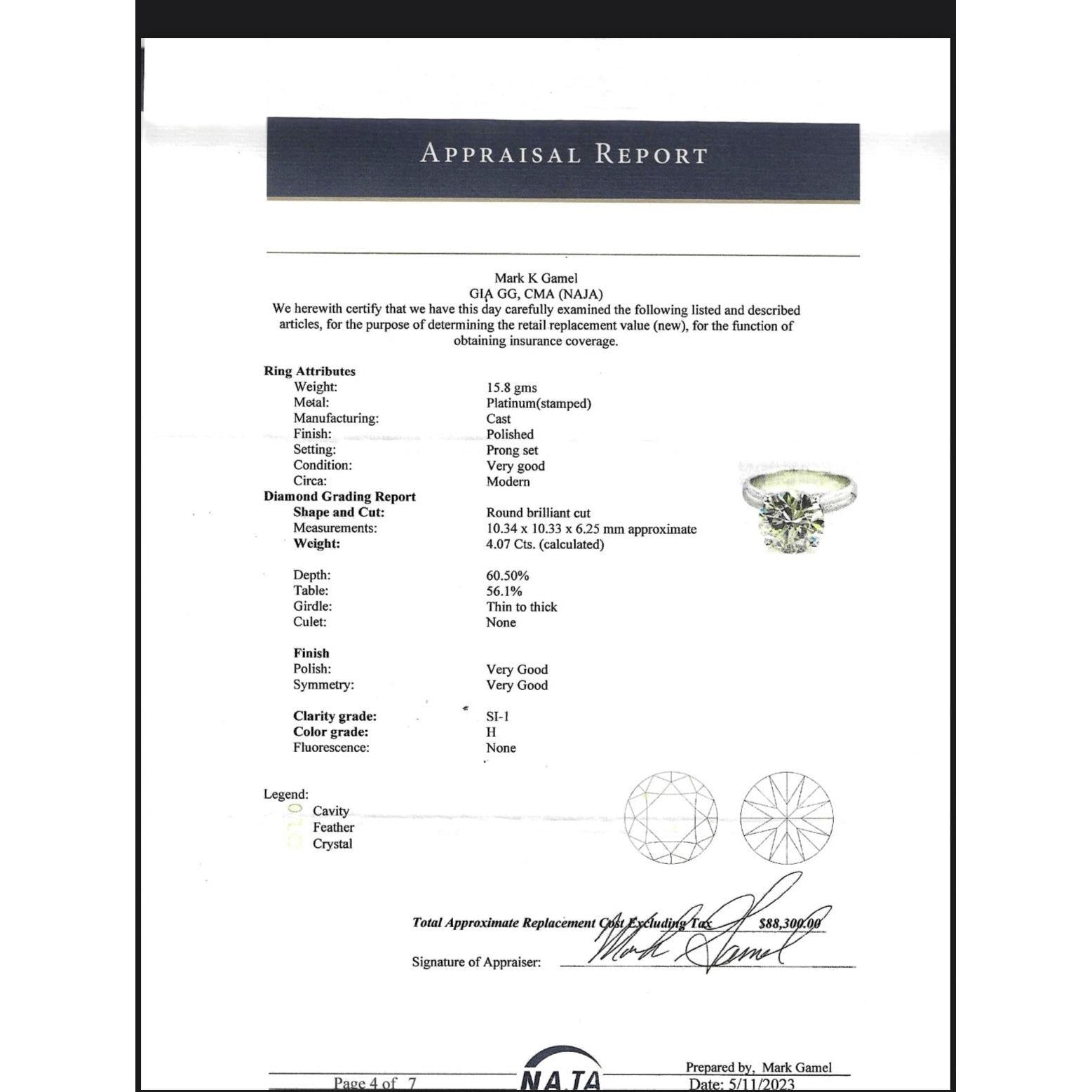 - Total carat weight: 4.07 carats