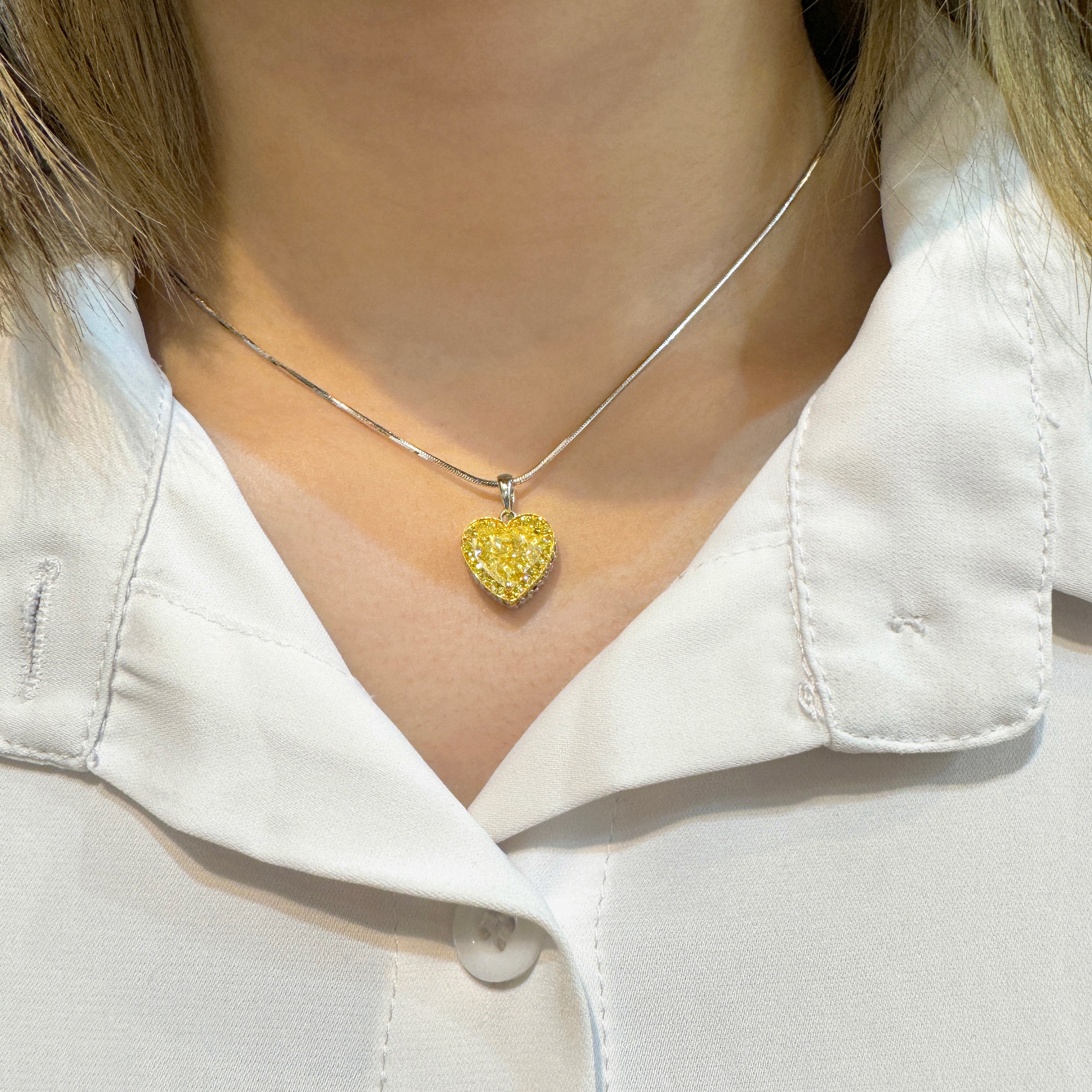 Natural Fancy Yellow Diamond Heart Platinum Necklace.