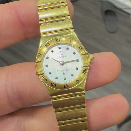 Pre-Owned Omega Constellation My Choice 18K Gold Mother of Pearl Dial Roman Numeral Bezel Ladies Quartz Watch Ref 1161