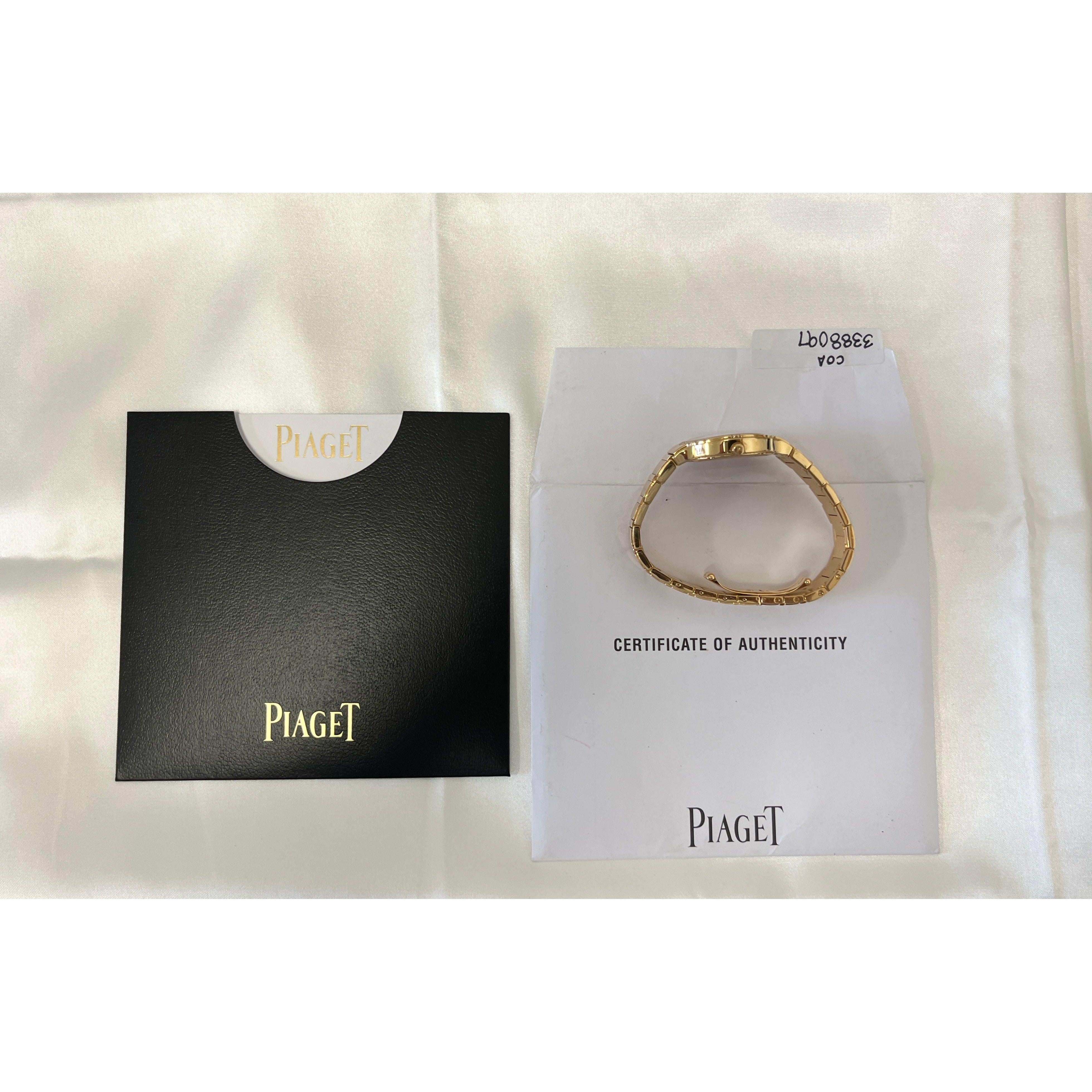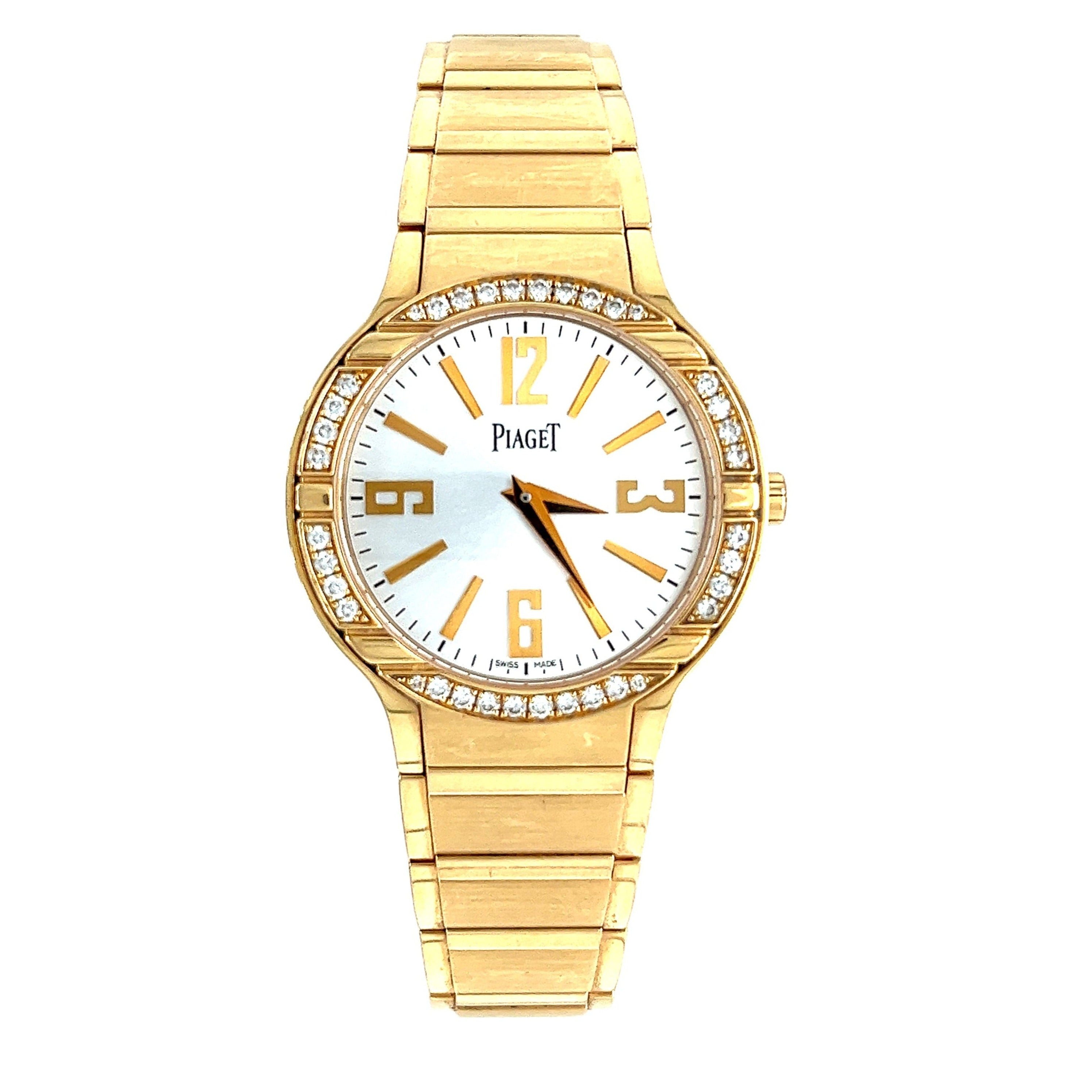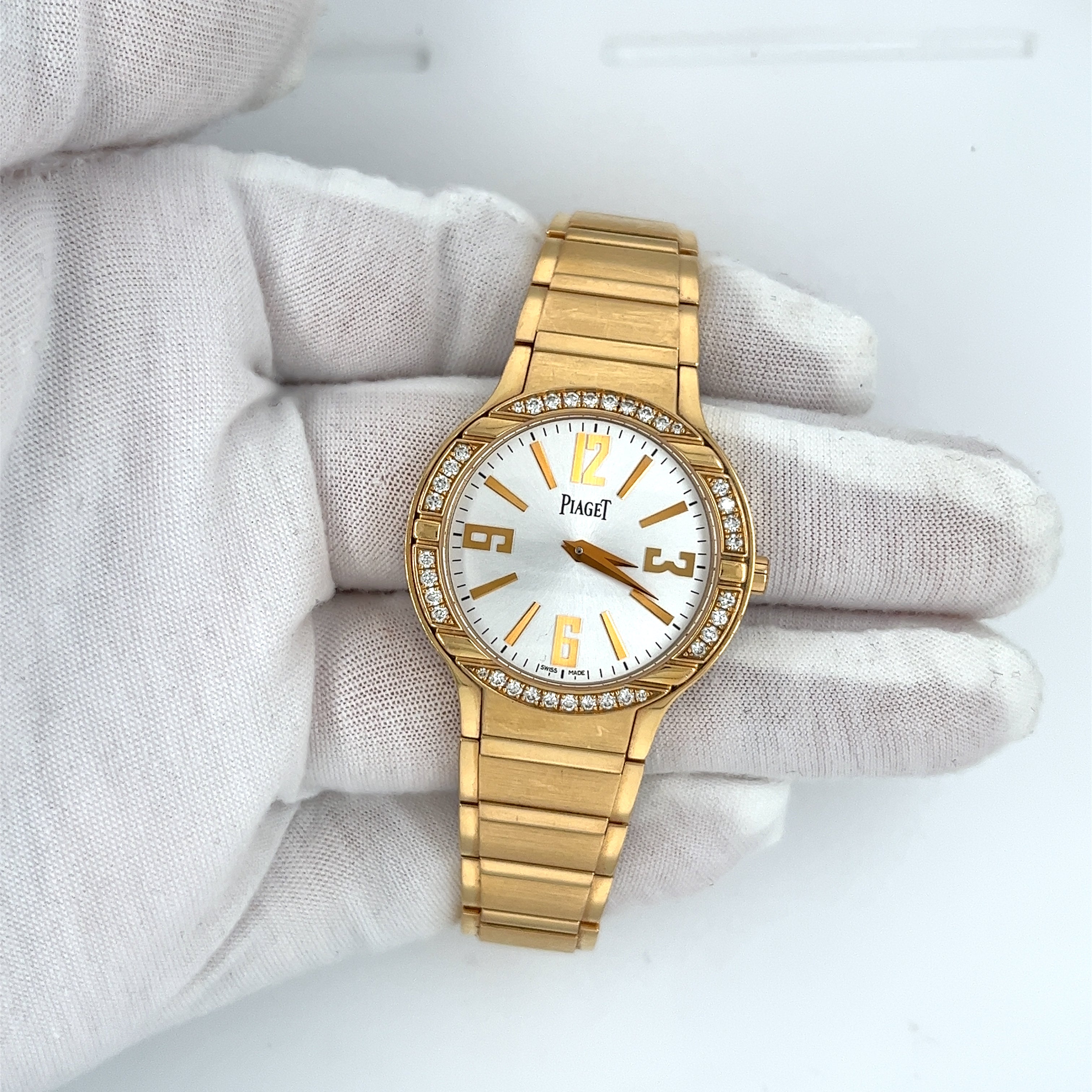 Piaget signed "Polo" ladies wrist watch in 18k yellow gold with diamonds. Complete with original Piaget certificate papers.