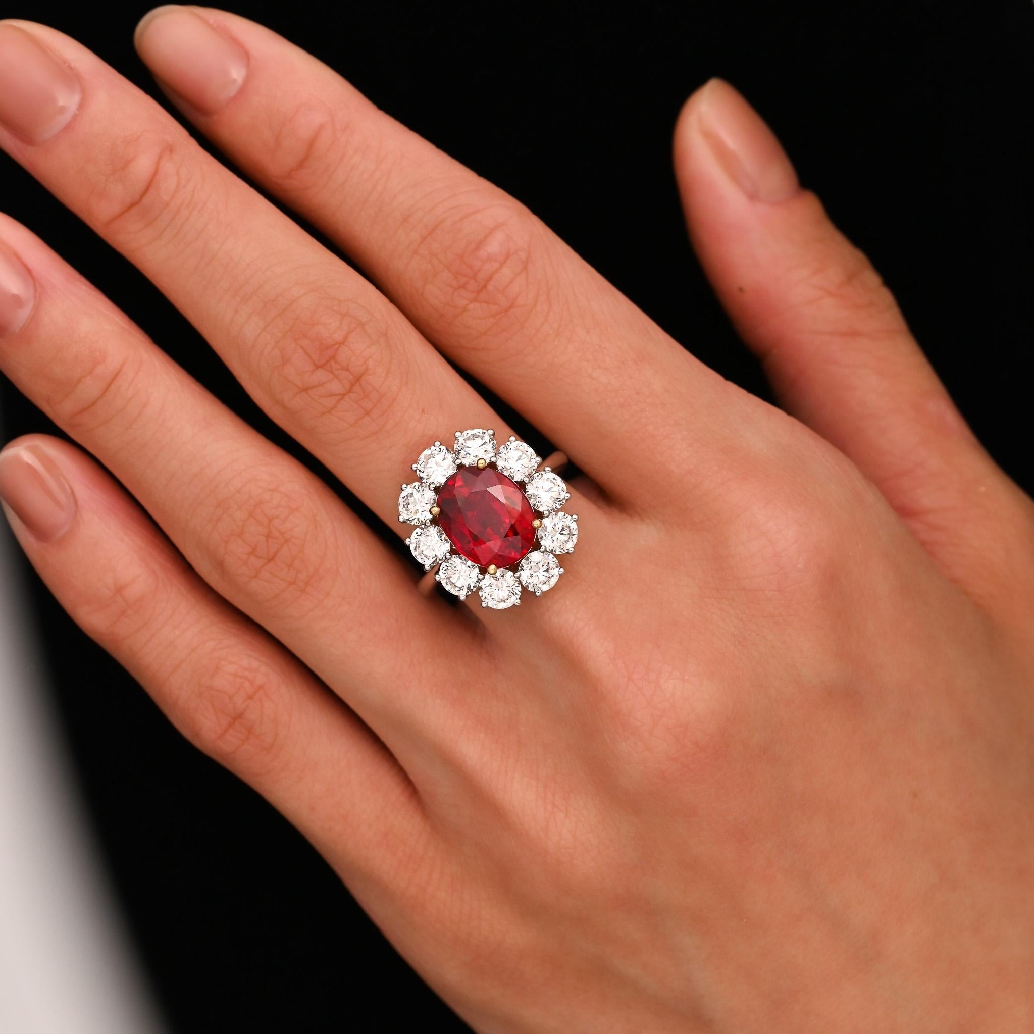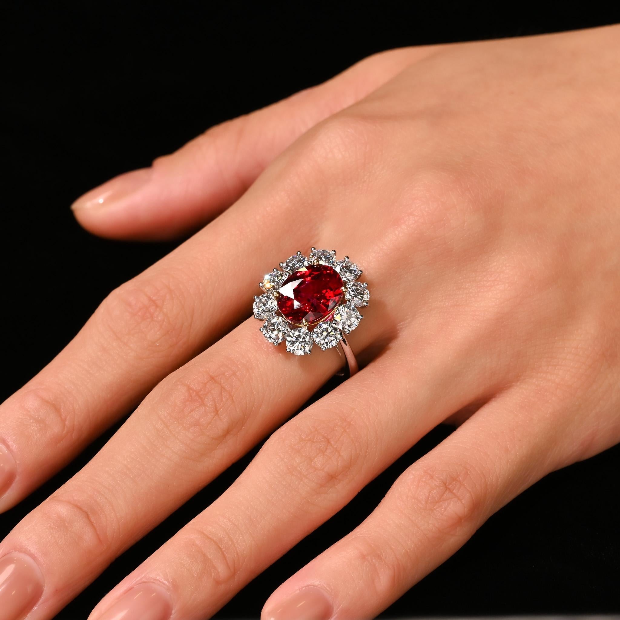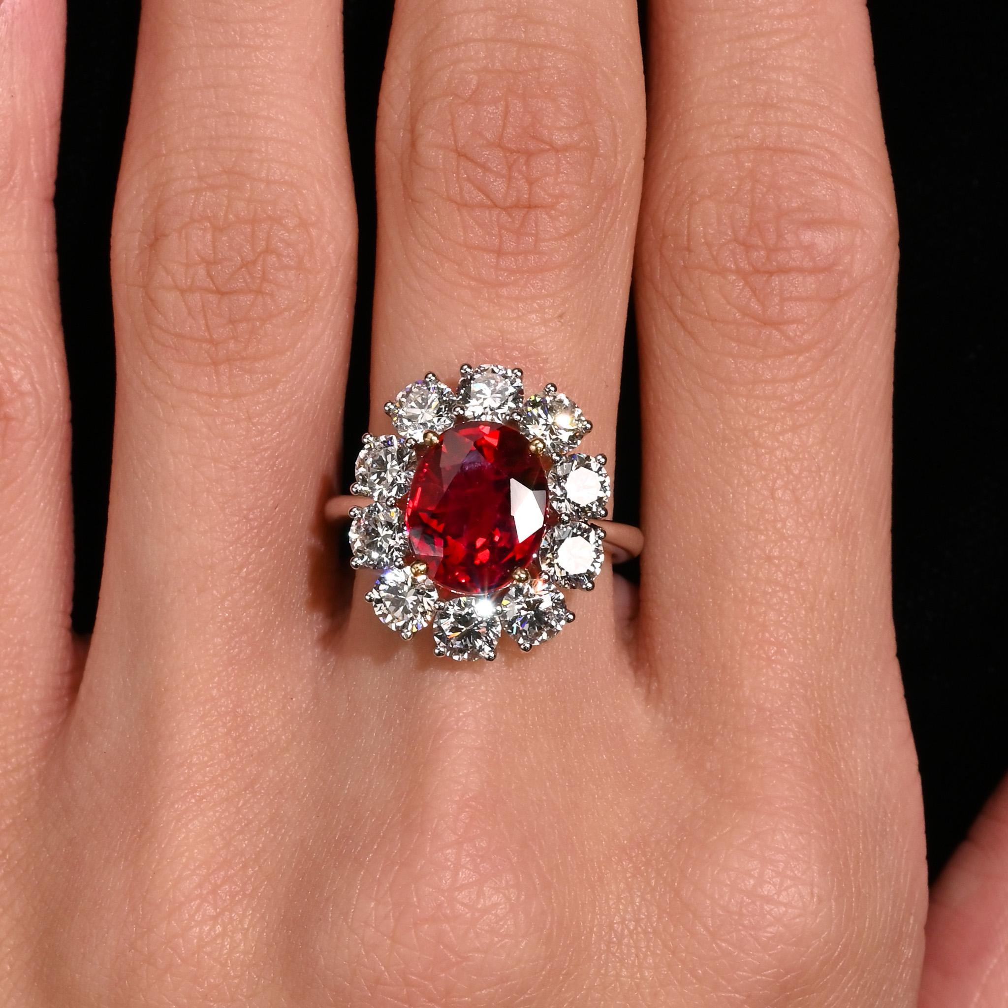Rare Vivid Red 5.81 Carat Oval Cut Siam Ruby & Diamond Halo Ring
