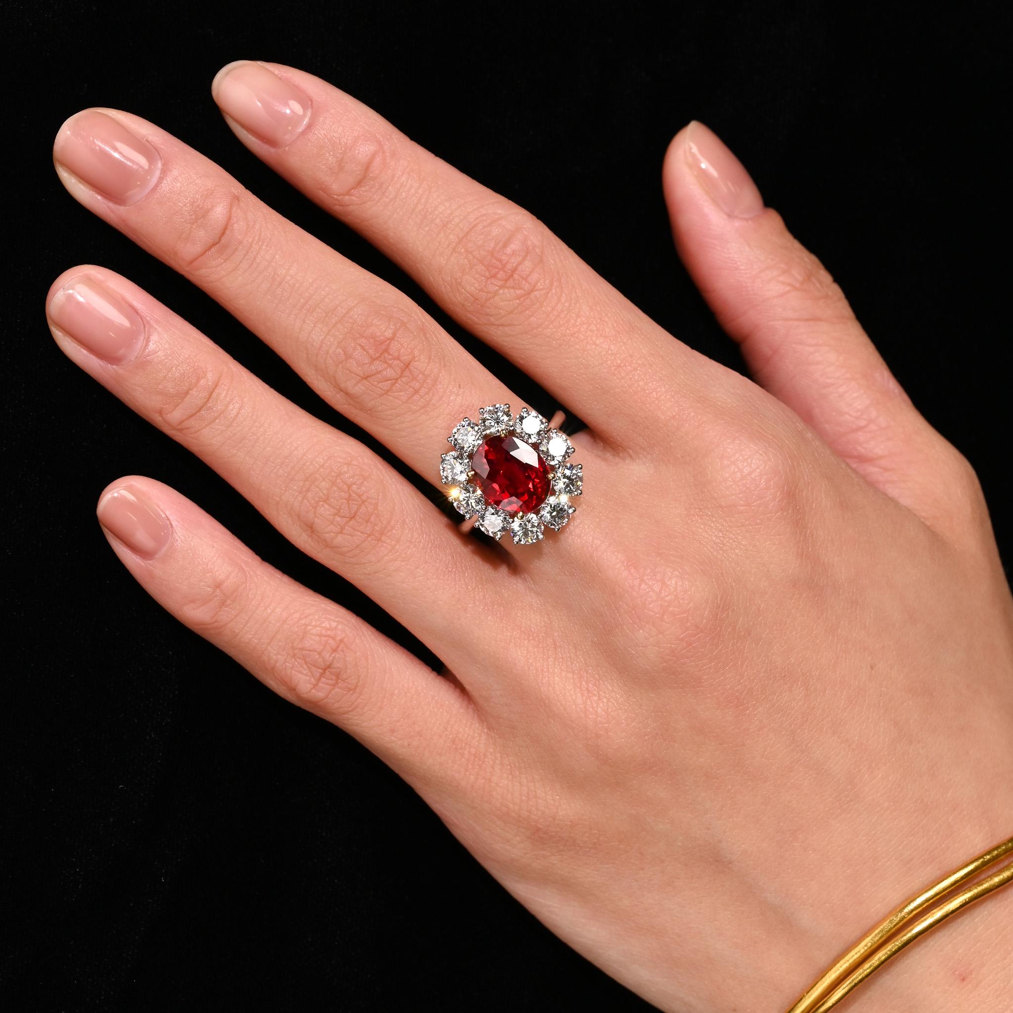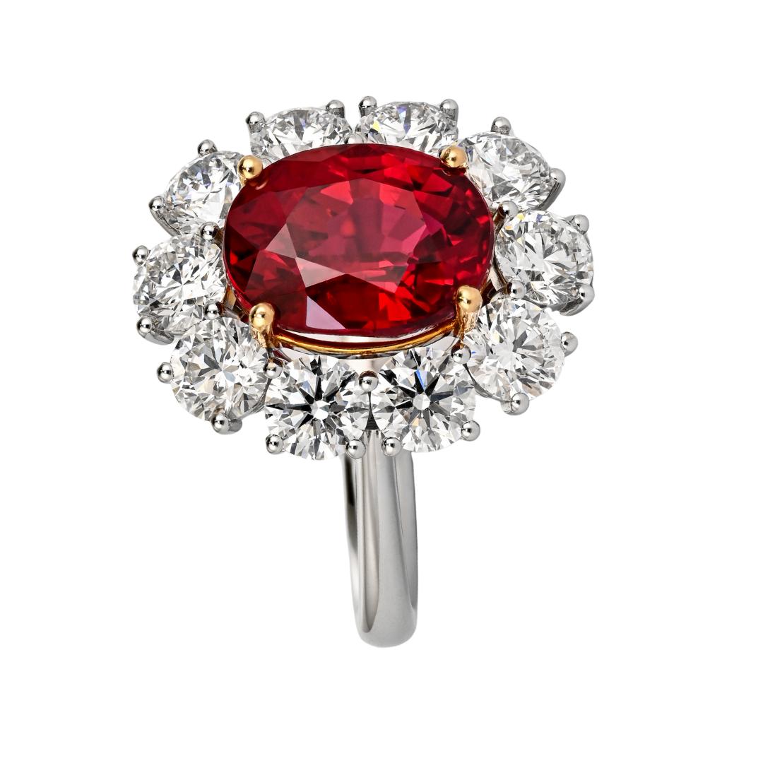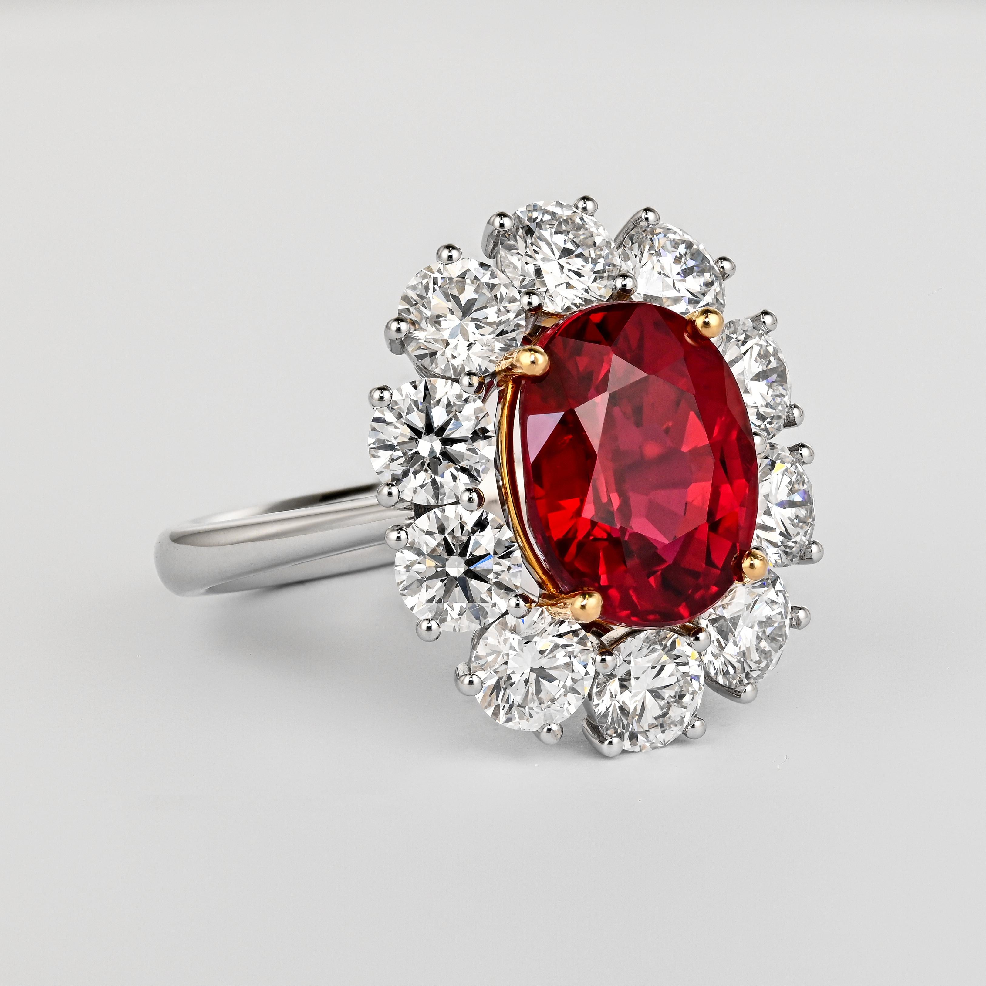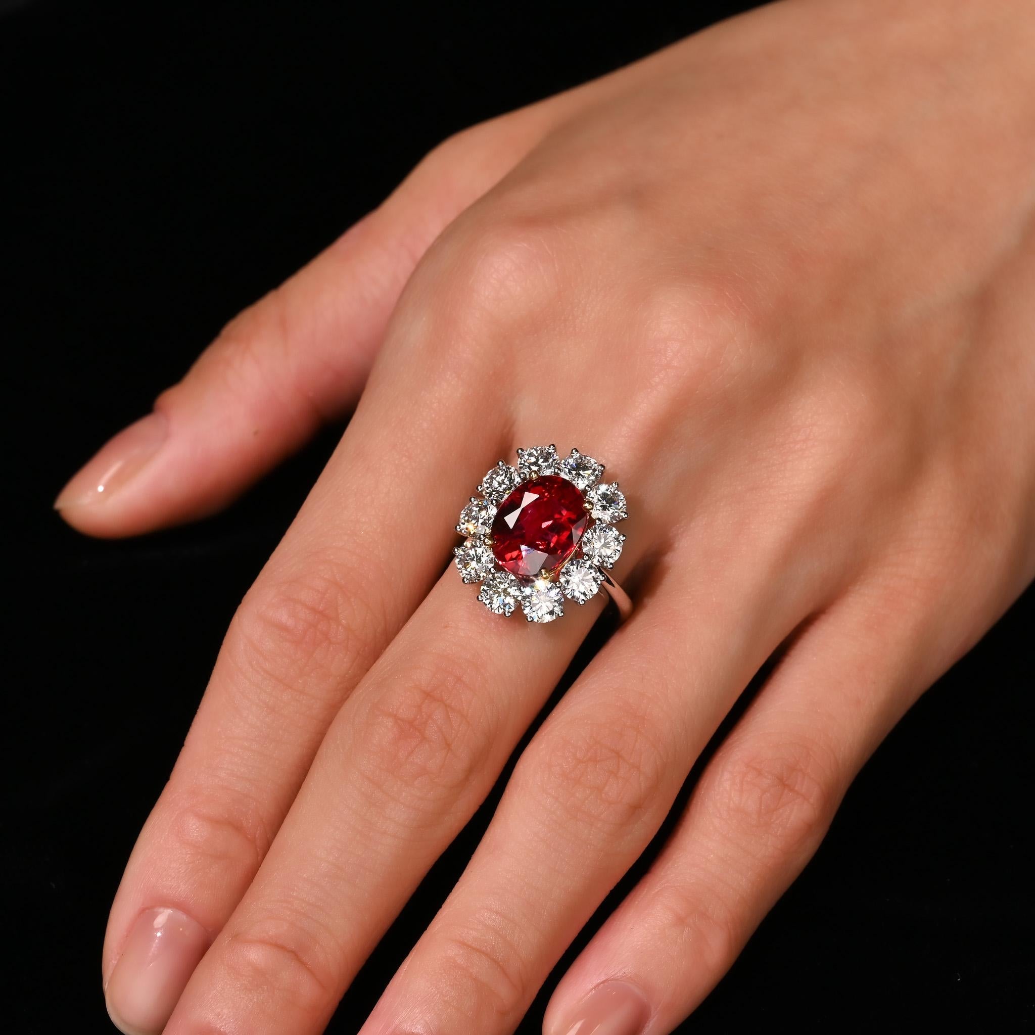 Rare Vivid Red 5.81 Carat Oval Cut Siam Ruby & Diamond Halo Ring