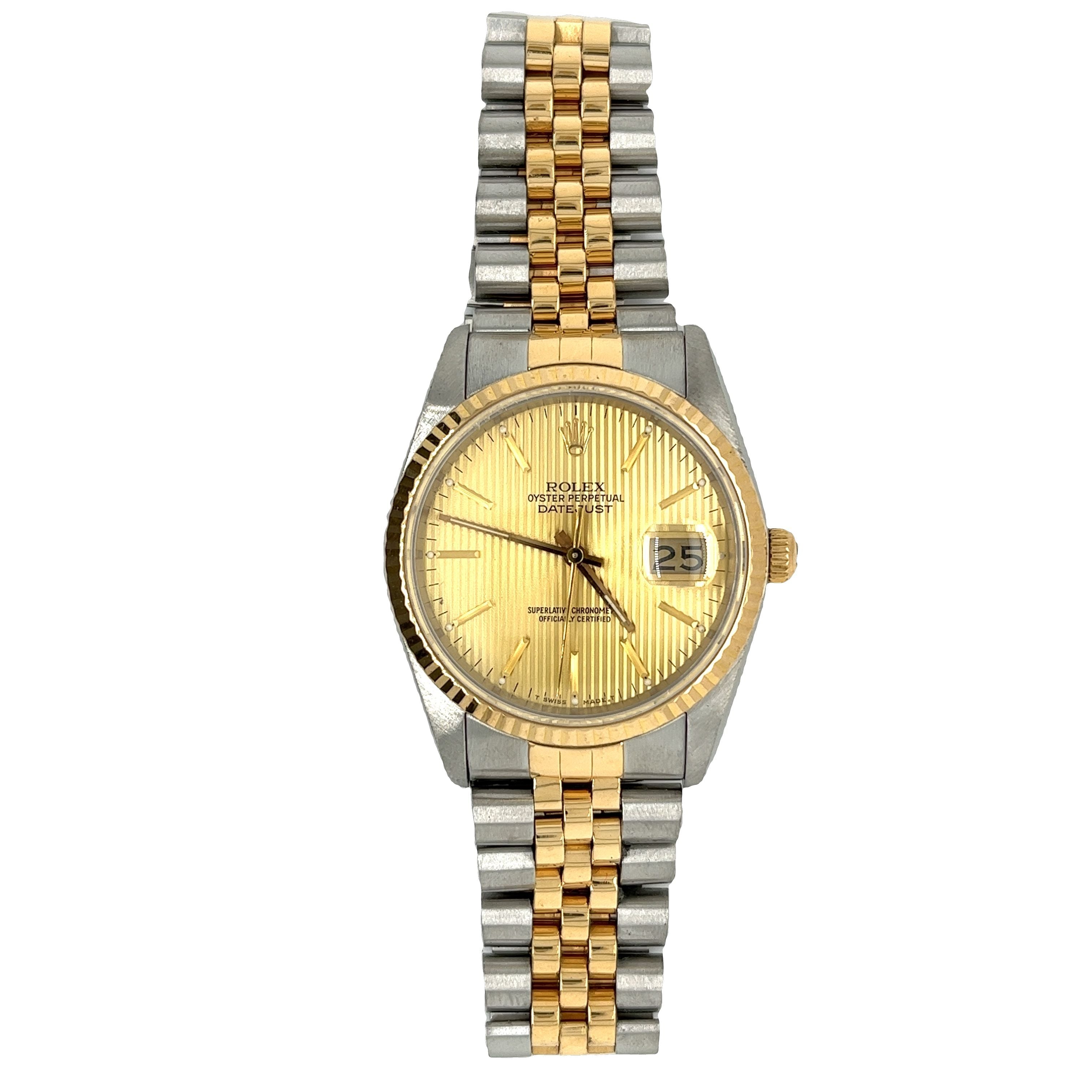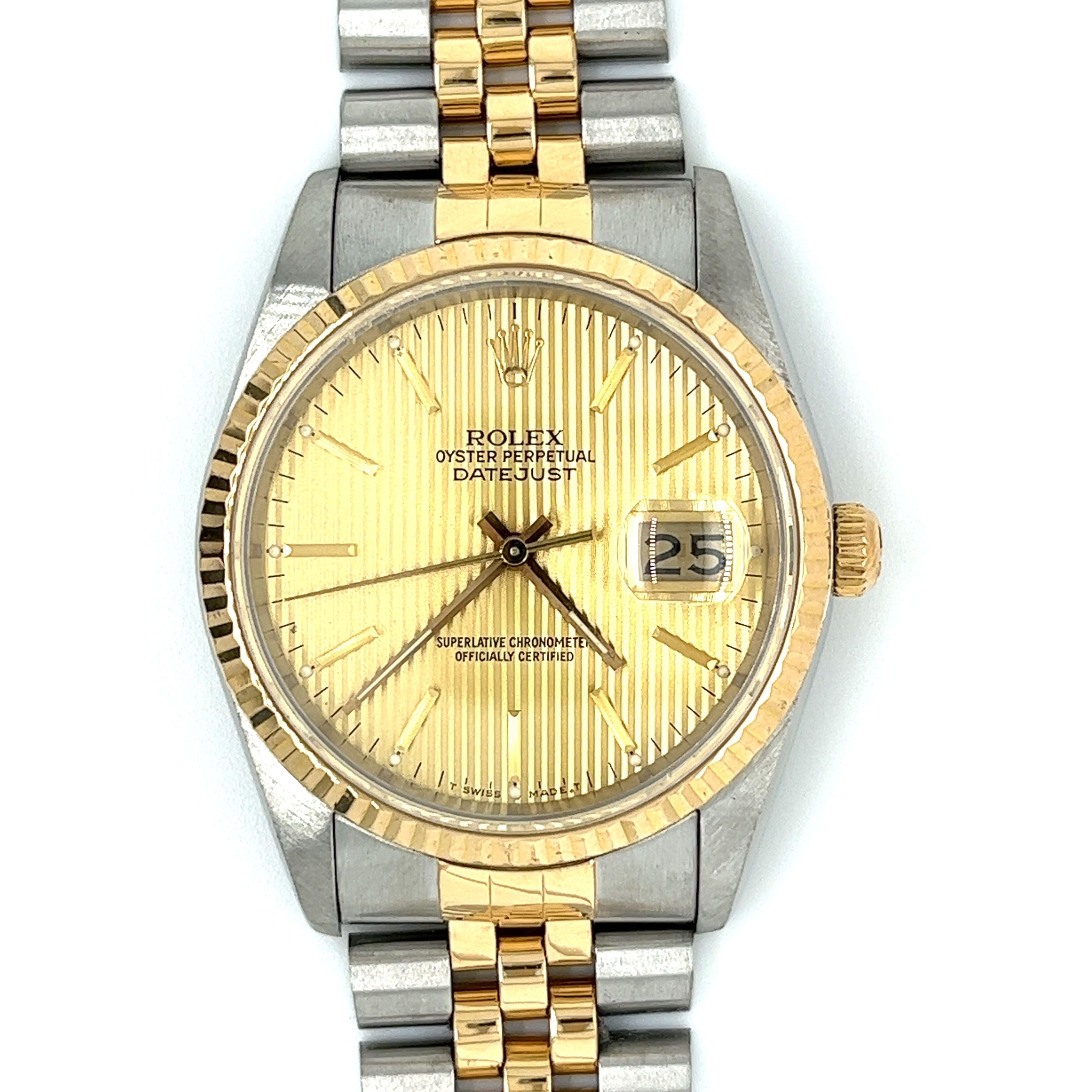 Rolex DateJust 36MM Champagne Tapestry Fluted Dial & Bezel in Two-Tone 18K And Stainless Steel With Jubilee Bracelet and Date and Rolex Box