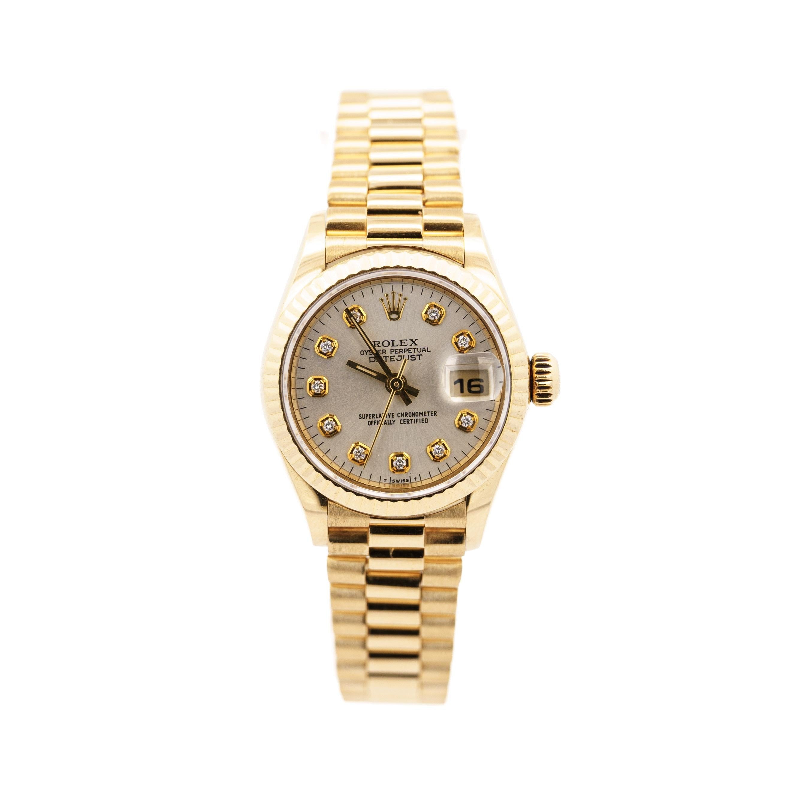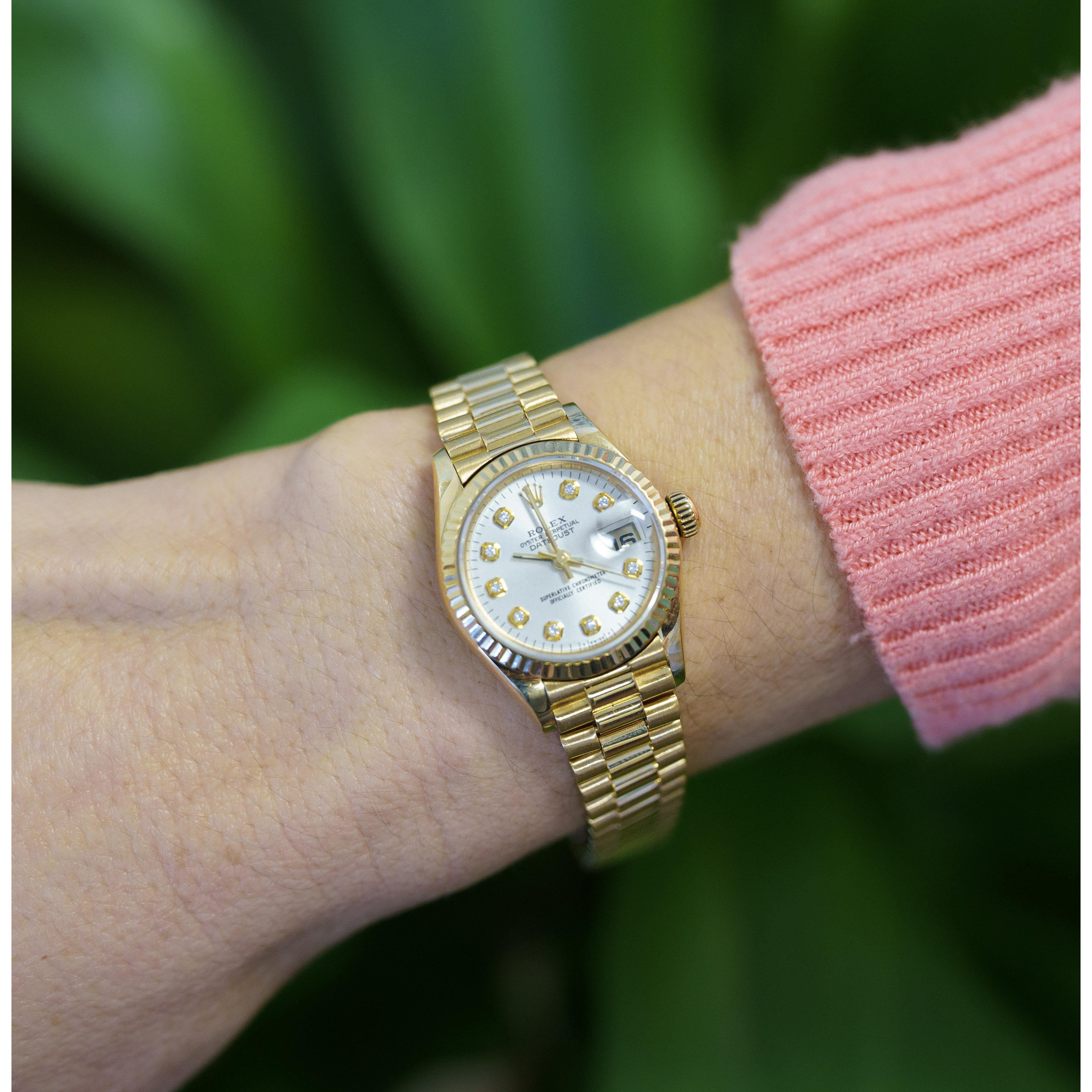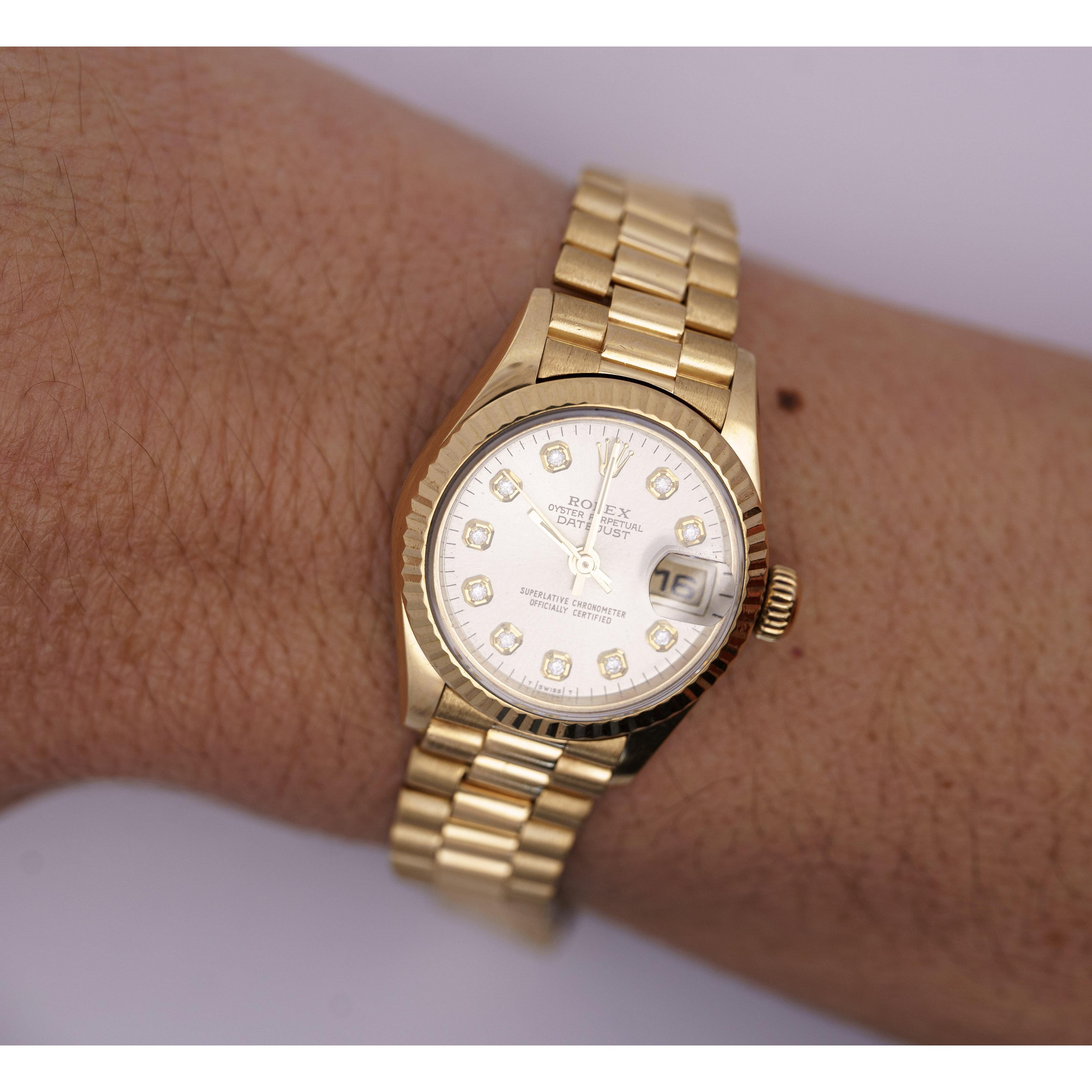 Vintage Rolex President Datejust 18k gold ladies wrist watch. Reference 79178. 26mm case diamond hour marker dial, fluted bezel, automatic... Read more