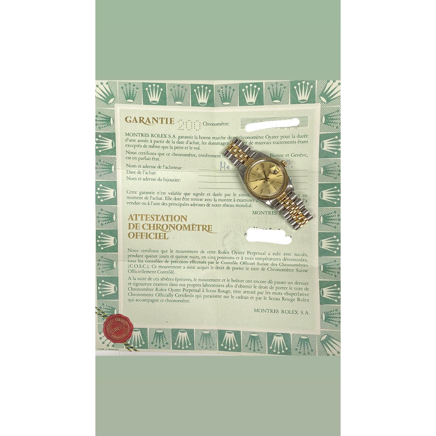Option to purchase with original Rolex box. Certificate of appraisal and Rolex certificatory papers included with purchase.