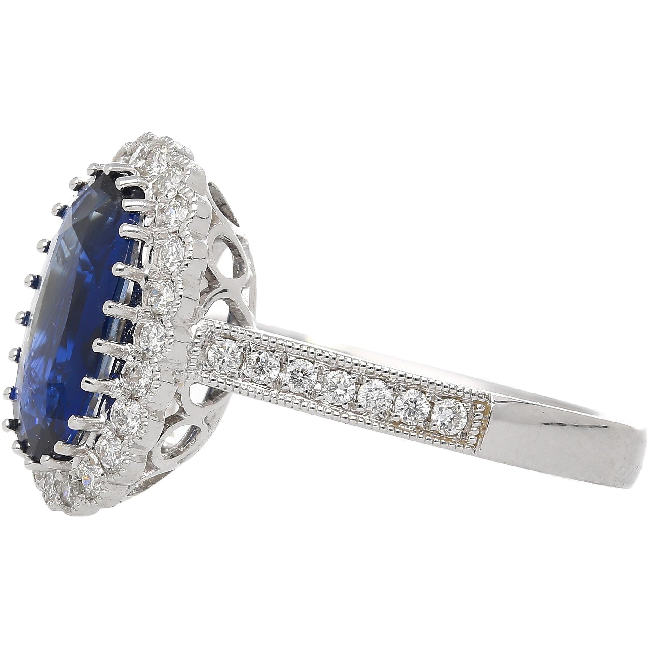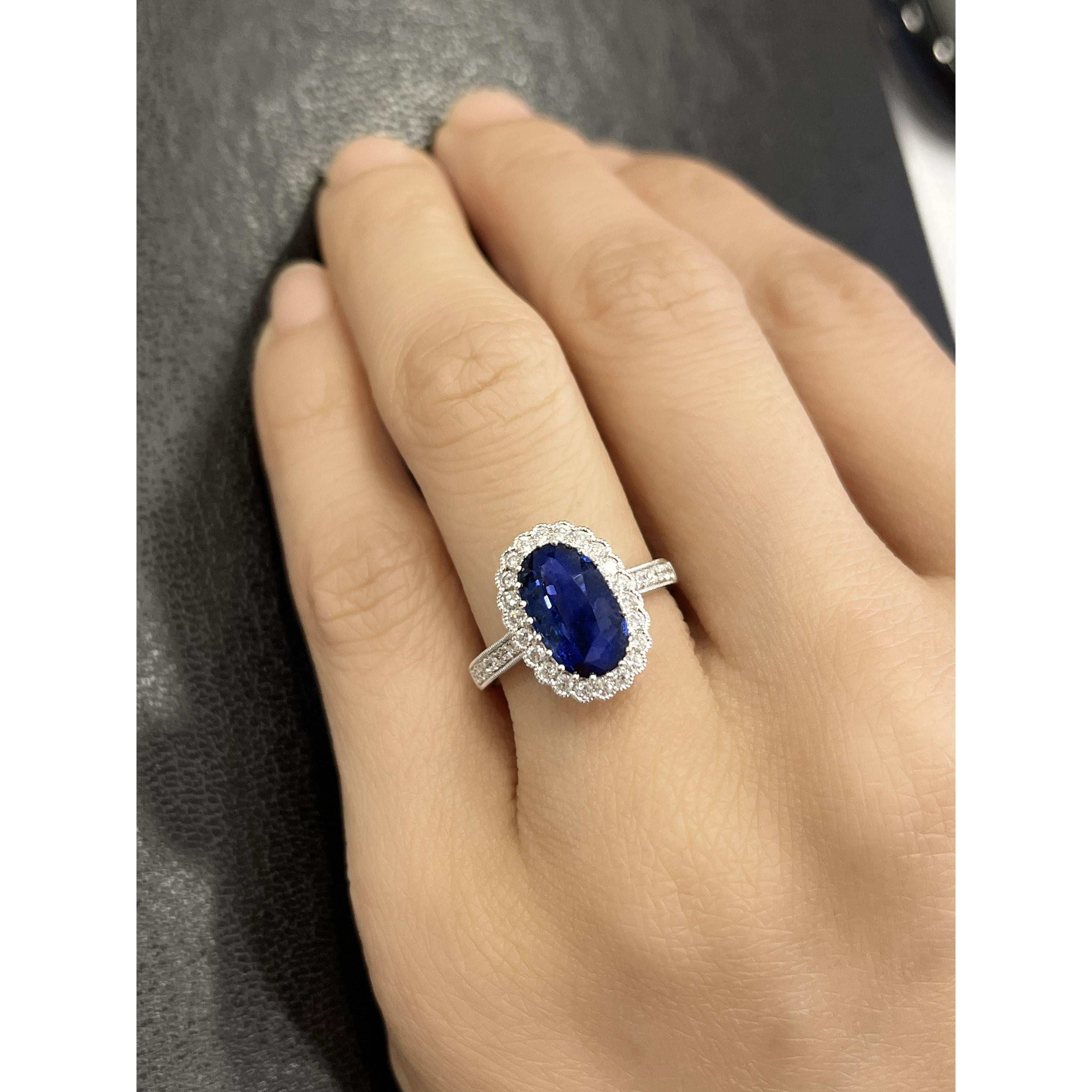 Vintage 2.38 Carat No Heat Oval Blue Sapphire & Milgrain Finish Diamond Ring
