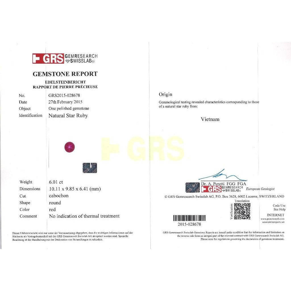 - Accompanied by GRS report no. GRS2015-028678 stating the ruby is natural, Vietnam origin, red color, no heat treatment