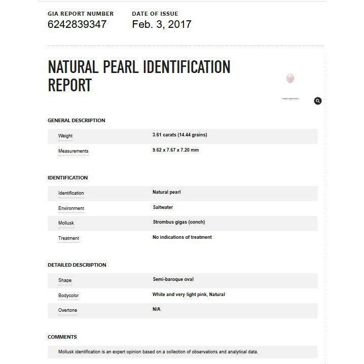 Vintage GIA certified natural saltwater conch pearl, emerald, and diamond drop pendant necklace in 18k yellow gold. Set on an... Read more